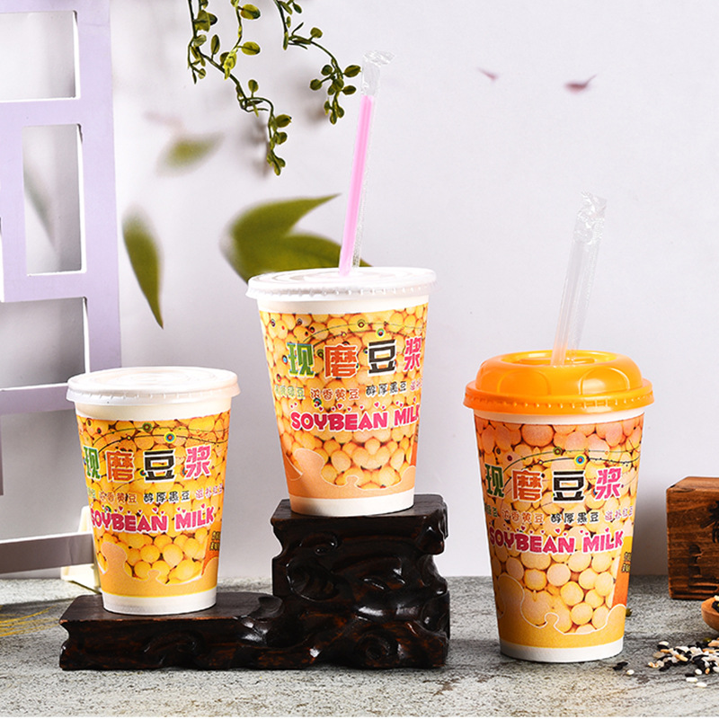 一次性奶茶杯现磨豆浆杯带杯盖吸管12A14A16A500ml饮料杯可定批发