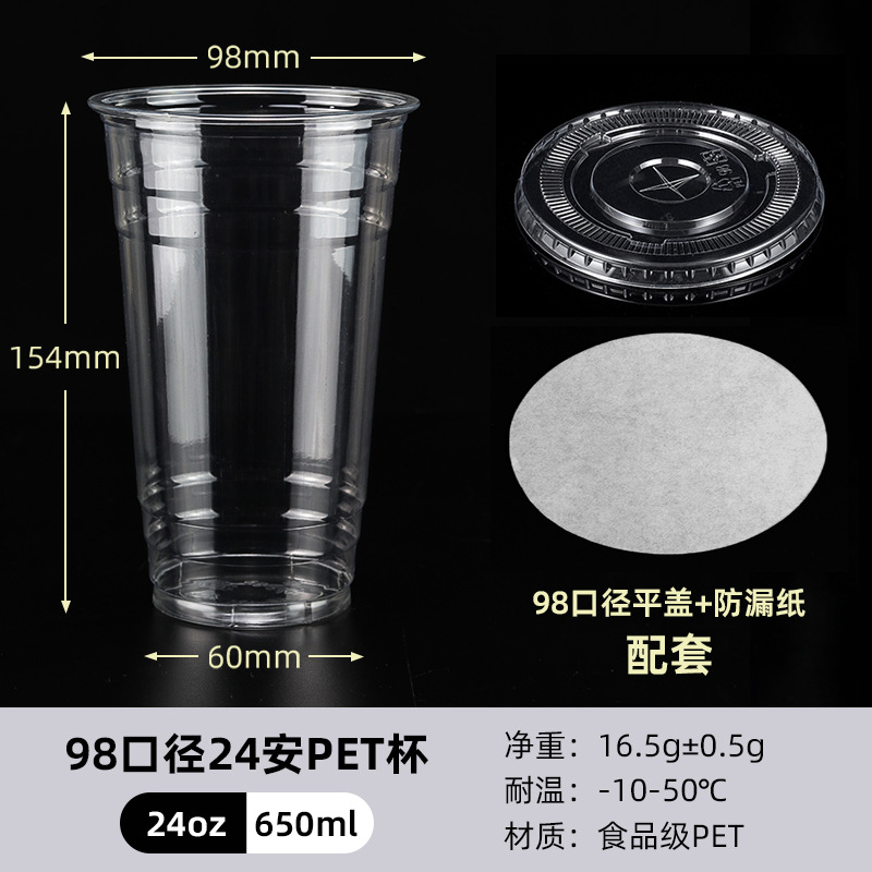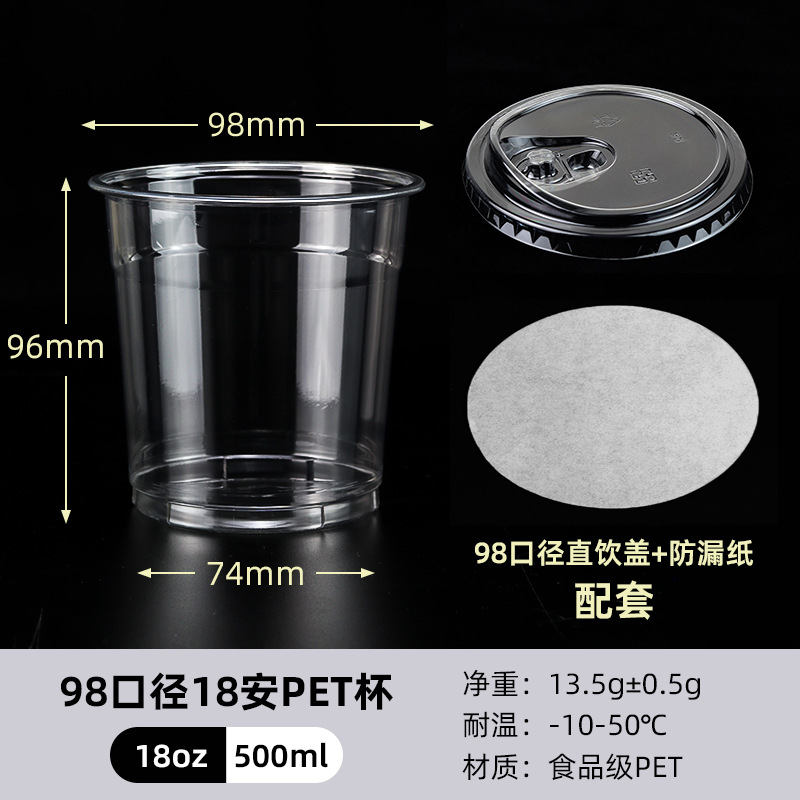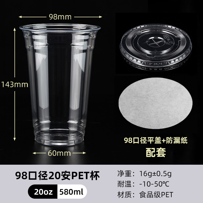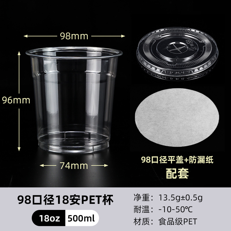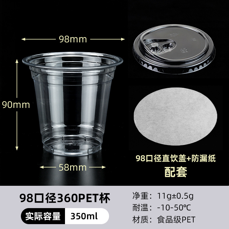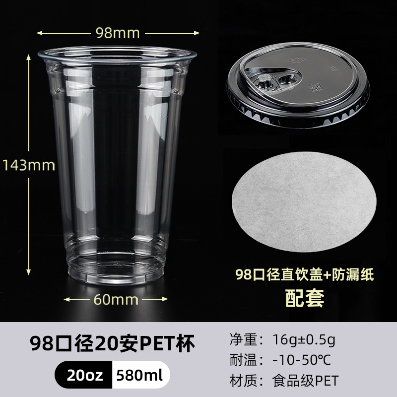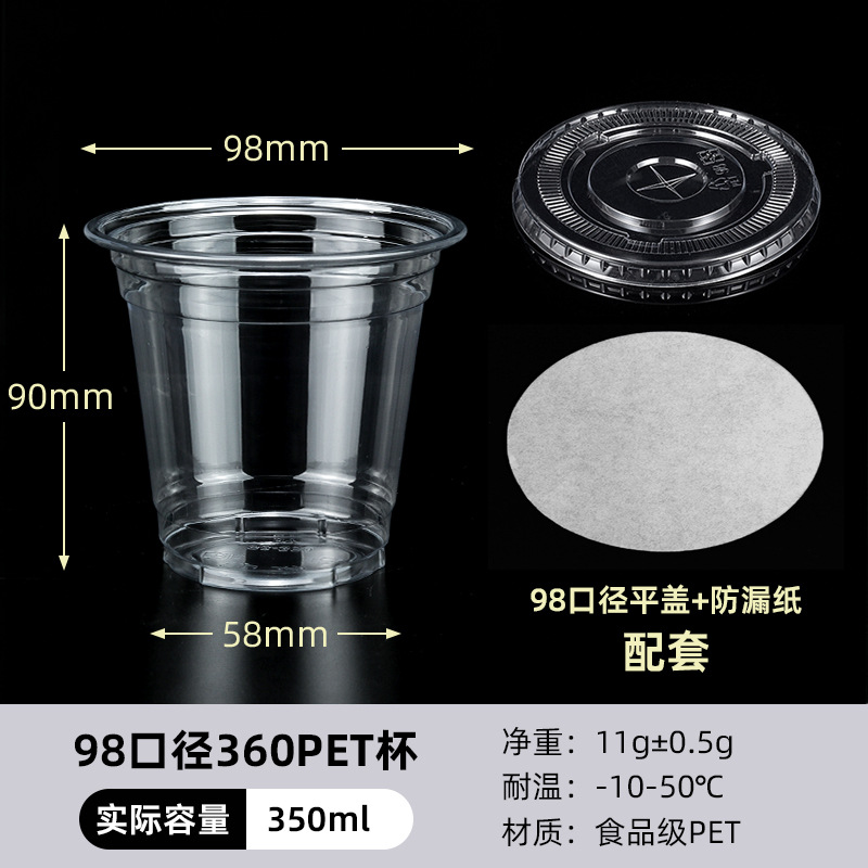 98口径PET奶茶杯冰美式咖啡柠檬茶摆摊冰粉塑料杯带盖子一次性
