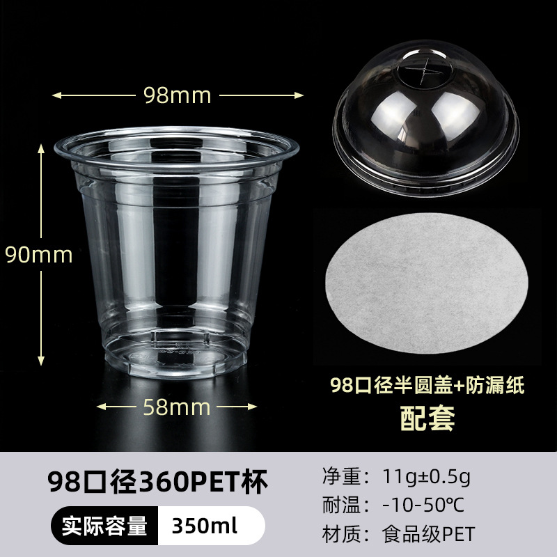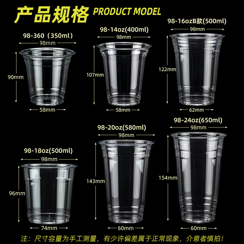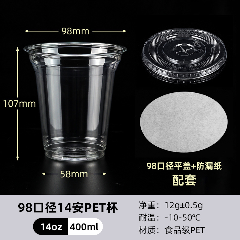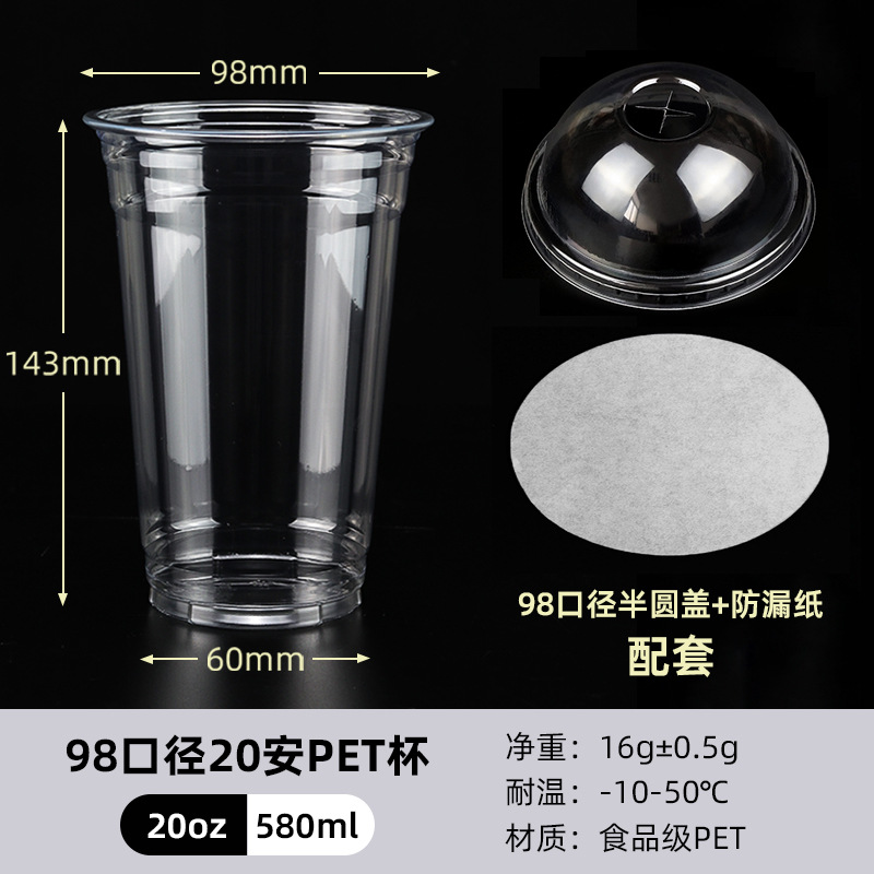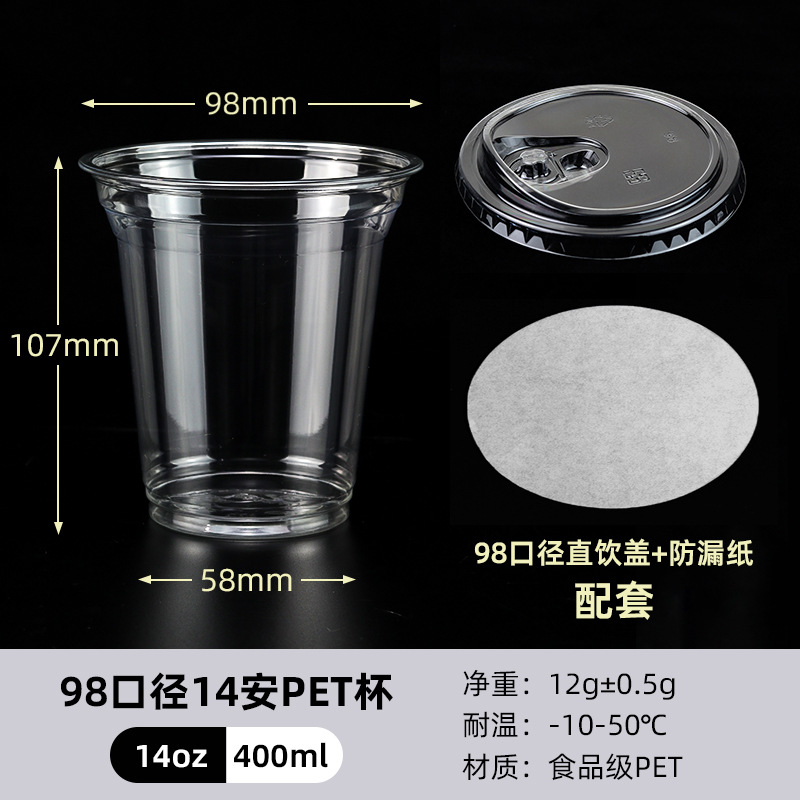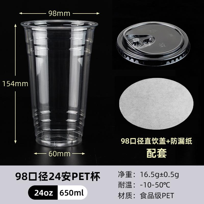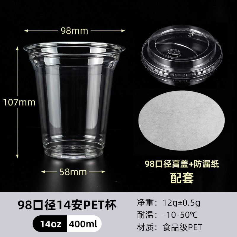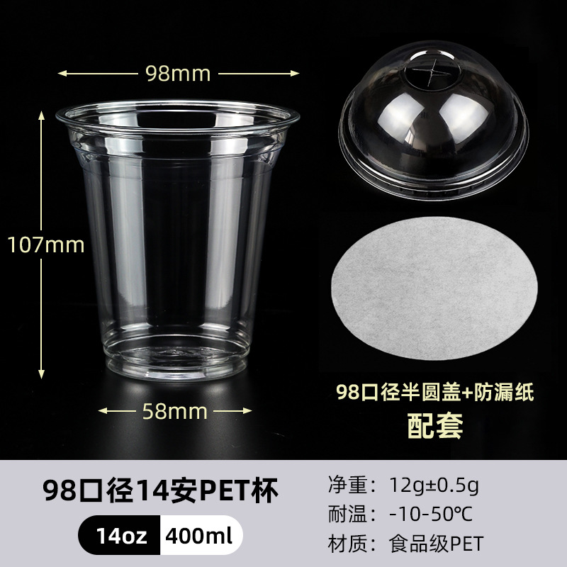 98口径PET奶茶杯冰美式咖啡柠檬茶摆摊冰粉塑料杯带盖子一次性