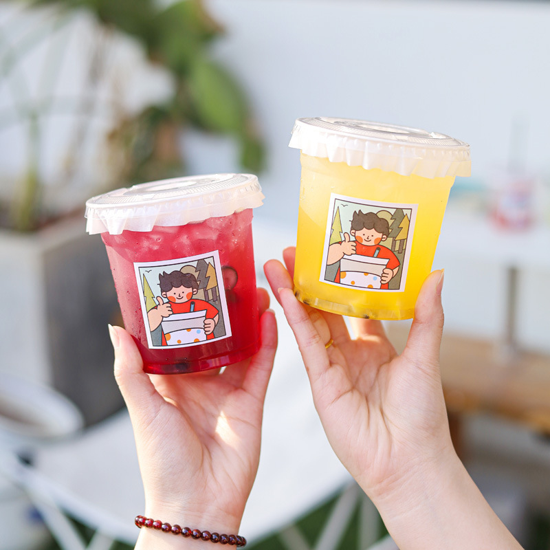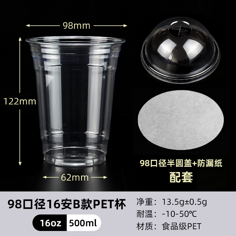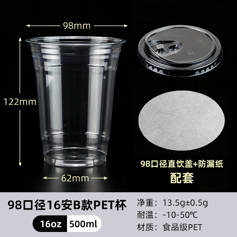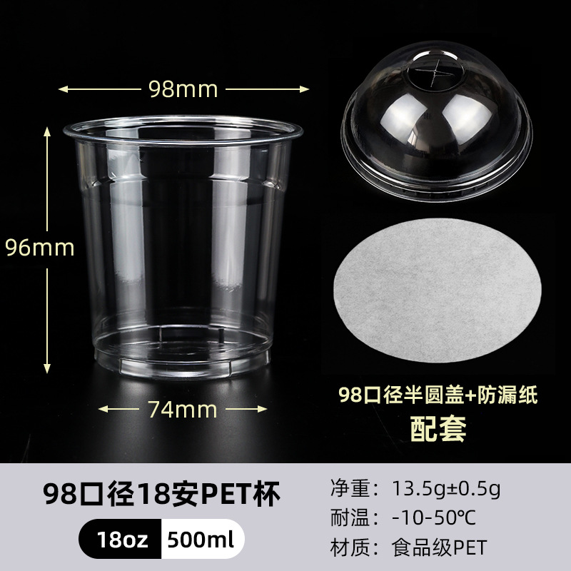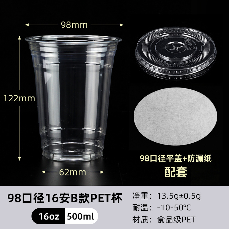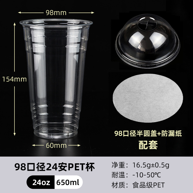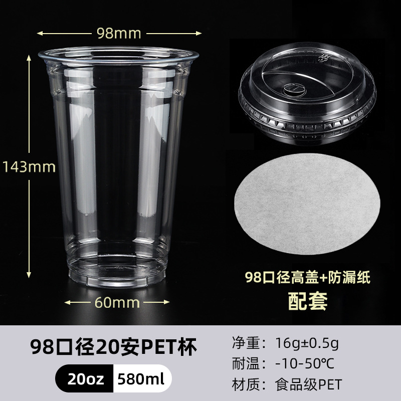 98口径PET奶茶杯冰美式咖啡柠檬茶摆摊冰粉塑料杯带盖子一次性