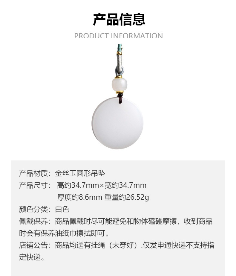 | white jade round card (free lanyard in the picture)(白玉圆牌(赠图中挂绳)) | USD $0.0 | 68486 piece available |