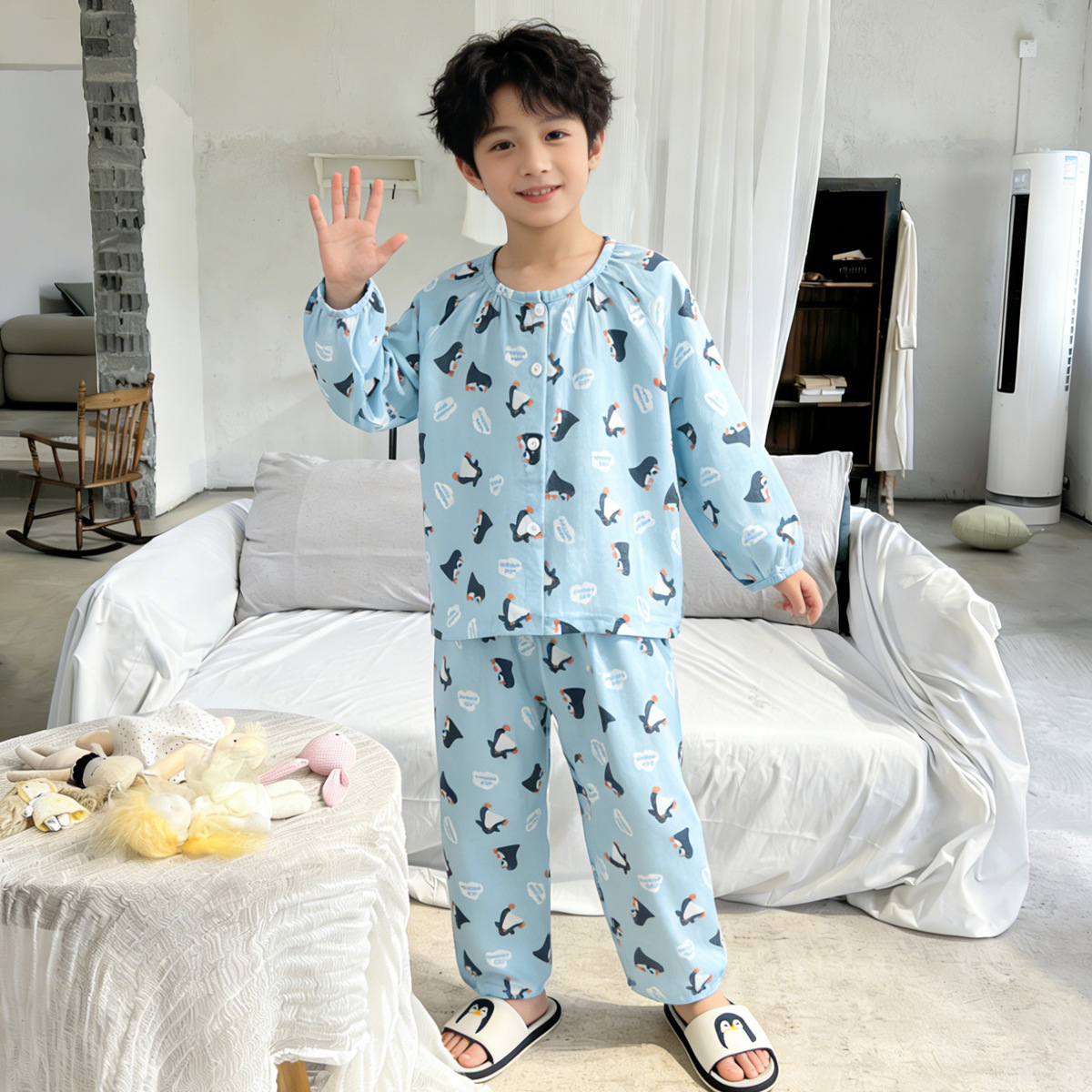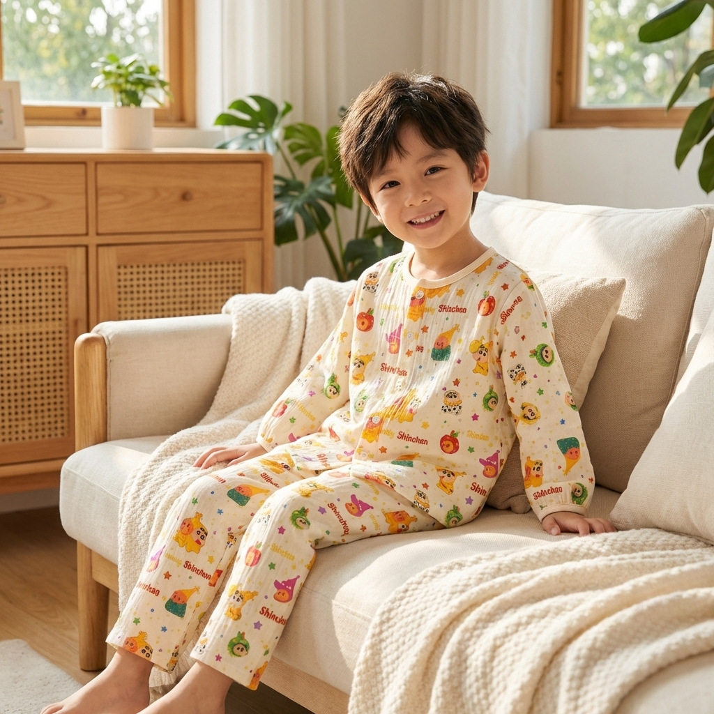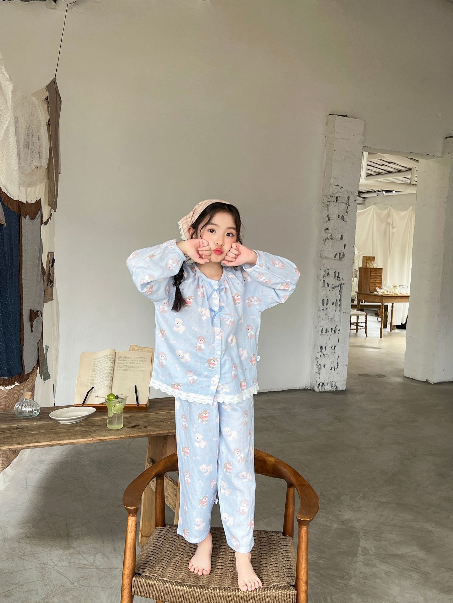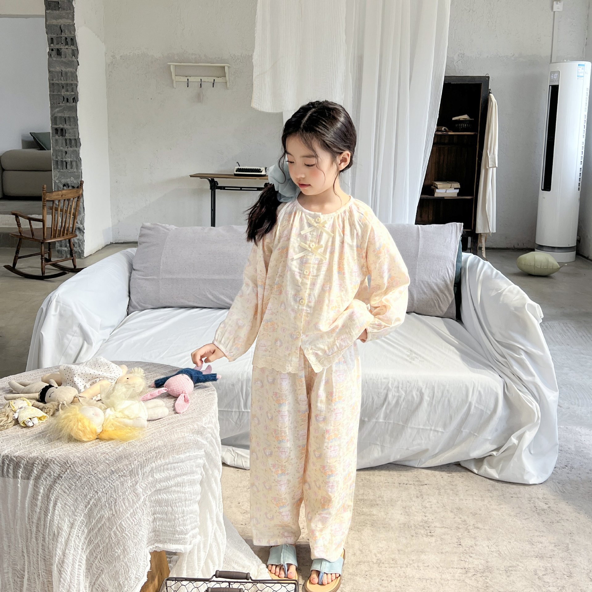 儿童睡衣春夏女童花边甜美开衫纯棉家居服男童卡通家居服套装亲子