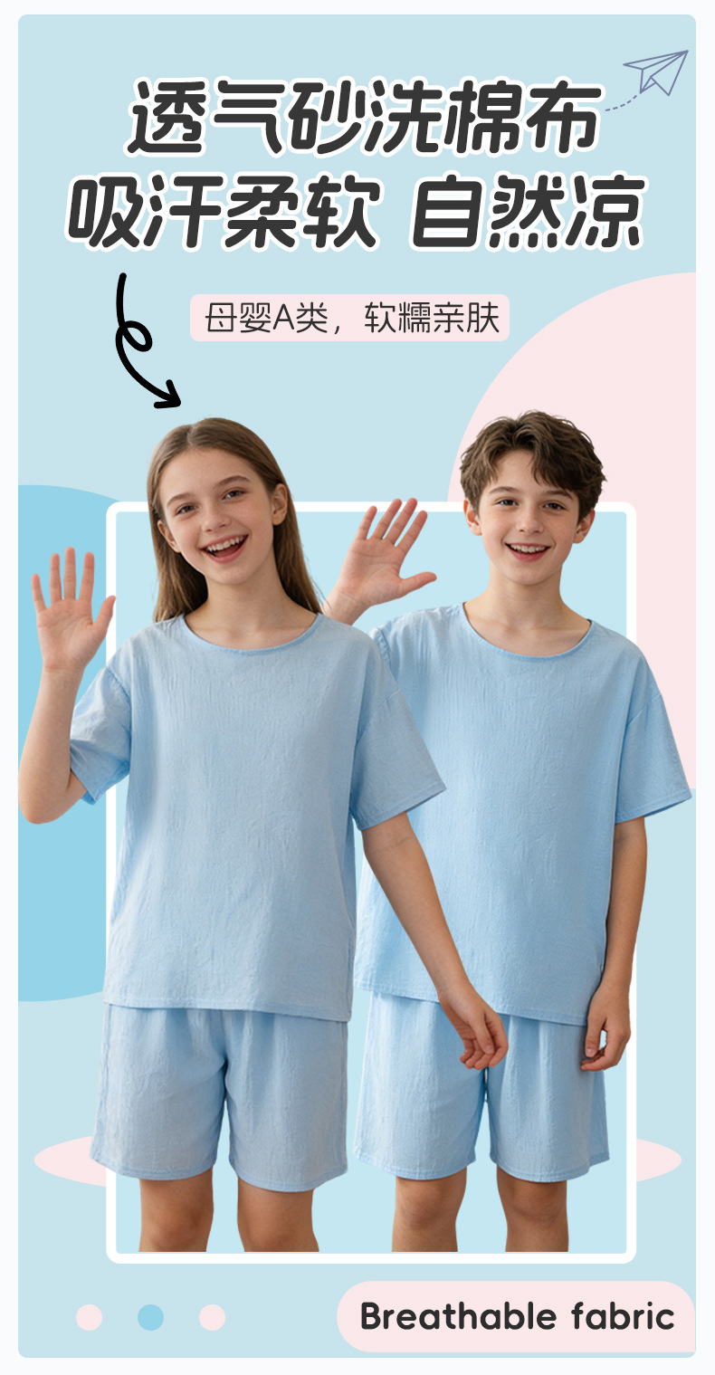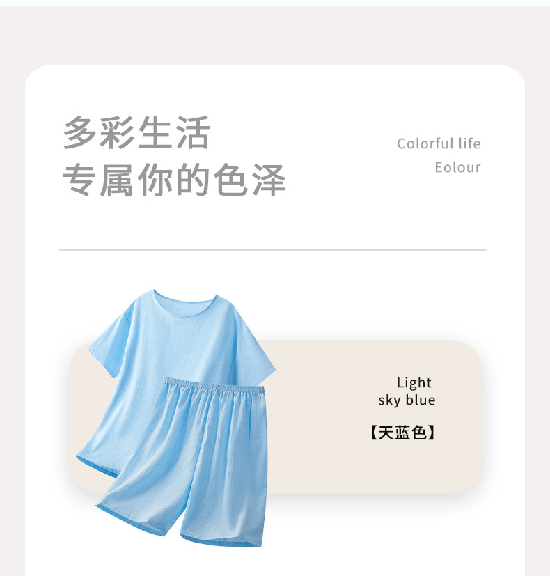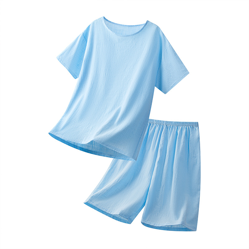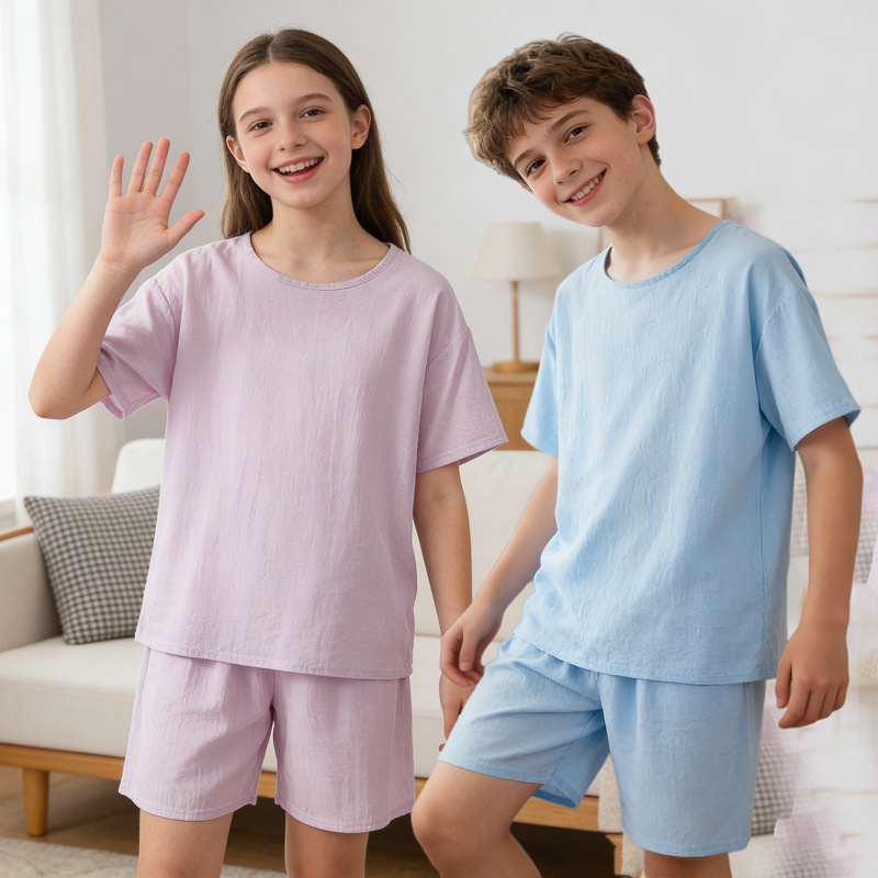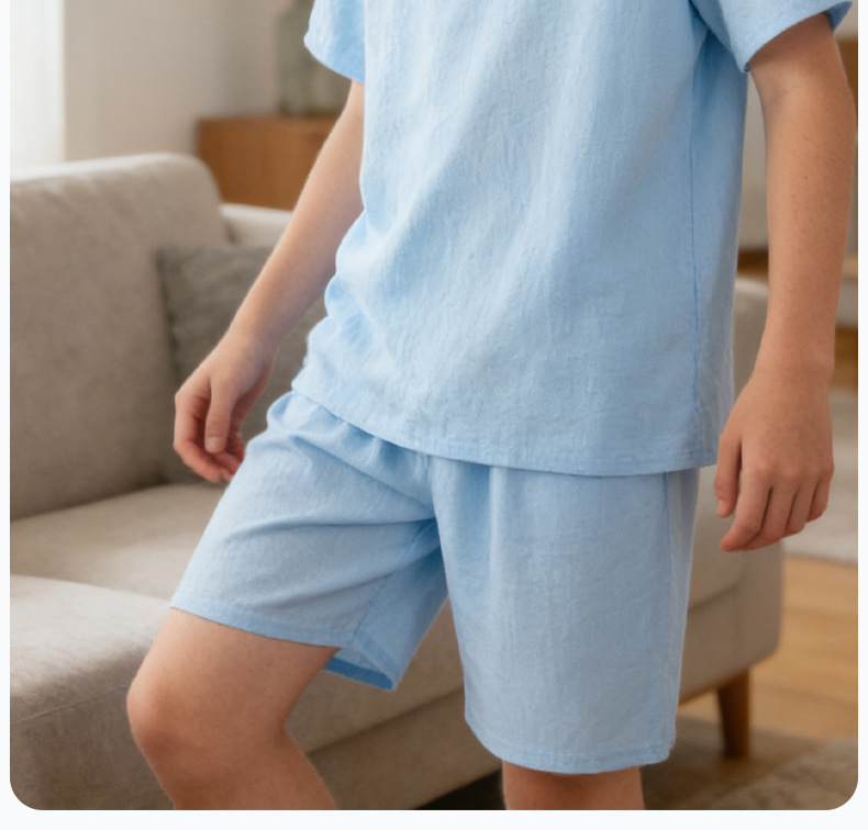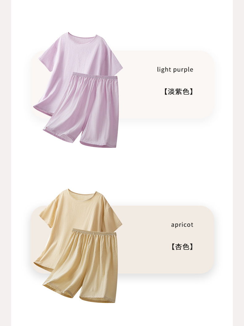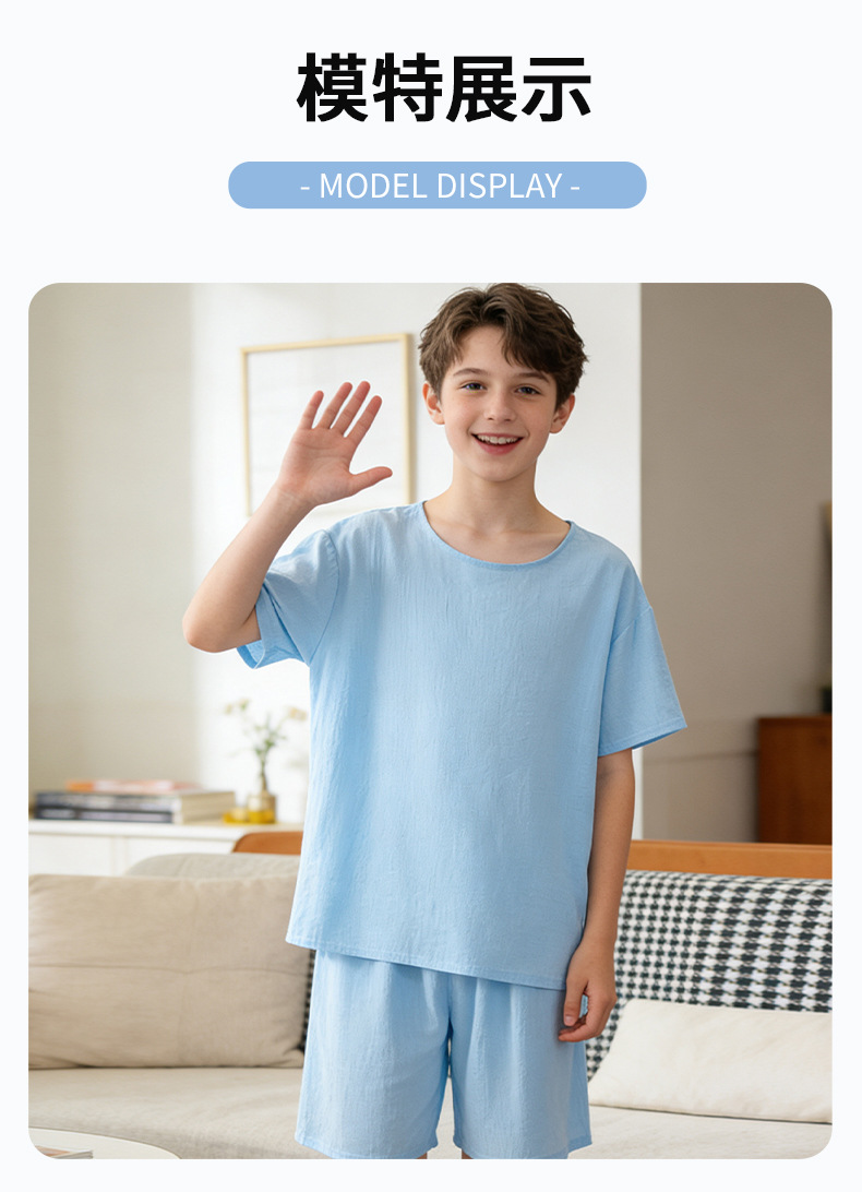 儿童家居服纯棉夏季男童短袖短裤中大童学生纯色居家套装女童睡衣