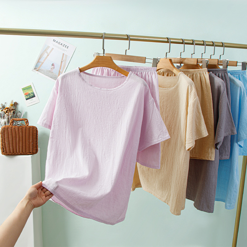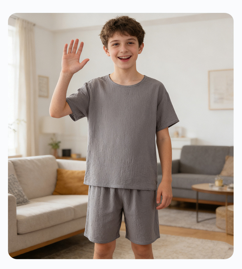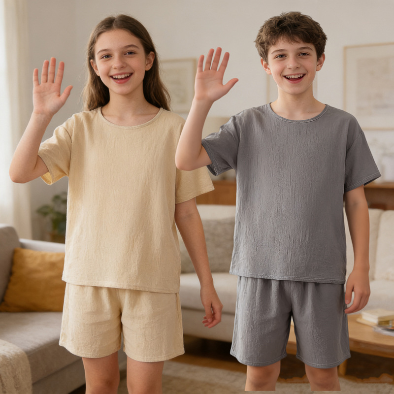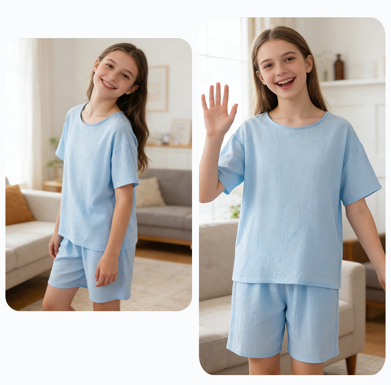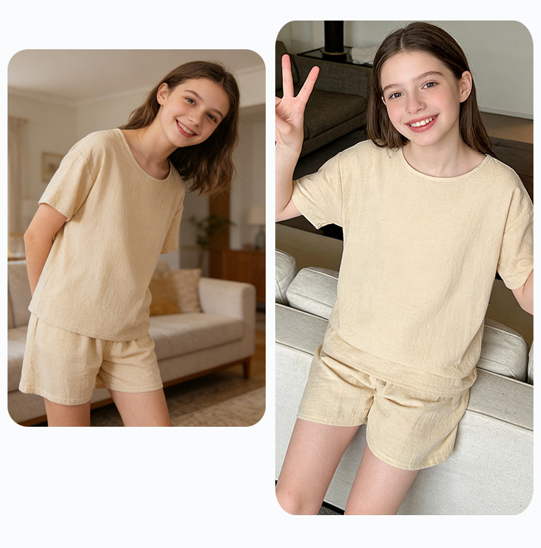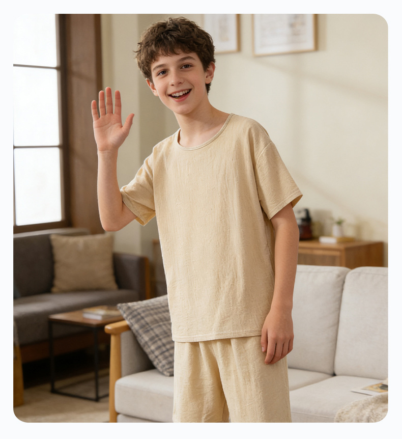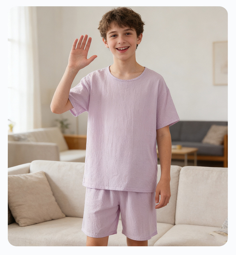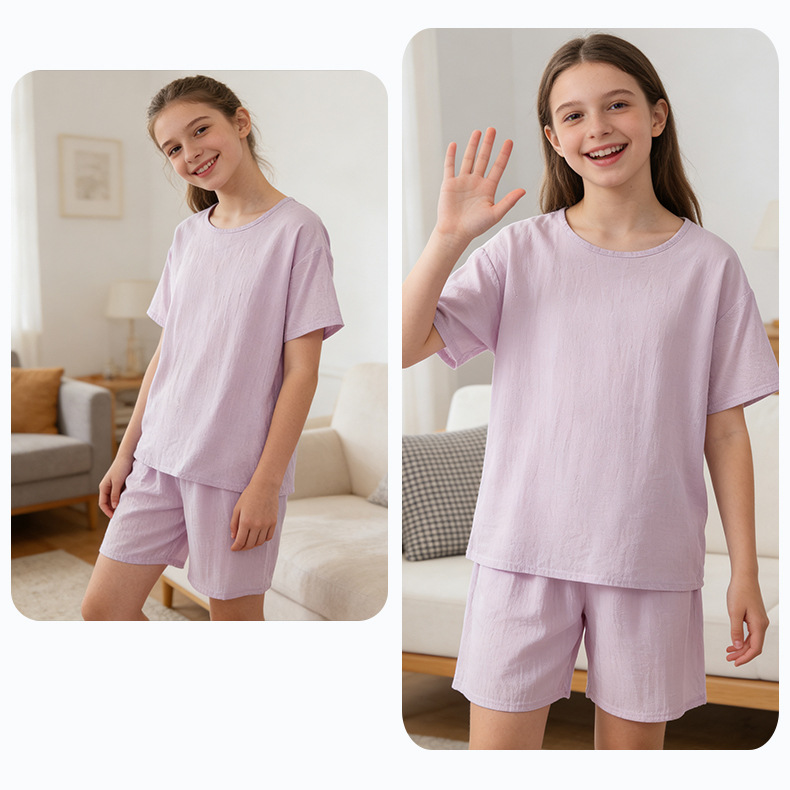 儿童家居服纯棉夏季男童短袖短裤中大童学生纯色居家套装女童睡衣