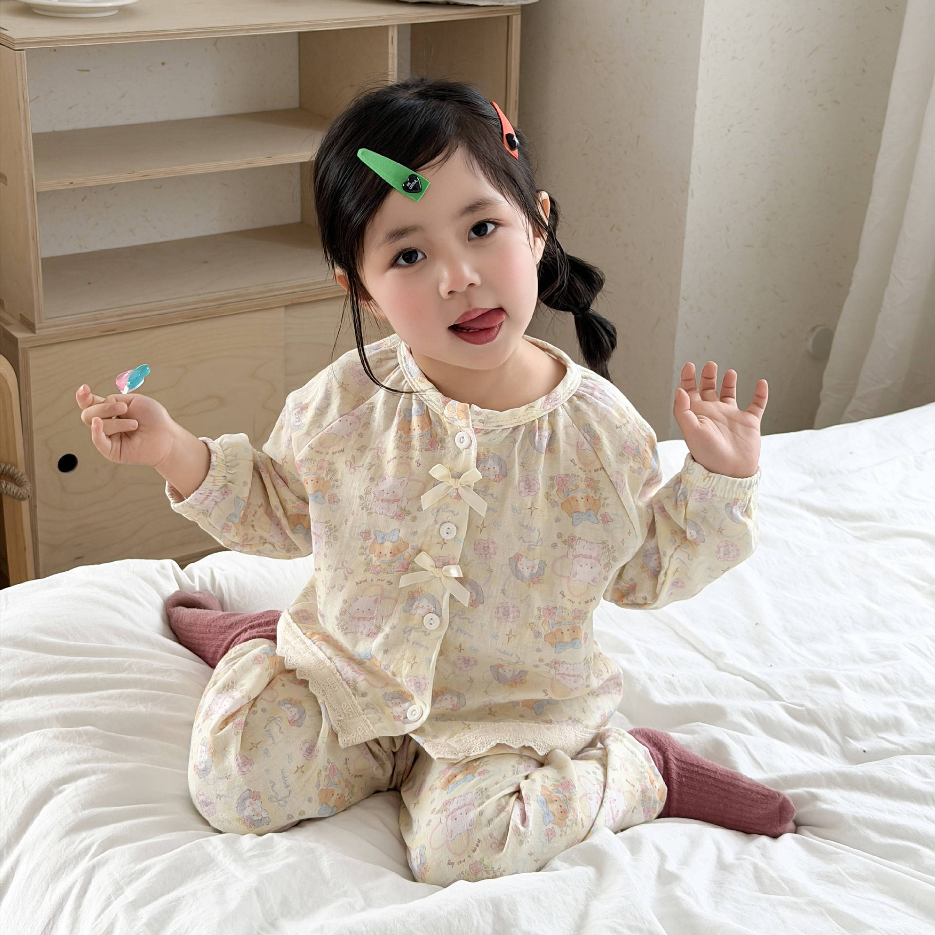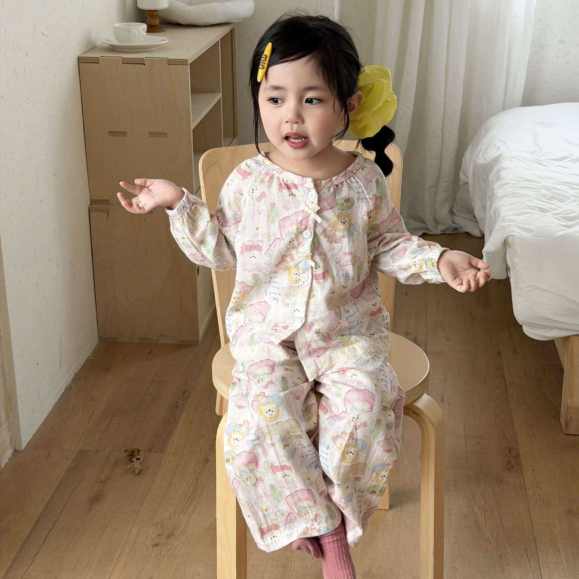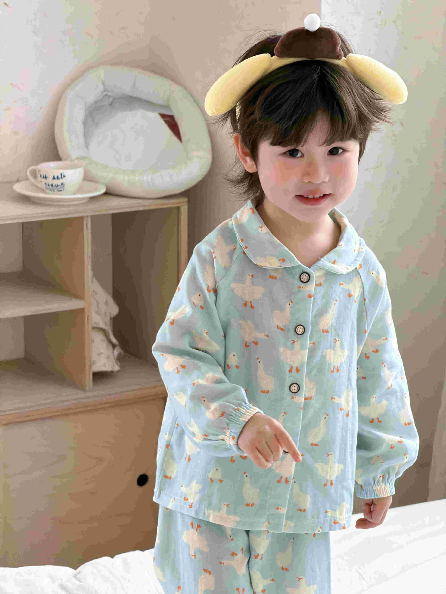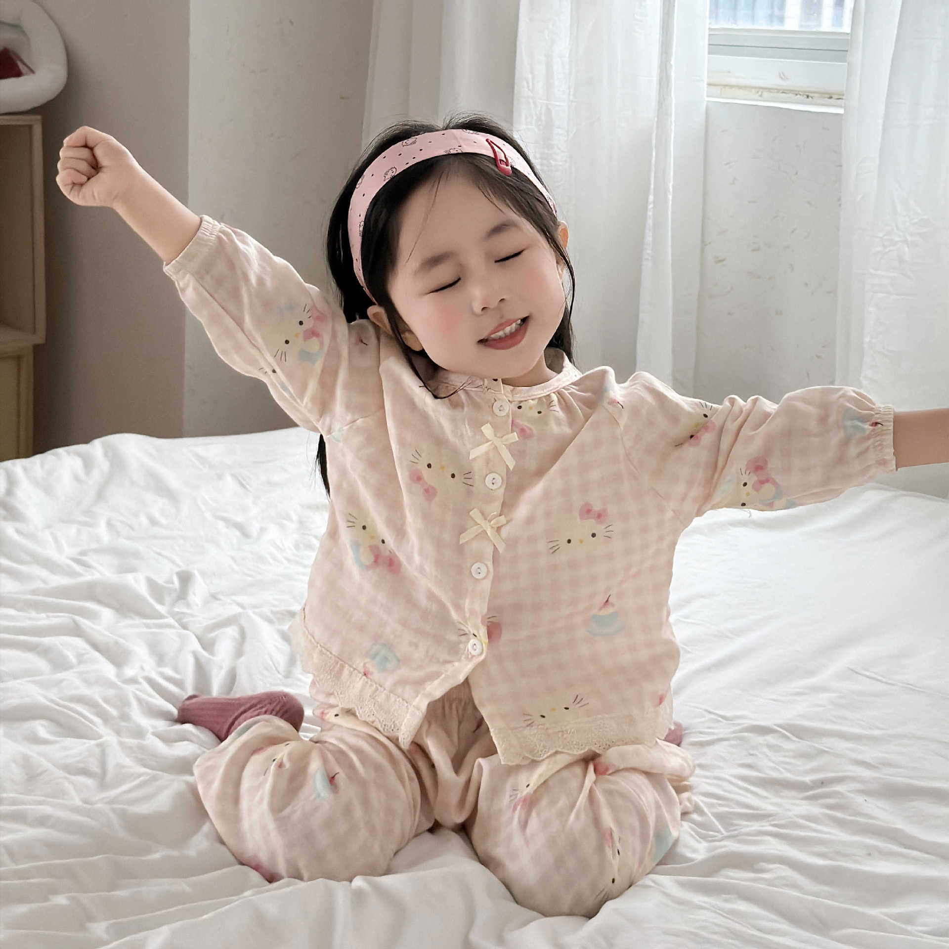 儿童睡衣纯棉双层纱布春夏秋季薄款宝宝家居服男女卡通空调服套装