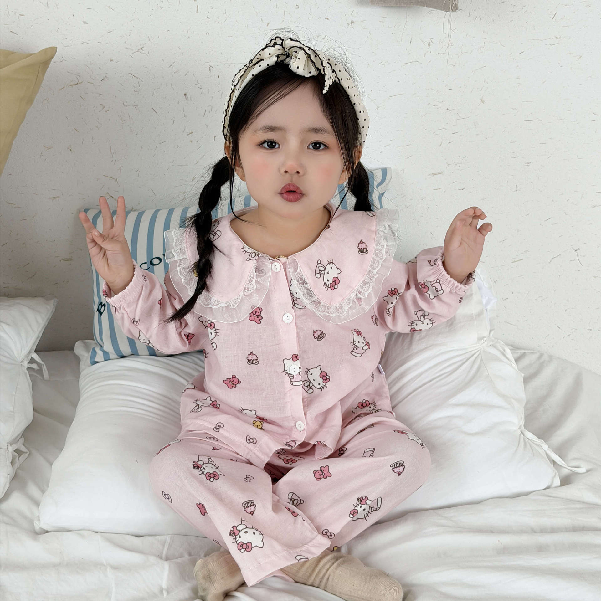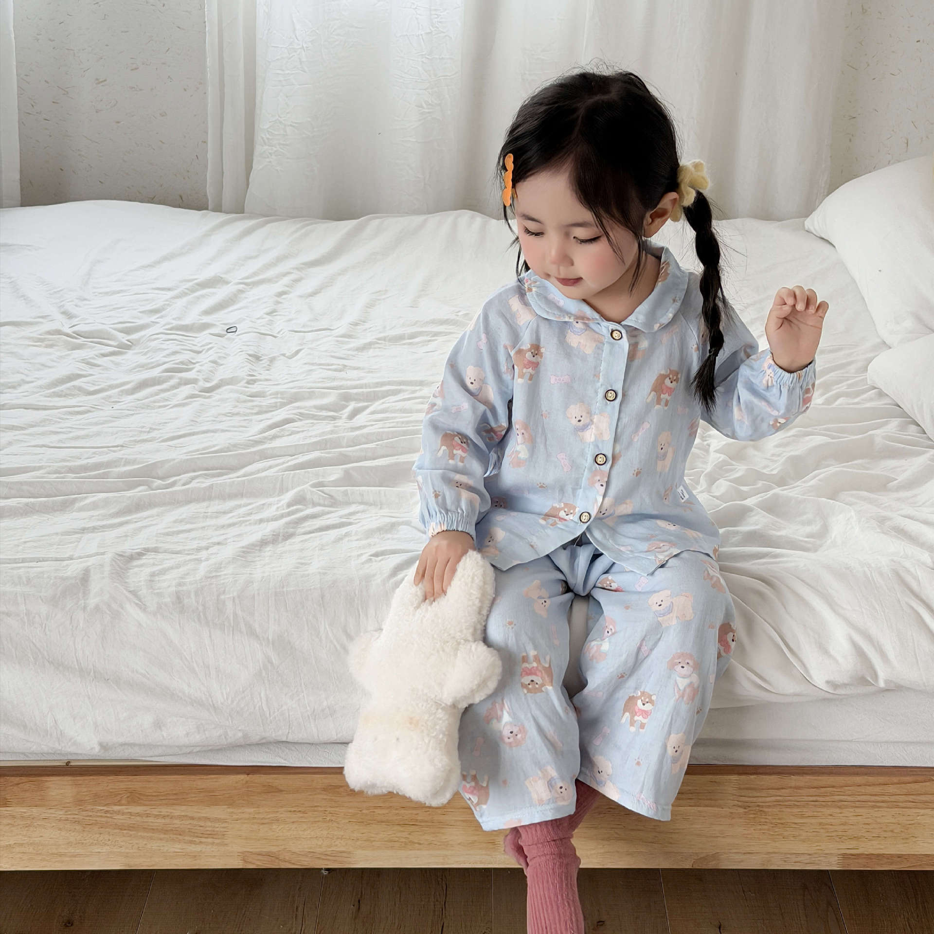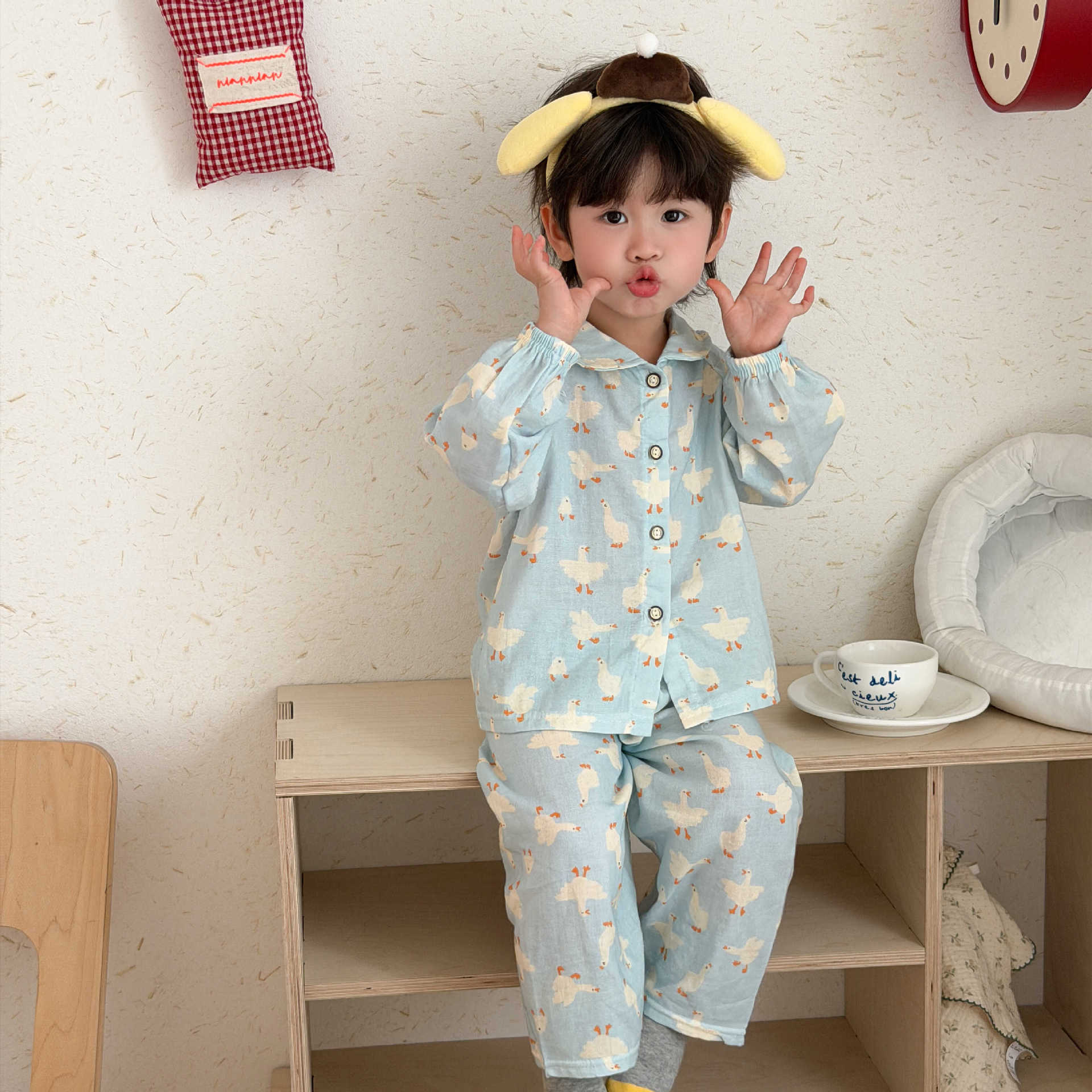 儿童睡衣纯棉双层纱布春夏秋季薄款宝宝家居服男女卡通空调服套装