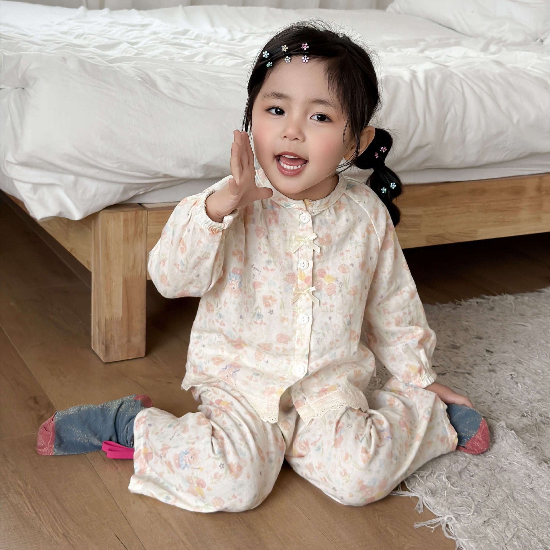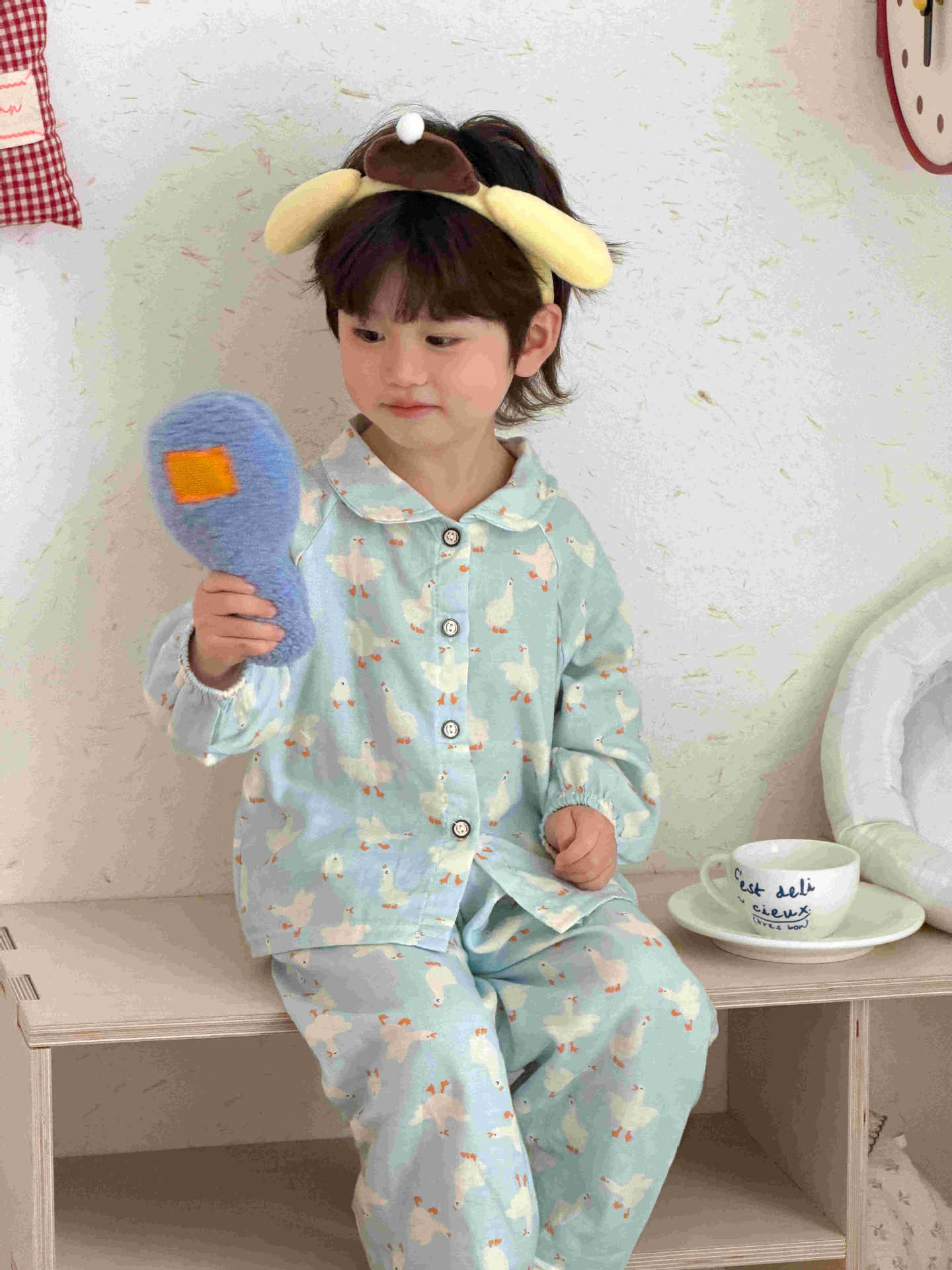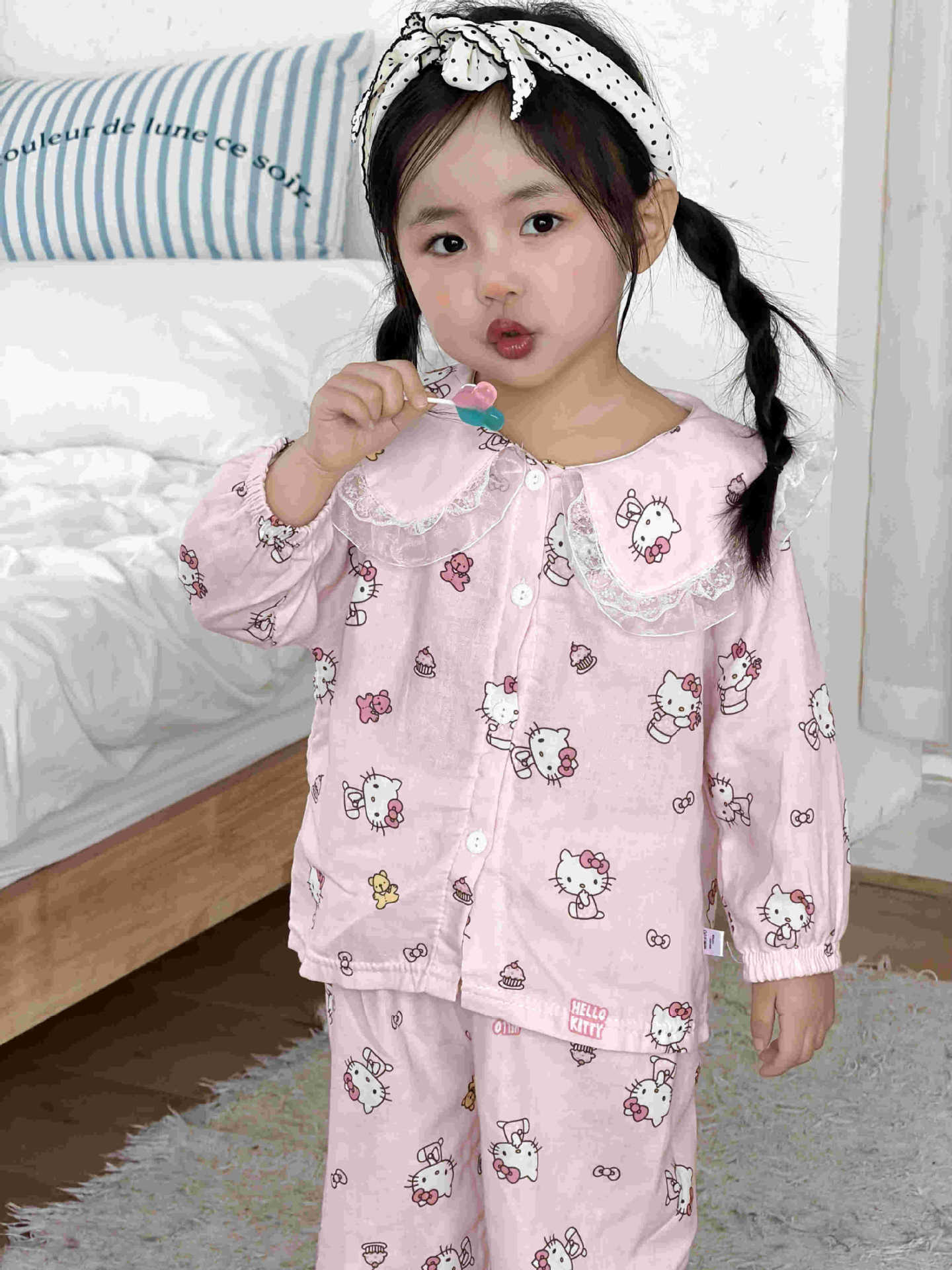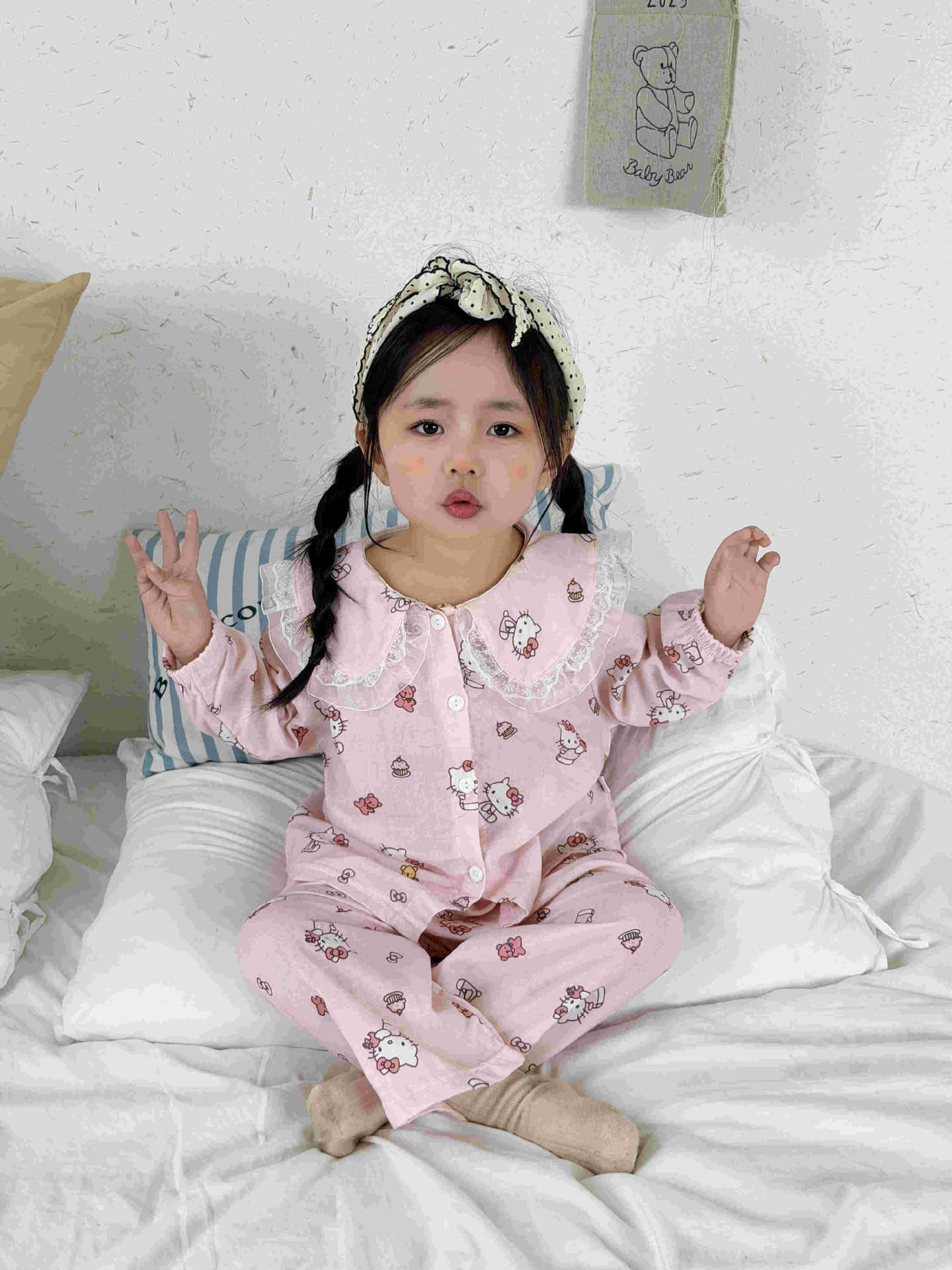 儿童睡衣纯棉双层纱布春夏秋季薄款宝宝家居服男女卡通空调服套装