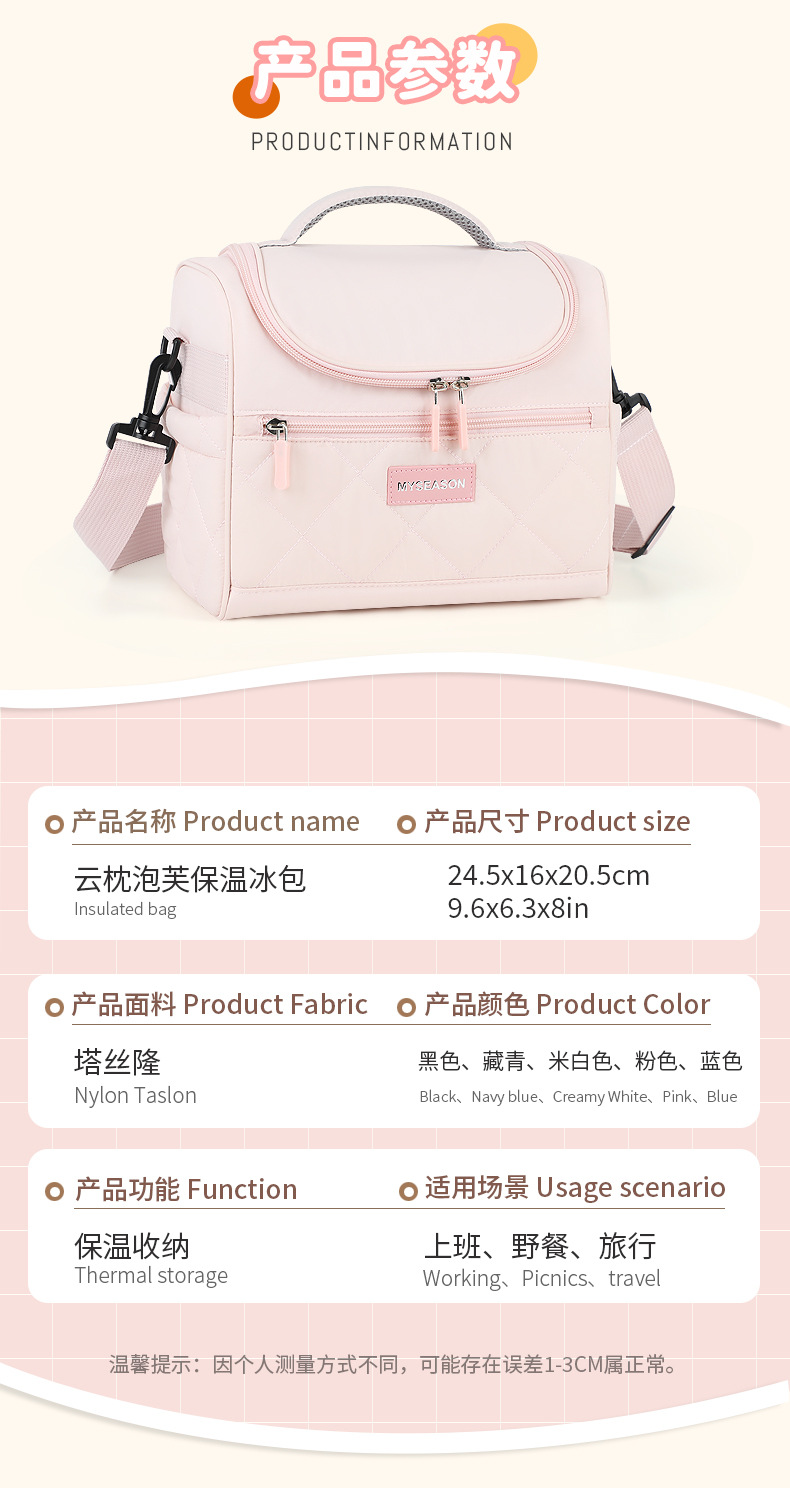 新款跨境时尚保温包多功能上班族带饭午餐包单肩斜挎保温饭盒袋