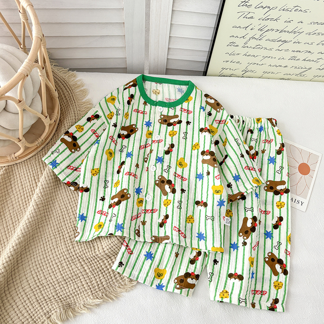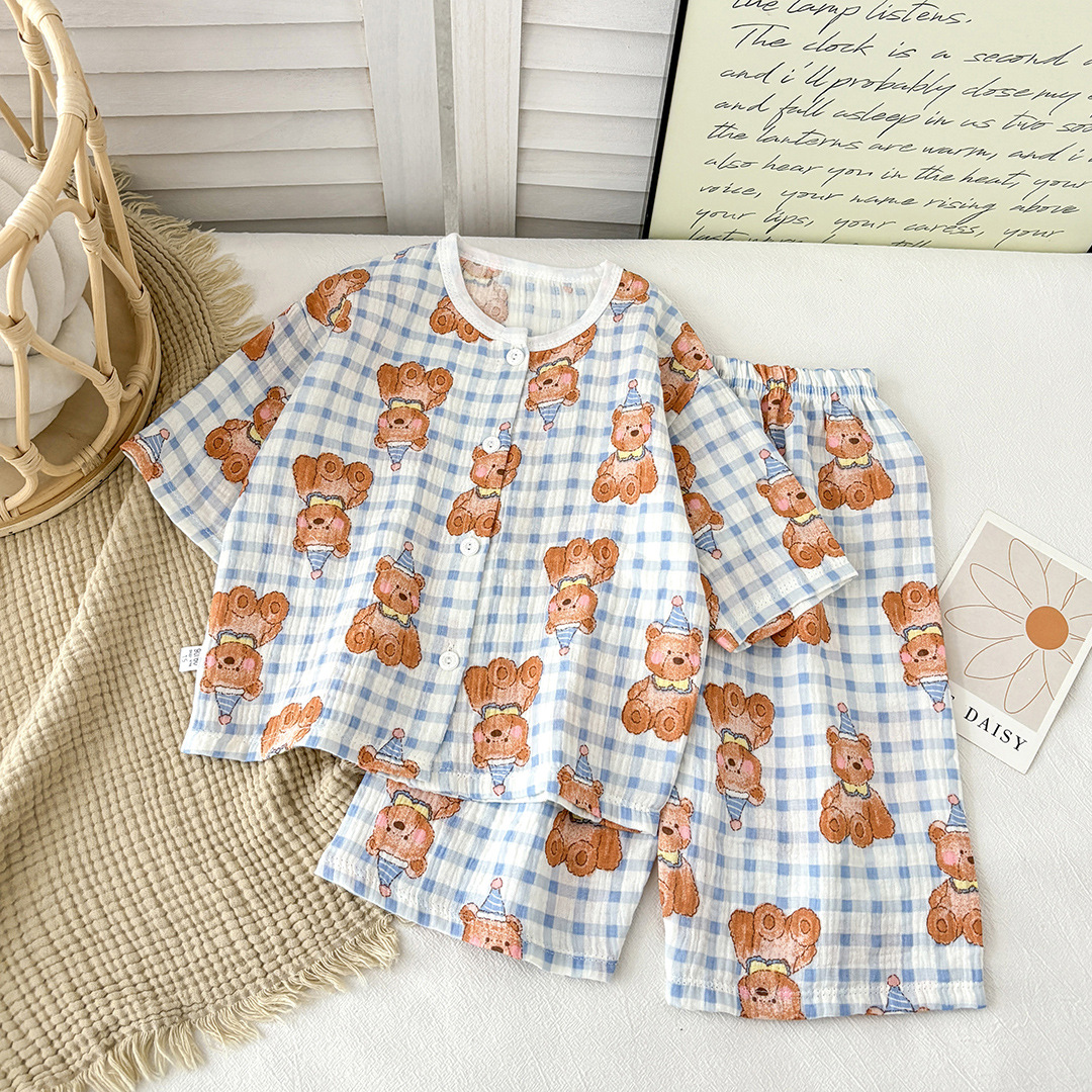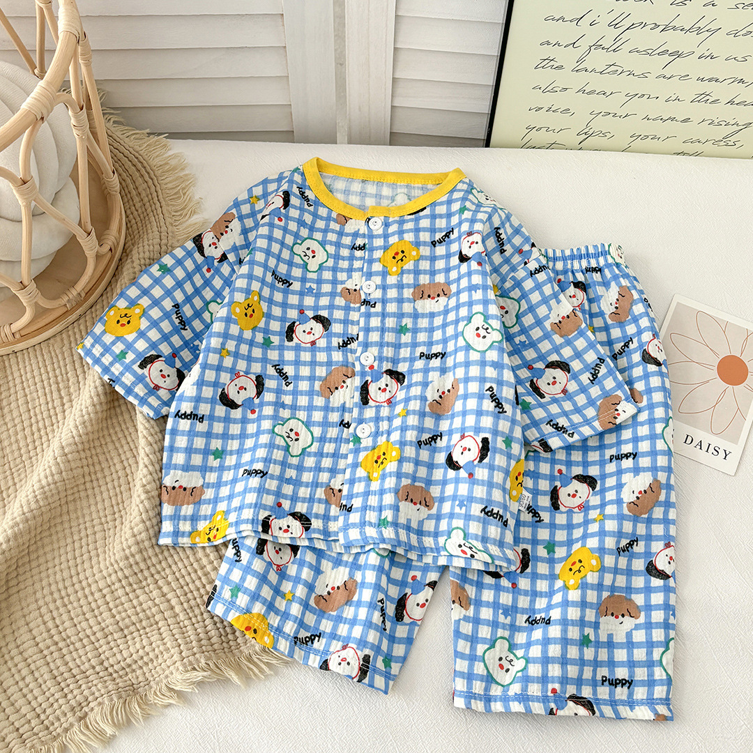 新款儿童纯棉纱布睡衣套装春夏棉纱家居服男女童韩版百搭两件套