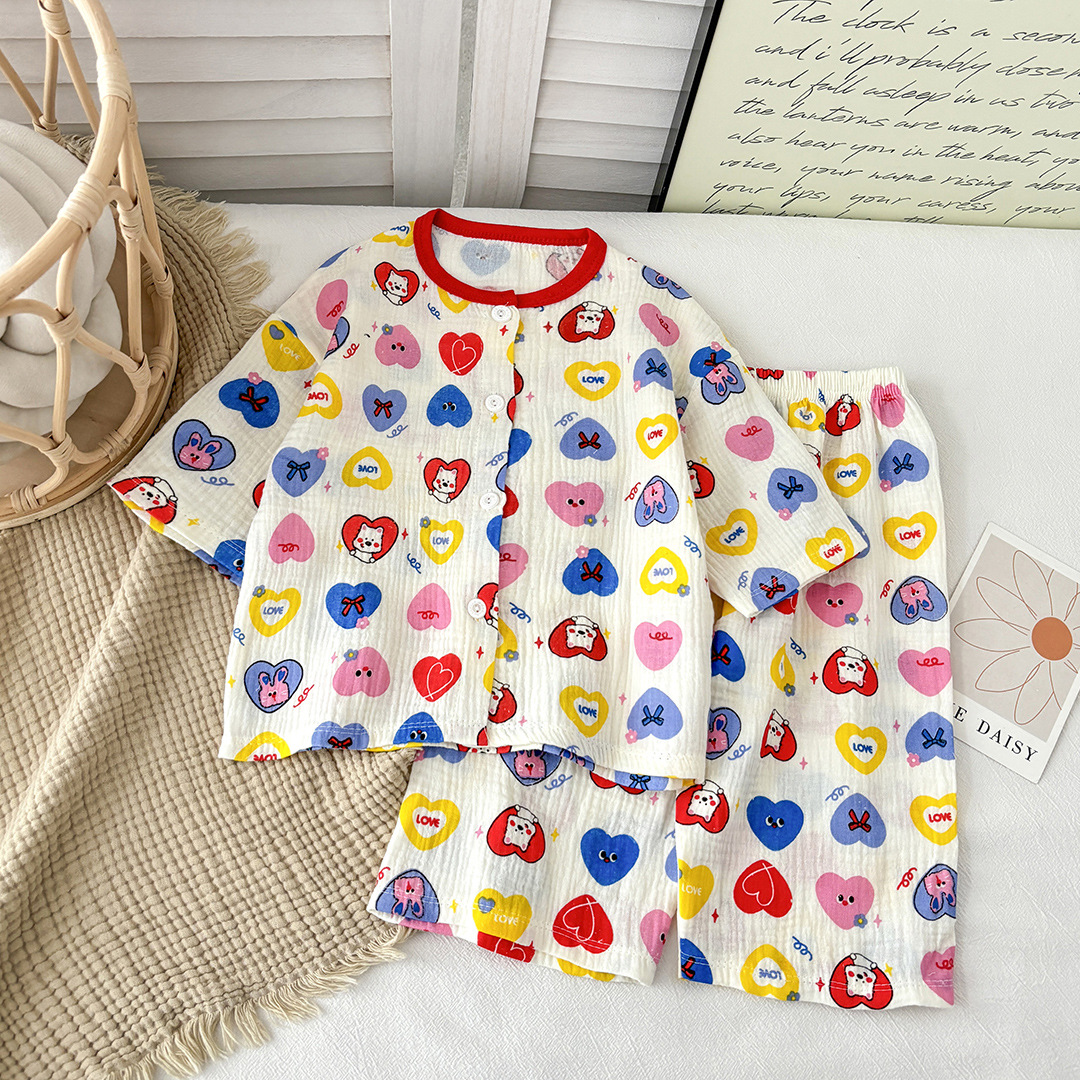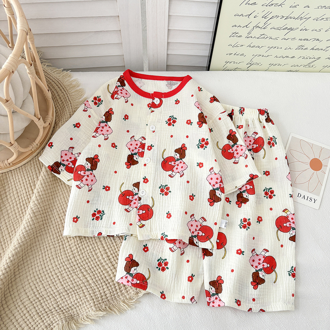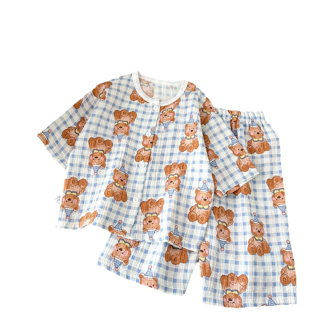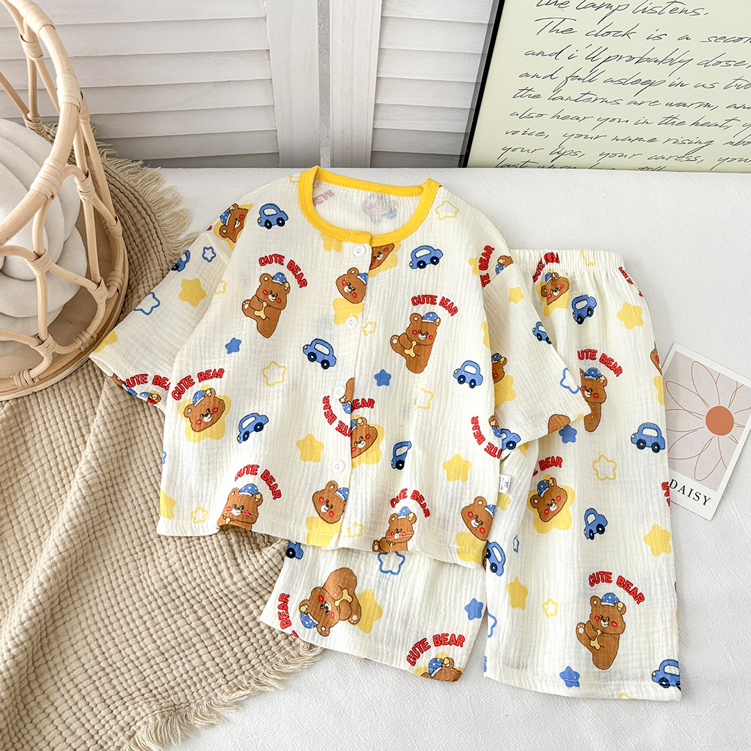 新款儿童纯棉纱布睡衣套装春夏棉纱家居服男女童韩版百搭两件套