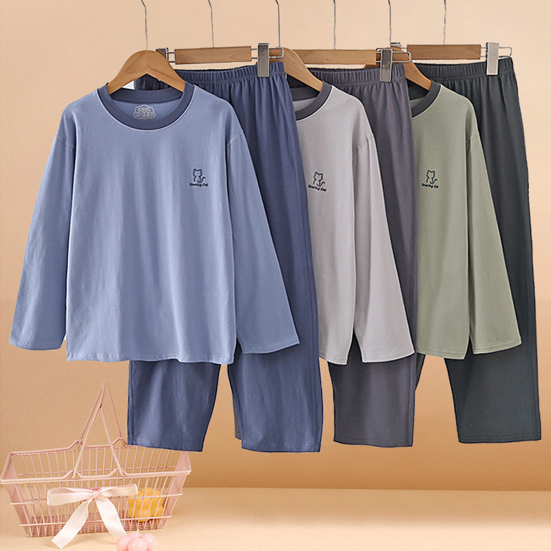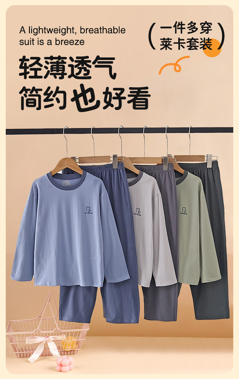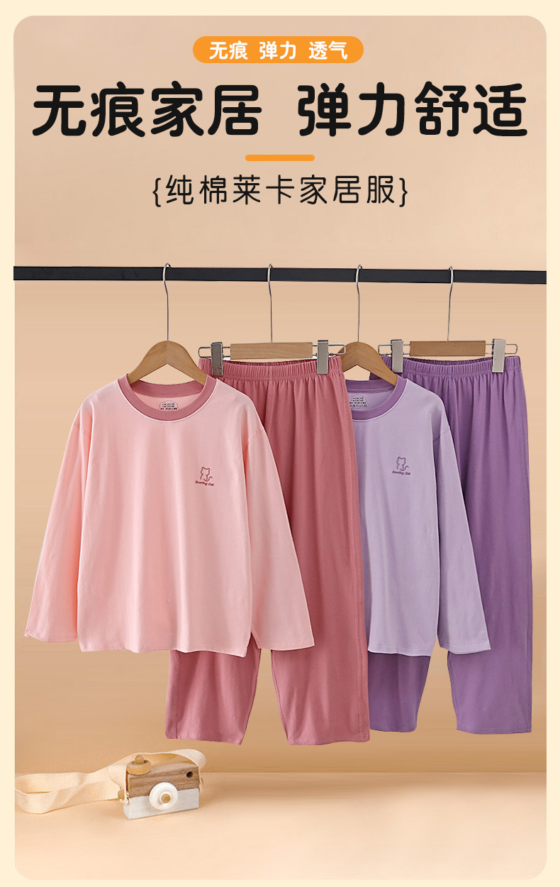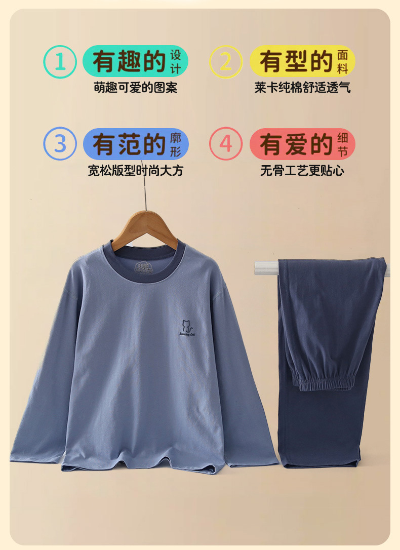 春夏新款男童睡衣青少年莱卡纯棉儿童女孩大童初中学生家居服秋装