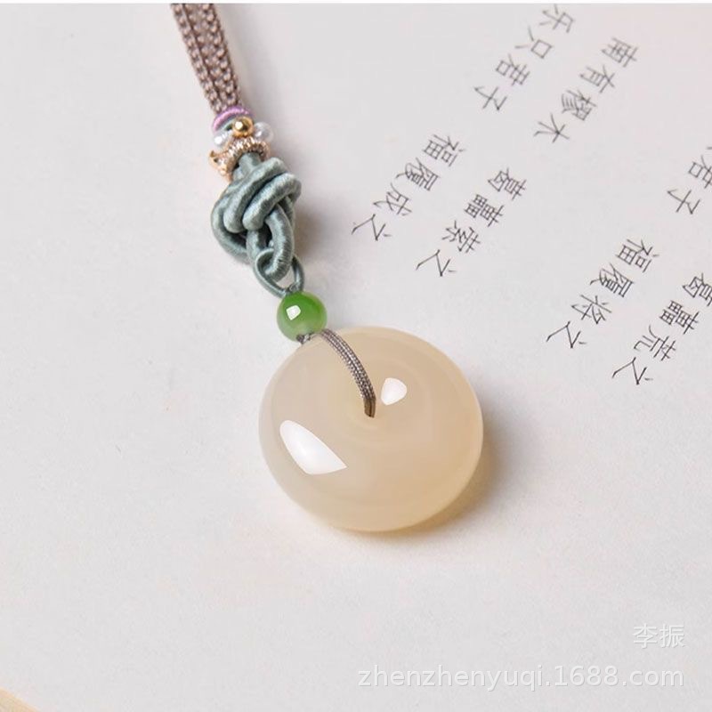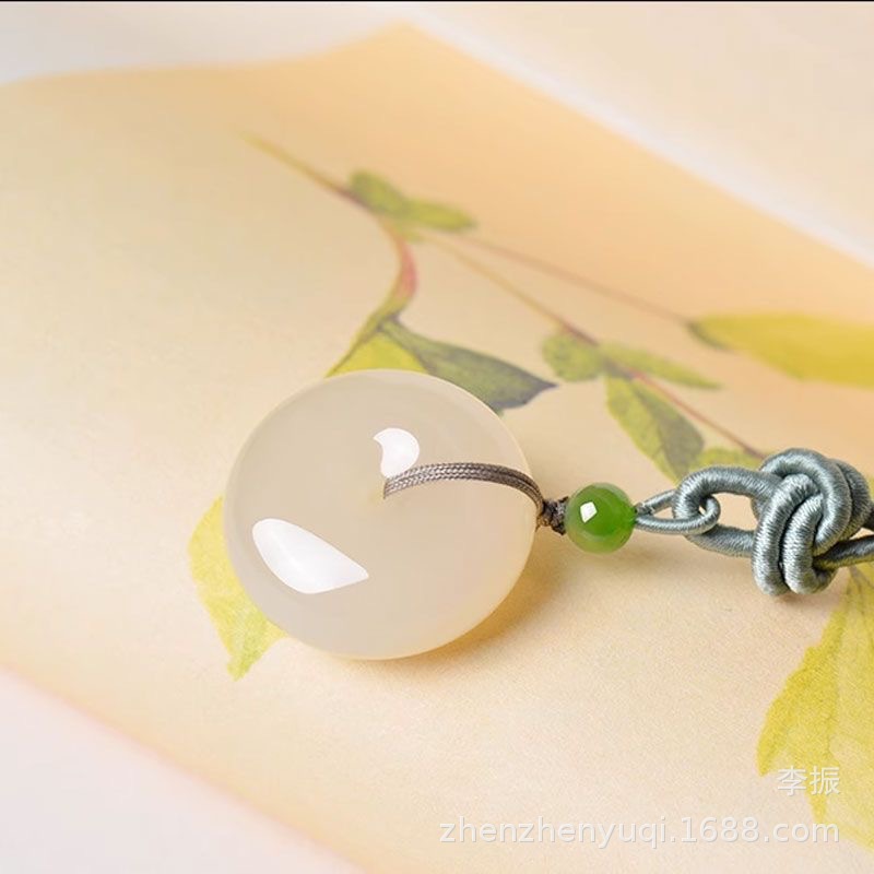 新疆和田玉藕粉吊坠平安扣吊坠男女玉佩玉坠白玉吊坠和田玉石项链