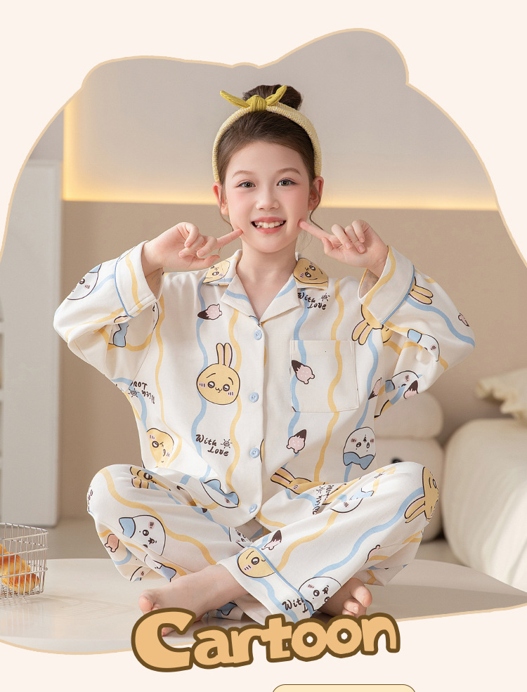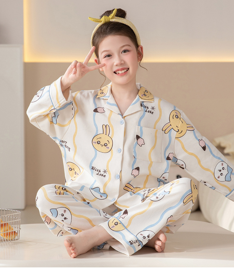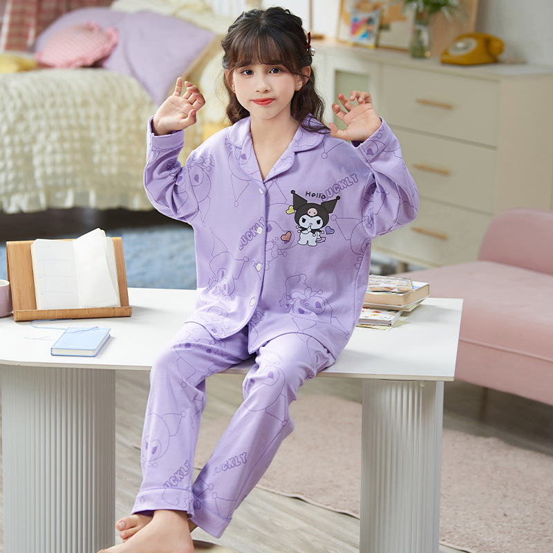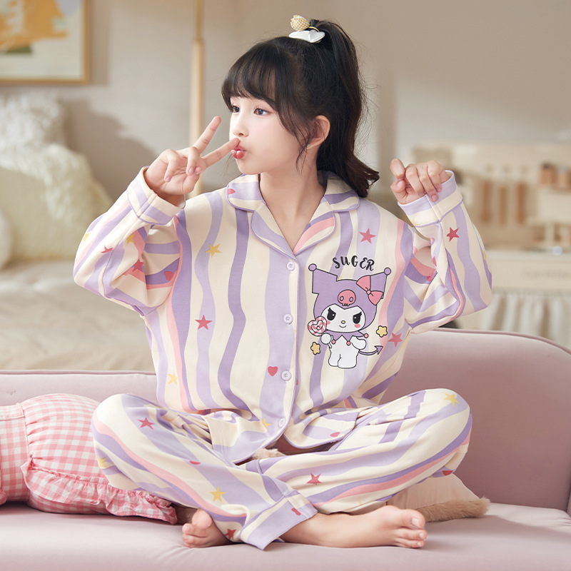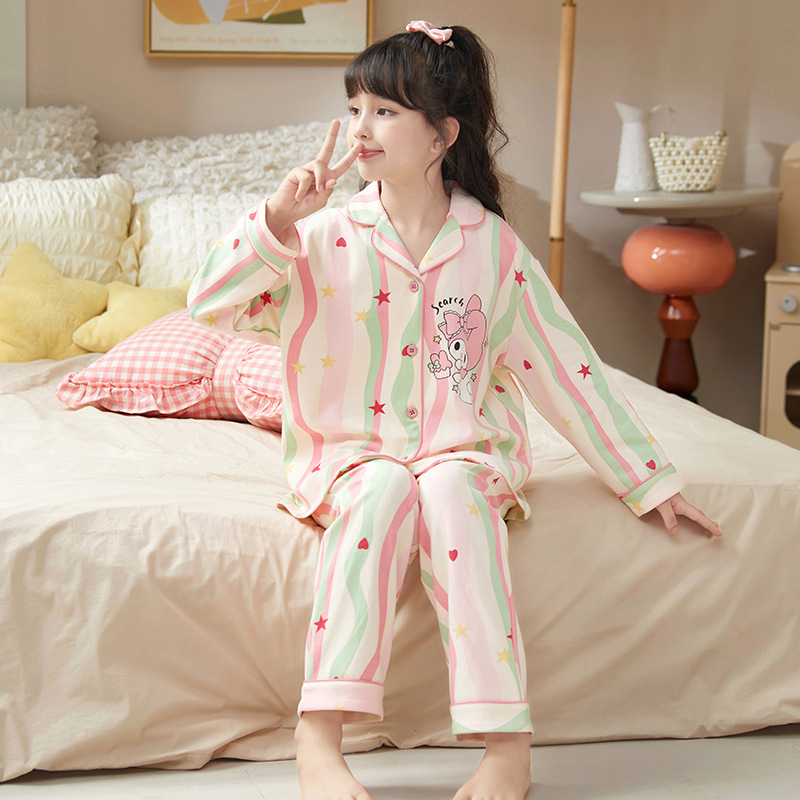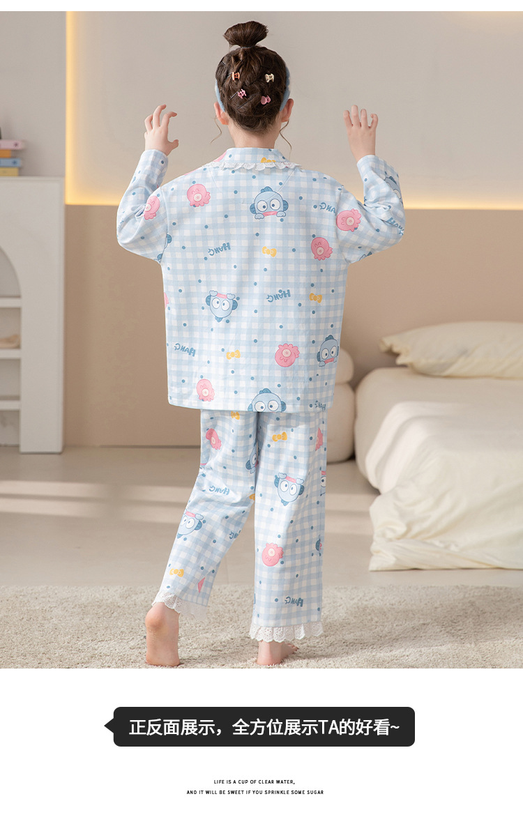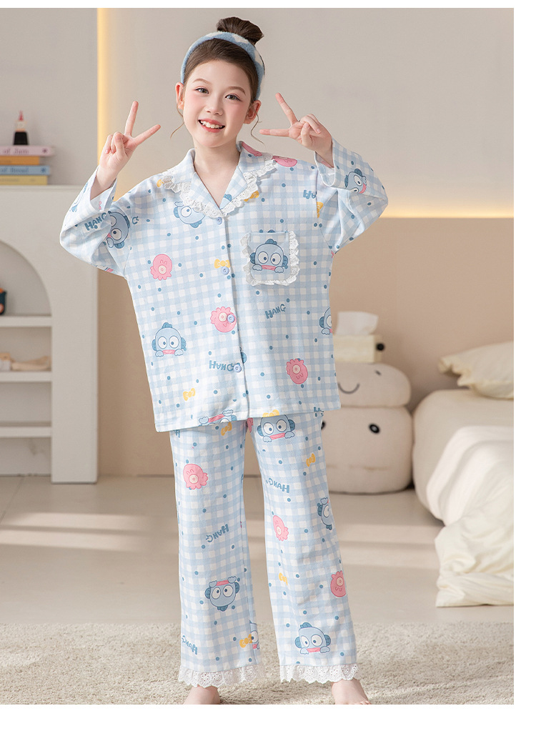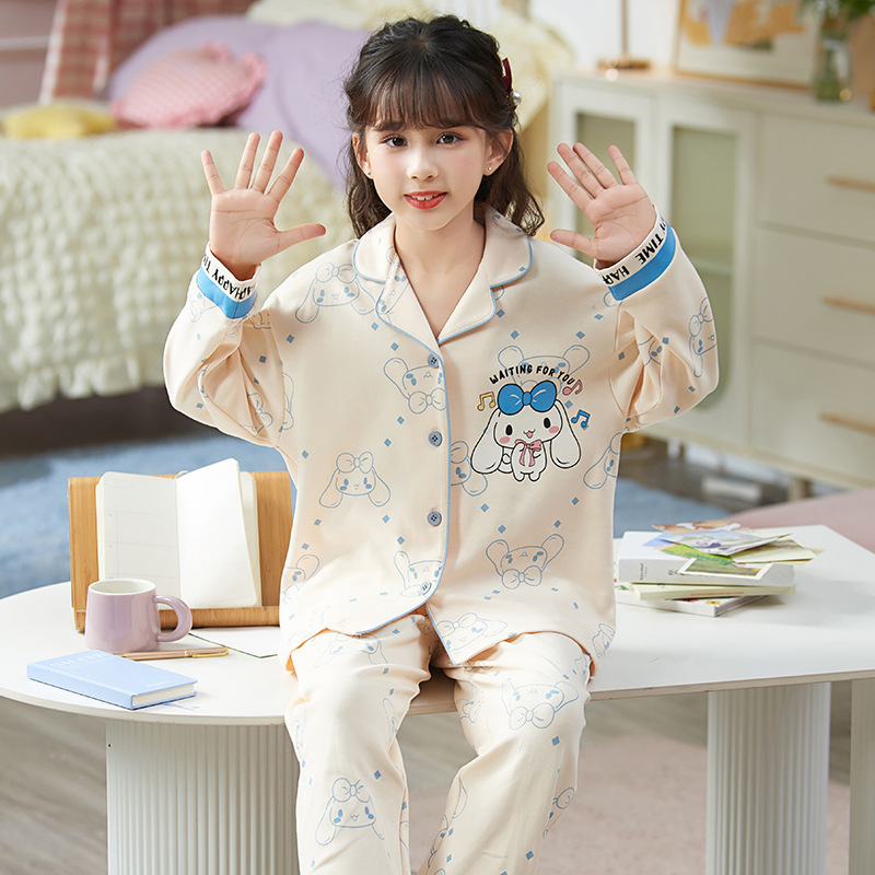 100%纯棉女童睡衣春秋季长袖儿童学生可爱家居服女孩少女全棉套装