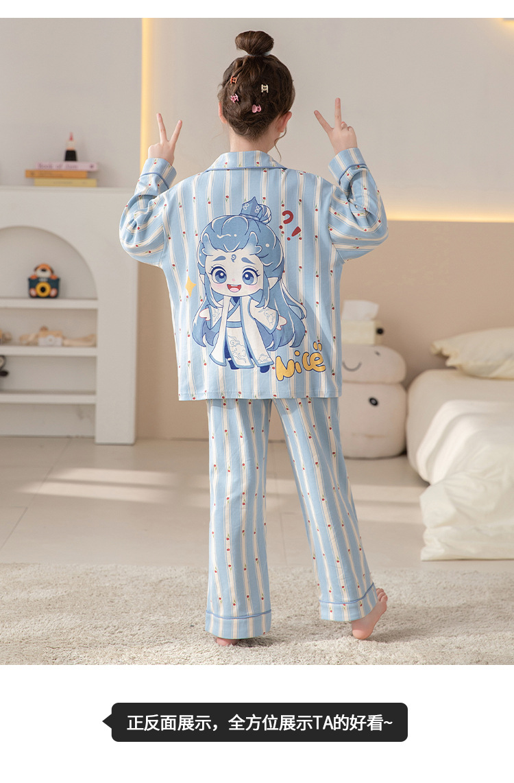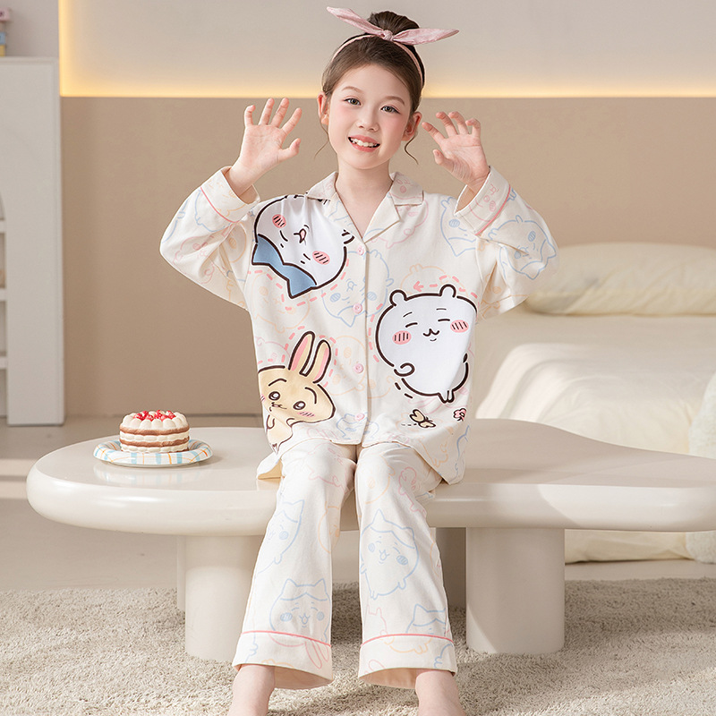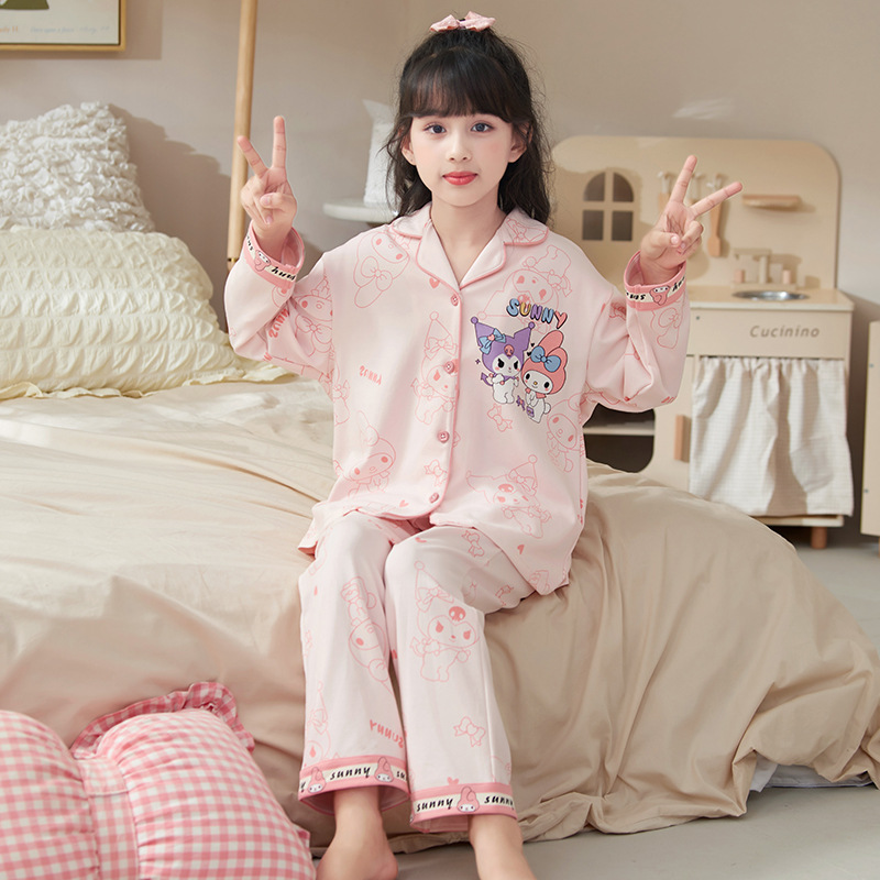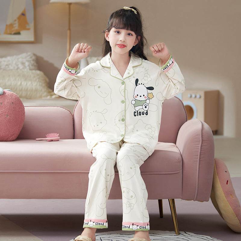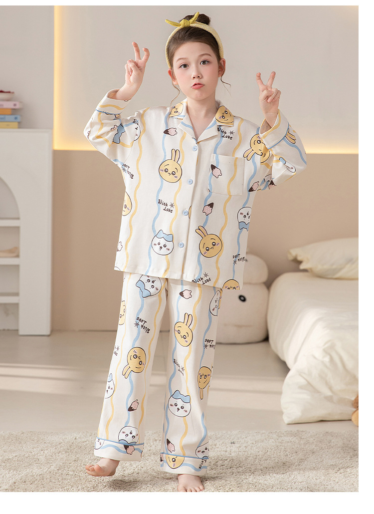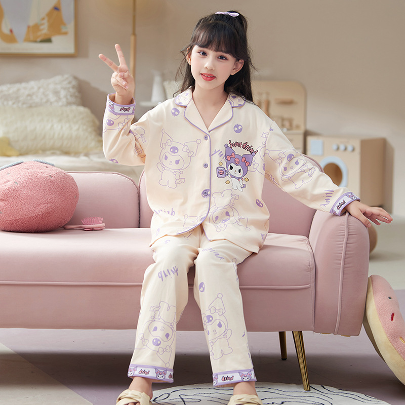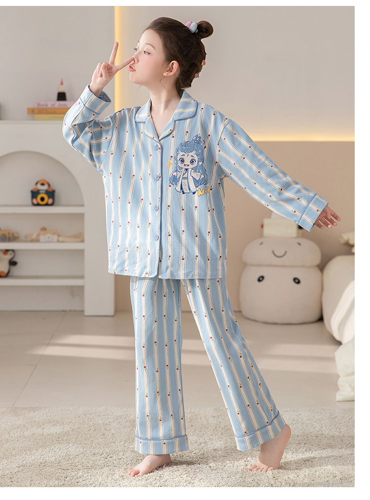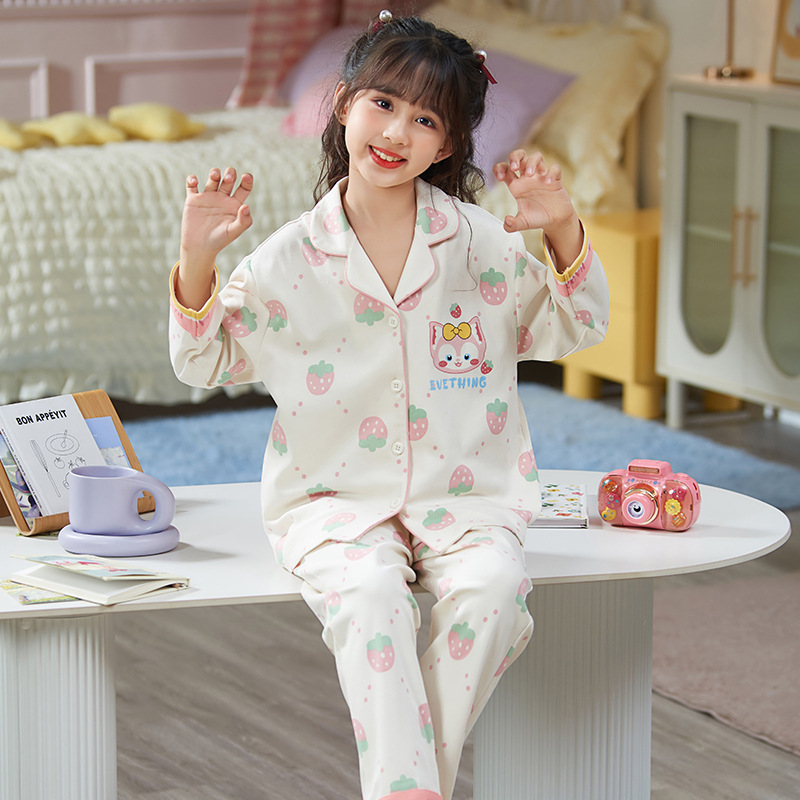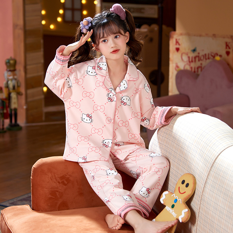 100%纯棉女童睡衣春秋季长袖儿童学生可爱家居服女孩少女全棉套装