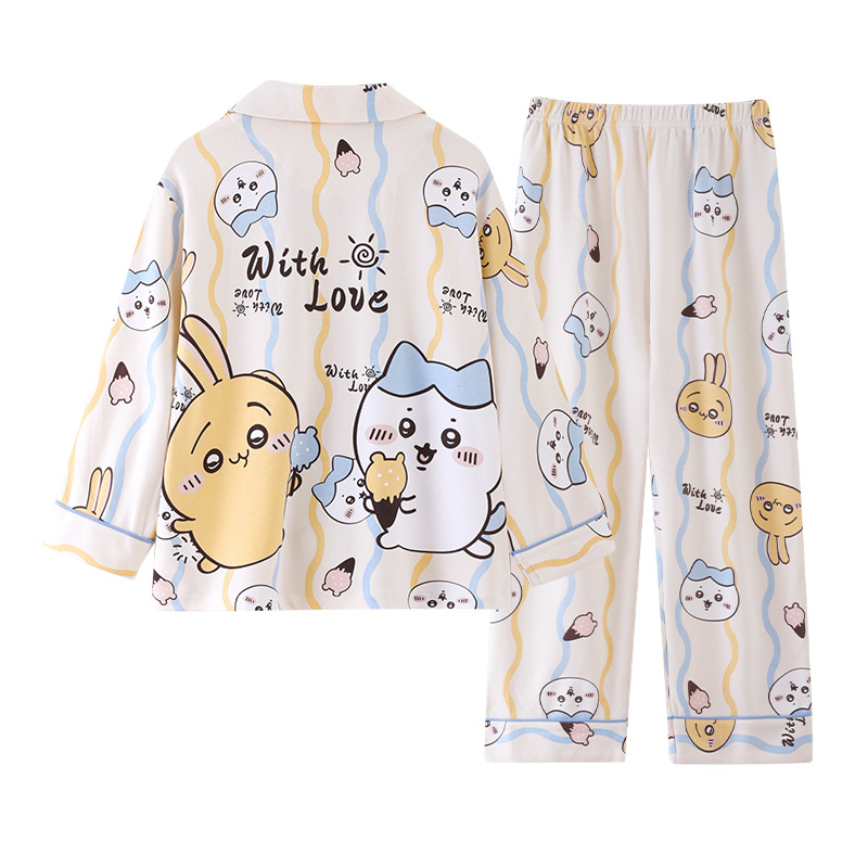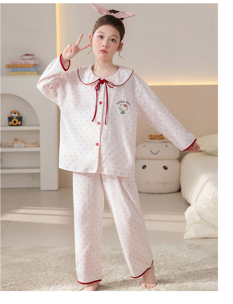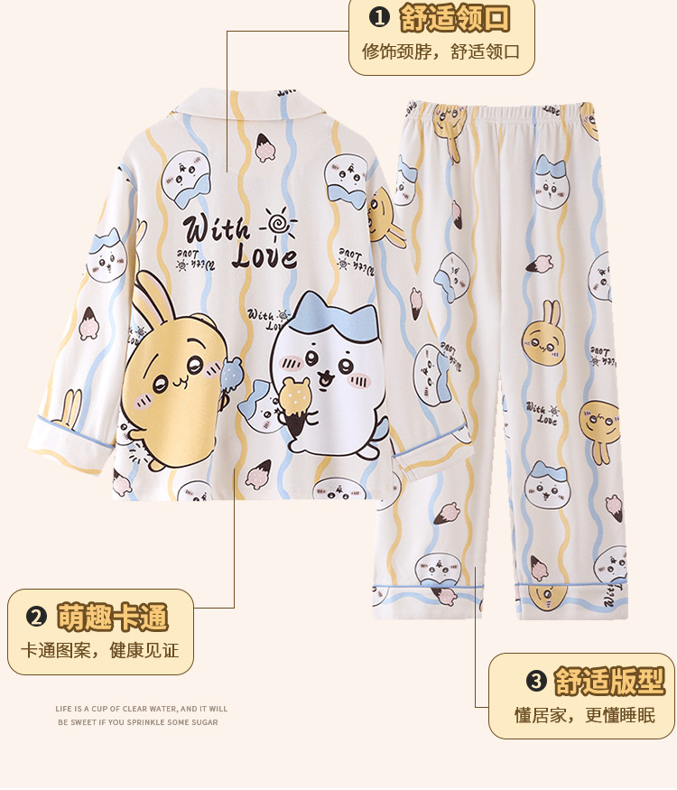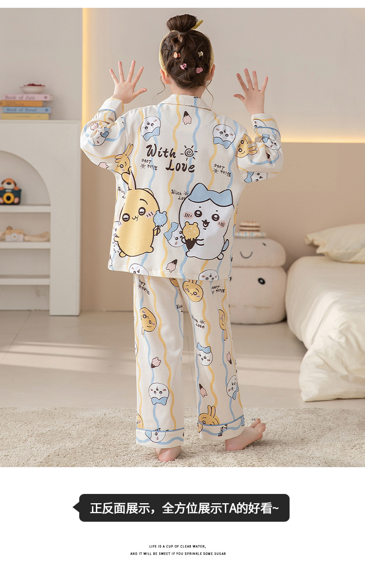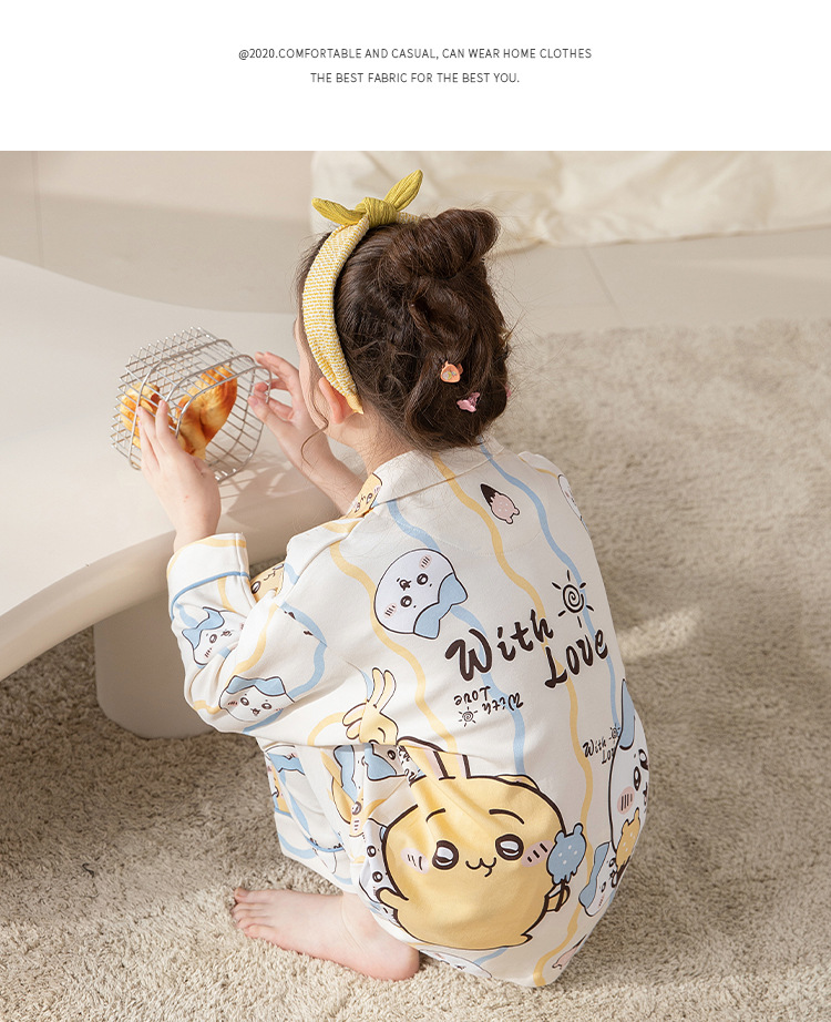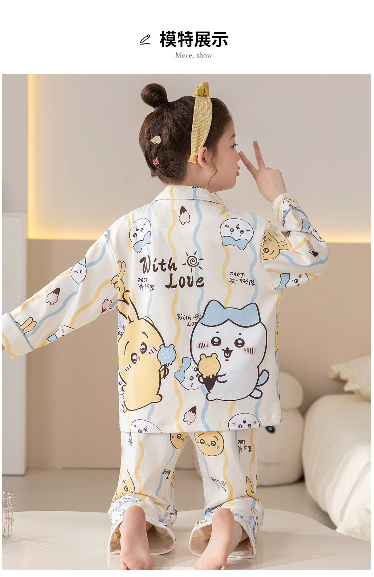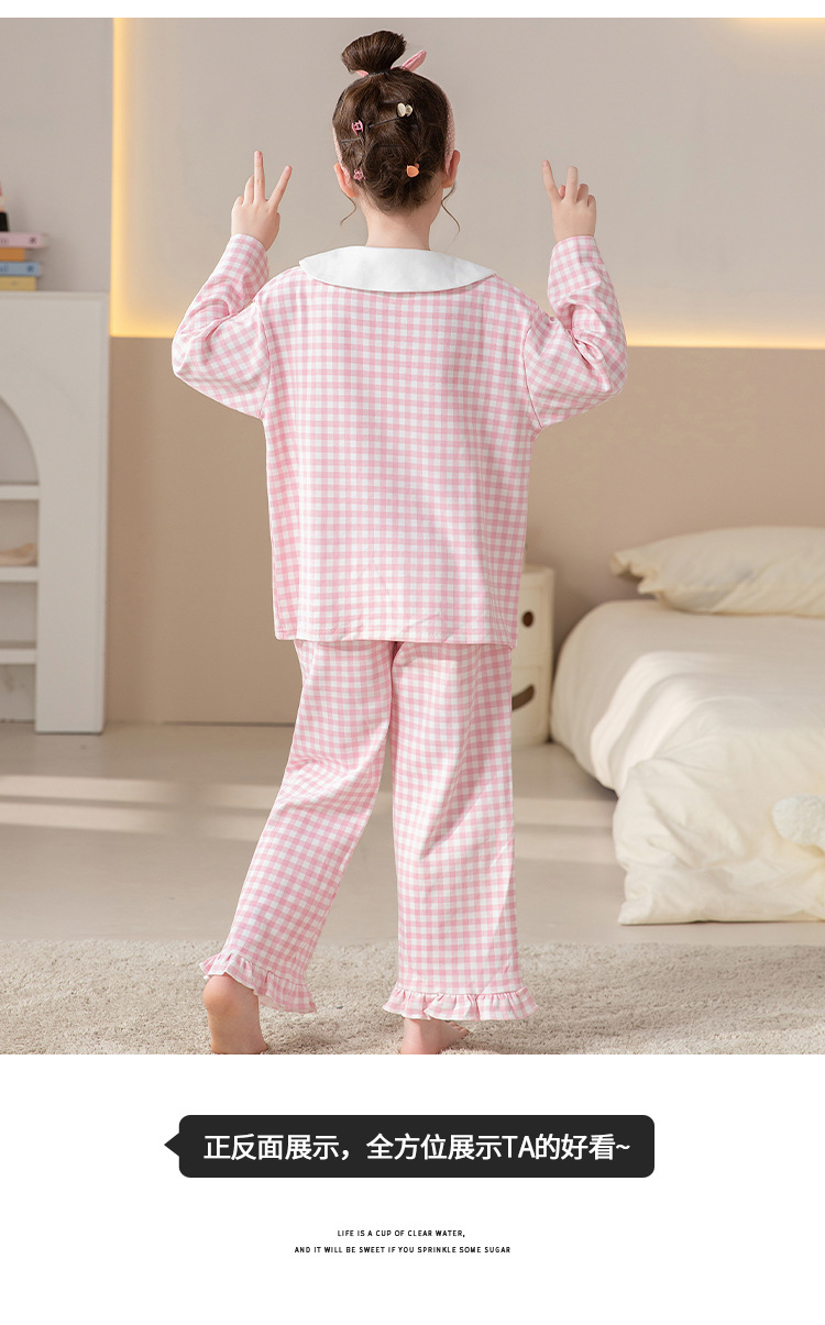 100%纯棉女童睡衣春秋季长袖儿童学生可爱家居服女孩少女全棉套装