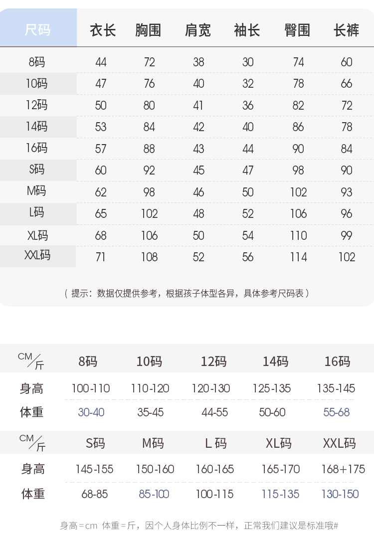 | 16码【135-145cm/55-68斤】 | USD $11.56 | 100 set available |