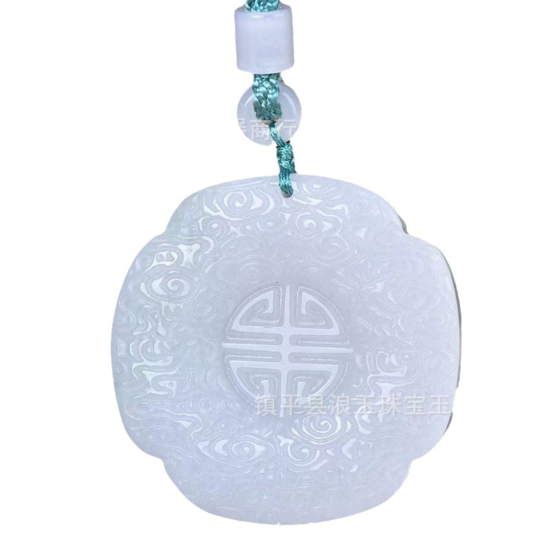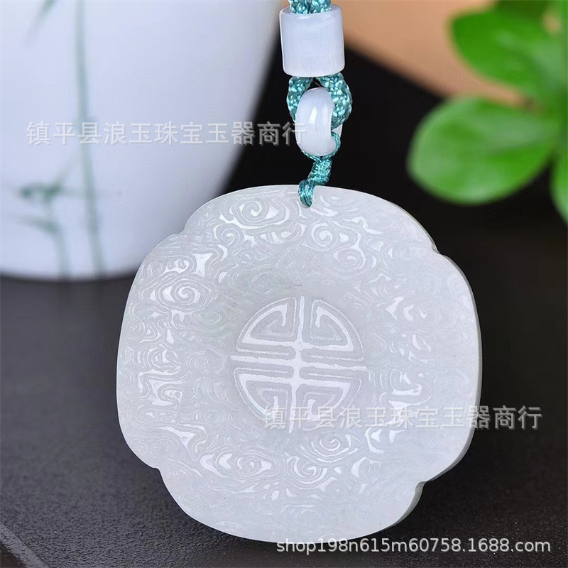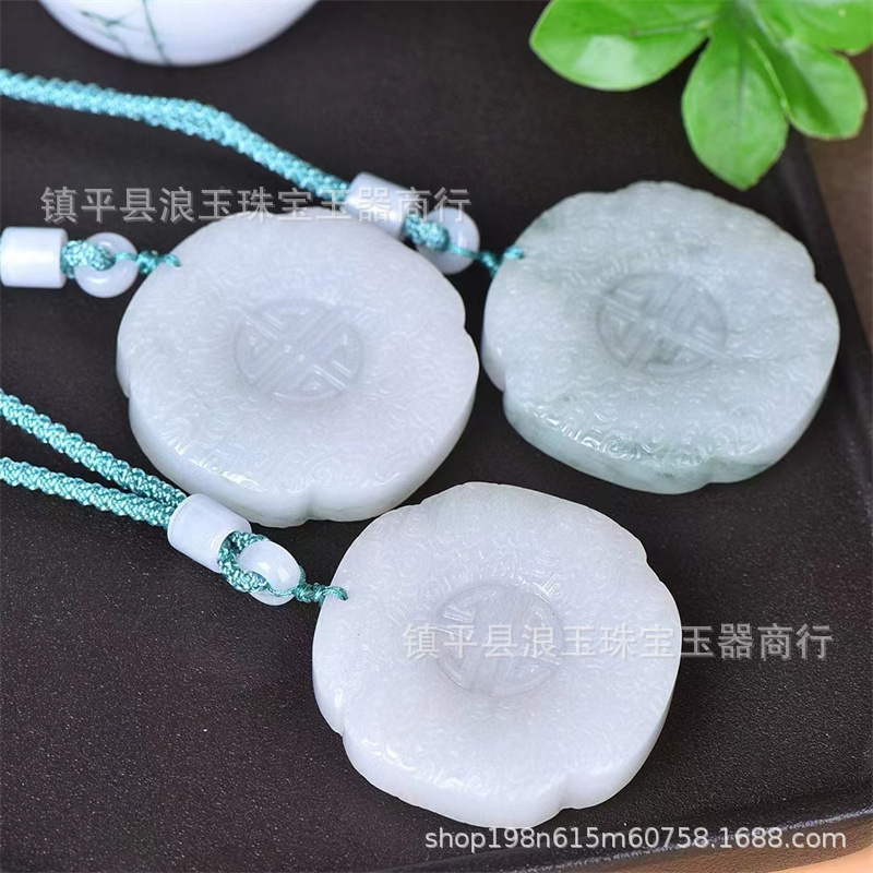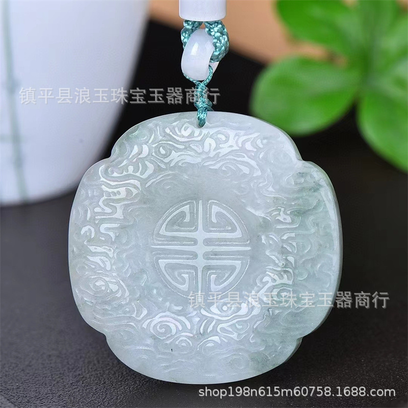 天然玉石新疆金丝玉天山翠祥云福字圆形双面玉佩吊坠直播货源