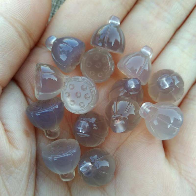 玉石东陵玉新疆白玉灰玛瑙白玛瑙莲蓬吊坠DIY饰品钥匙扣