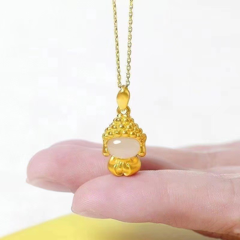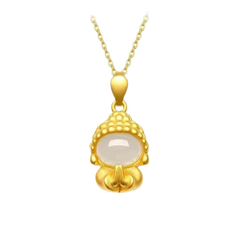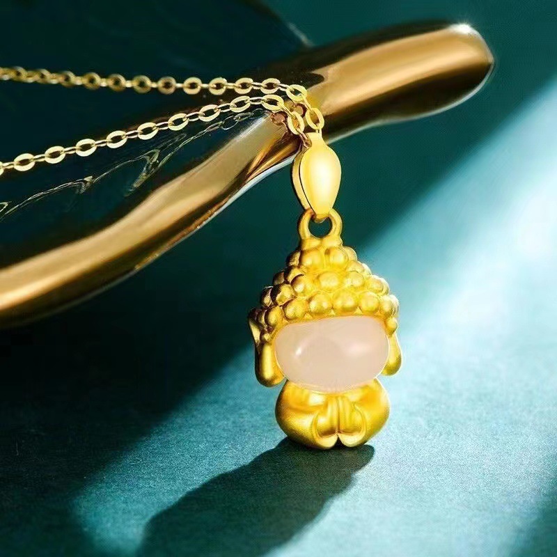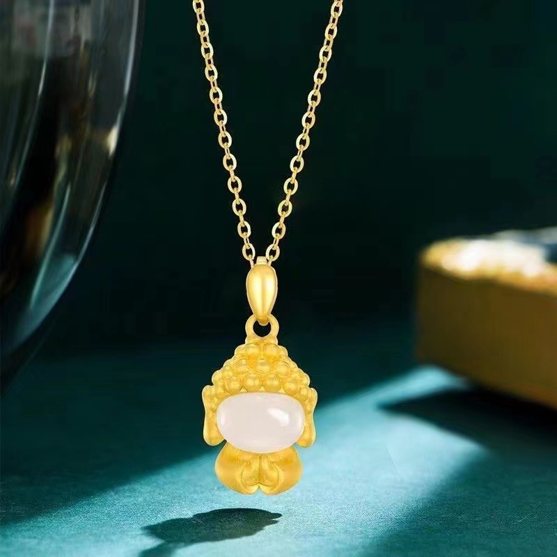 越南沙金小无相佛和田白玉吊坠女款锁骨项链送礼直播供货工厂批发