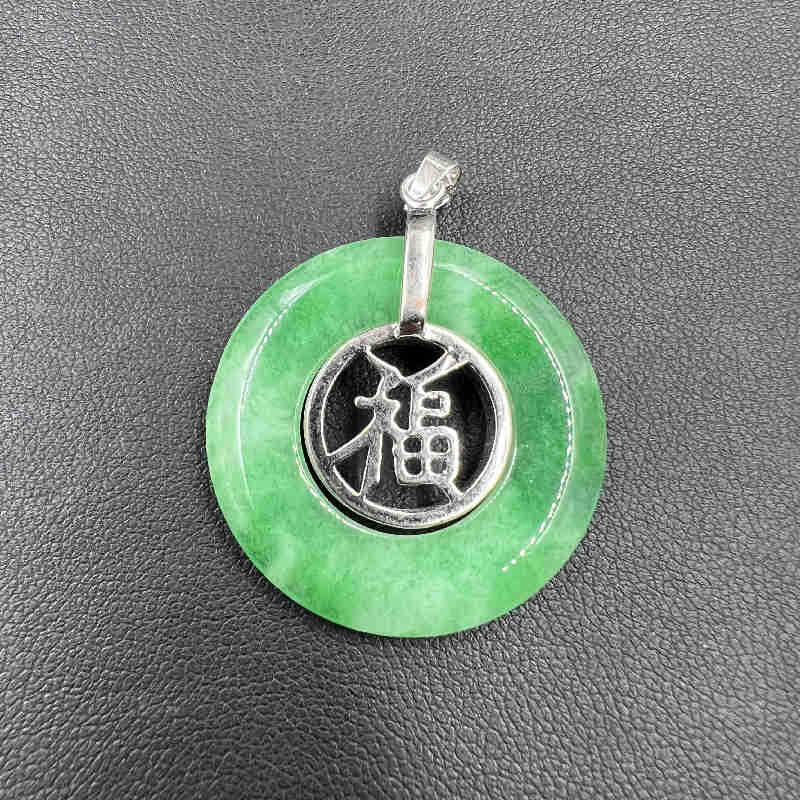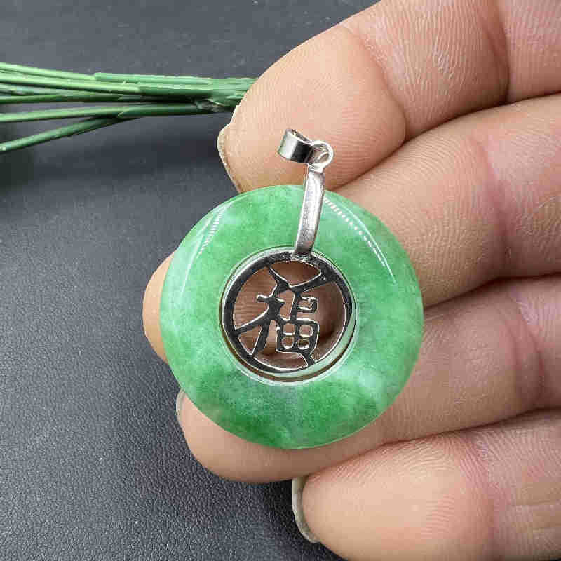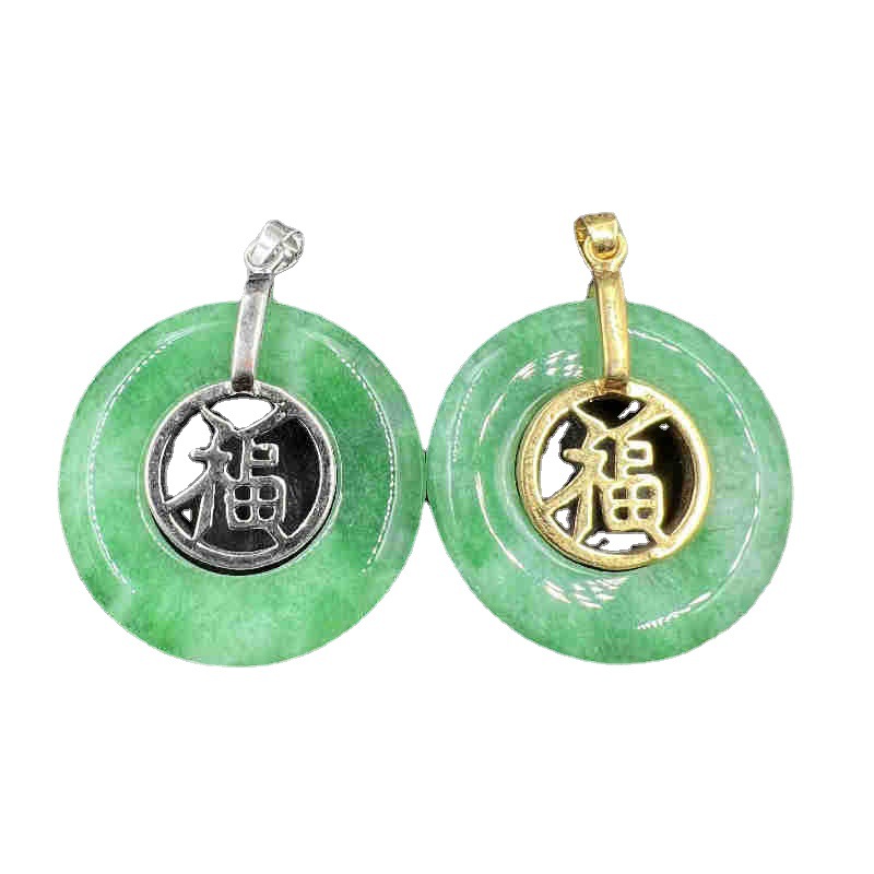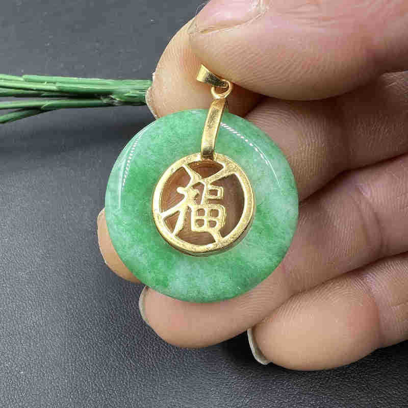 雅玉堂玉器干青翠玉扣挂件白底青翡翠福字平安扣吊坠金镶玉项链坠