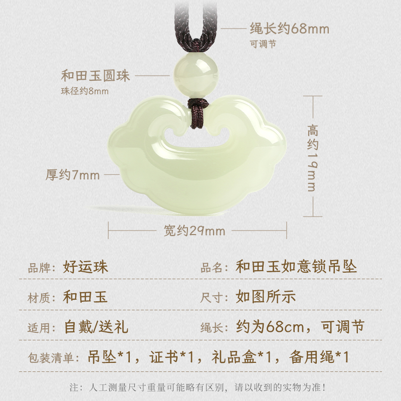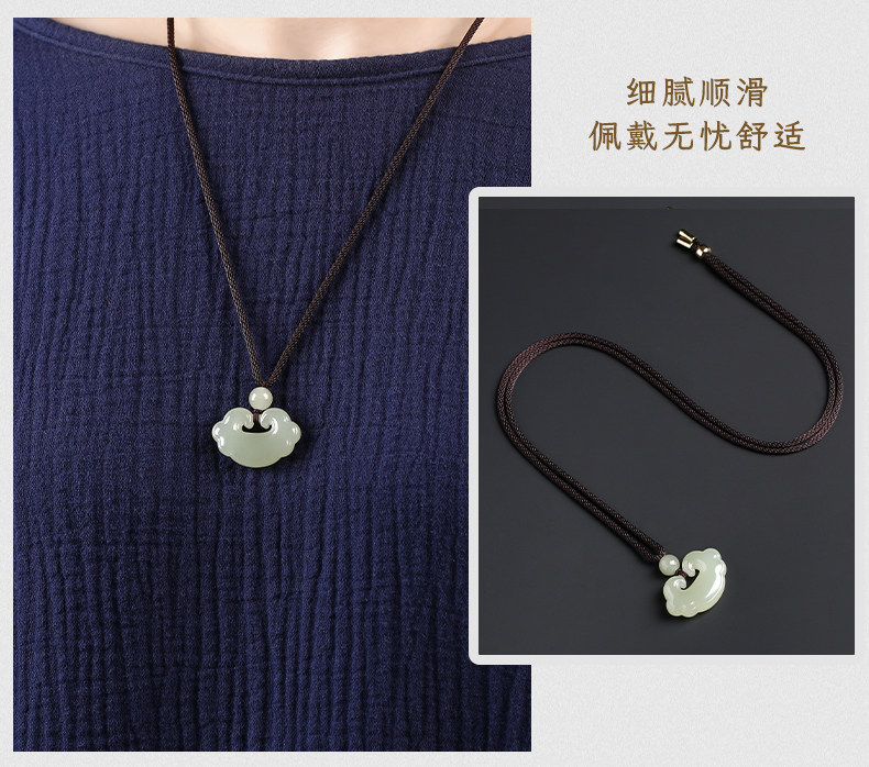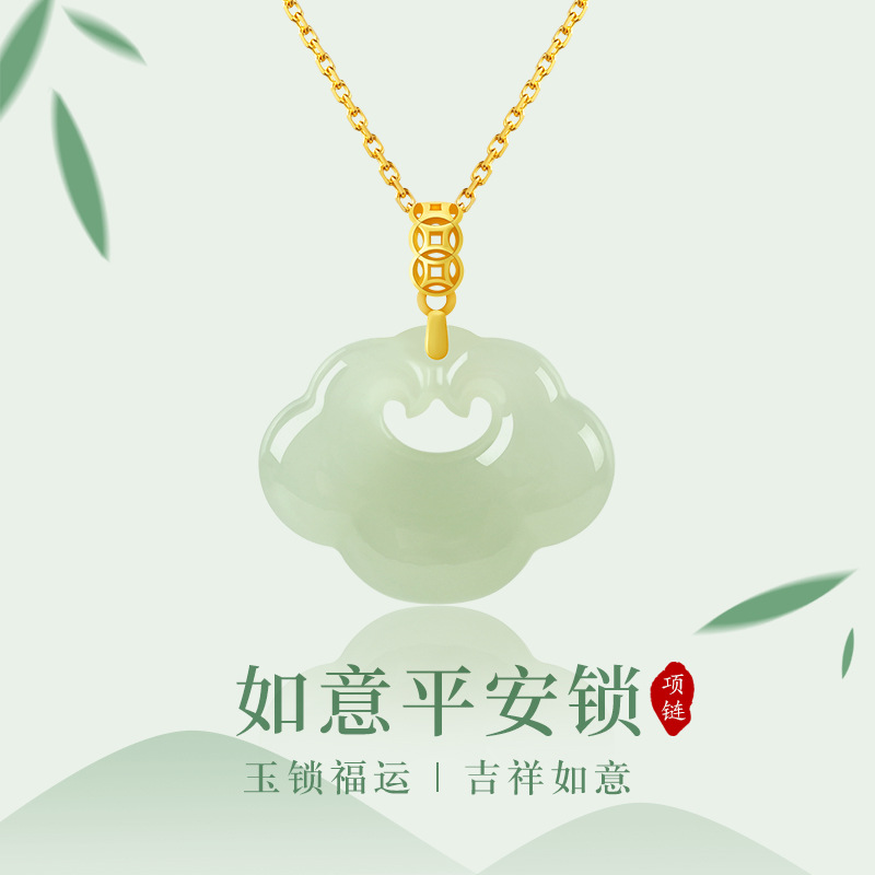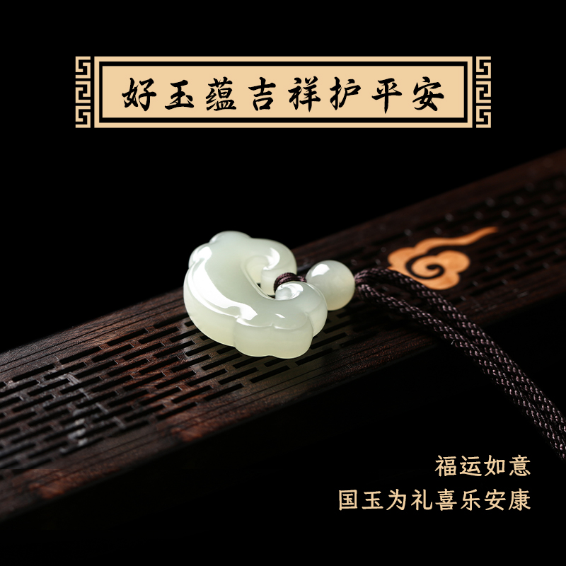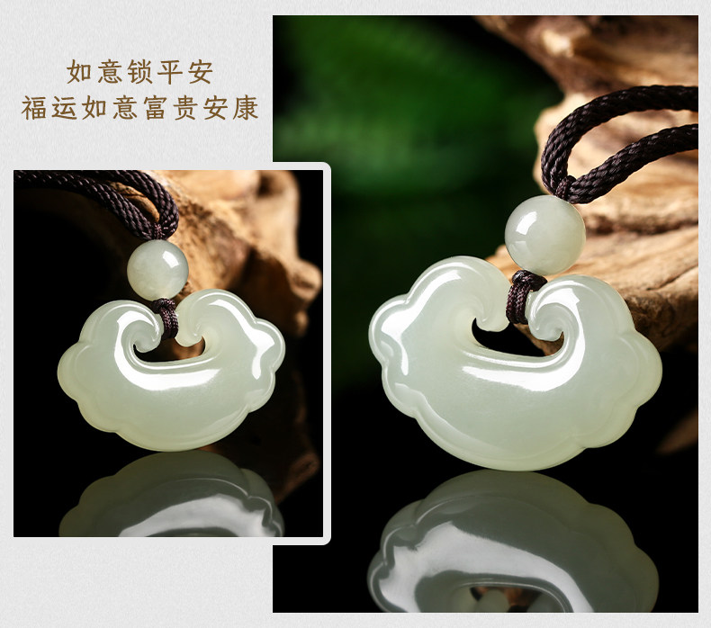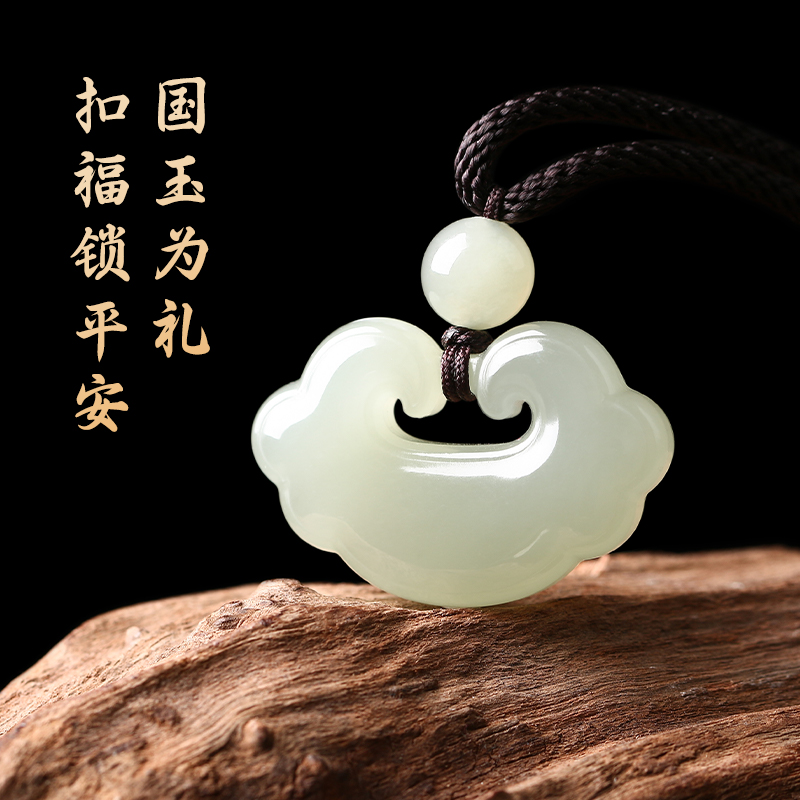 保真和田玉平安锁祥云吊坠儿童玉佩玉石玉坠如意项链宝宝生日礼物