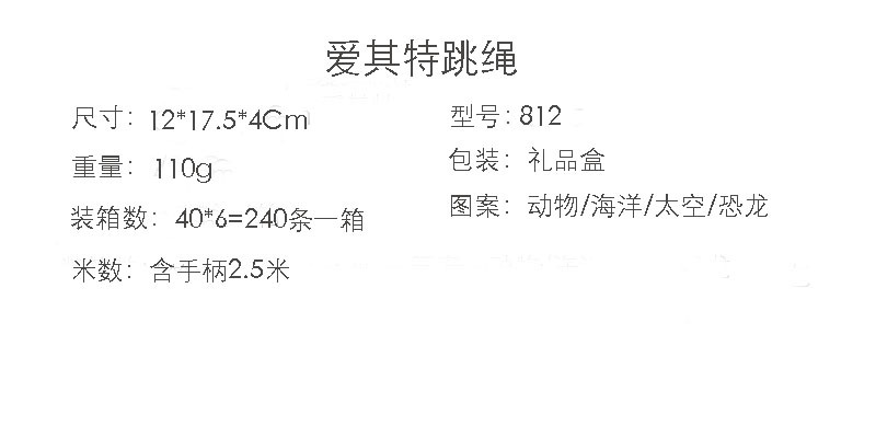 可爱卡通儿童跳绳2.5米 小学生成人专用健身运动可调节训练绳批发