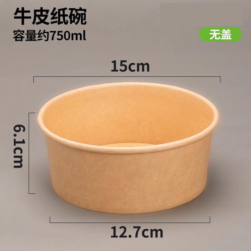 牛皮纸碗定制 圆形一次性纸碗 外卖沙拉轻食打包盒一次性泡面碗