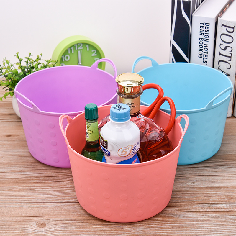 家用收纳筐塑料圆形收纳篮厨房浴室置物篮床头杂物整理收纳筐批发