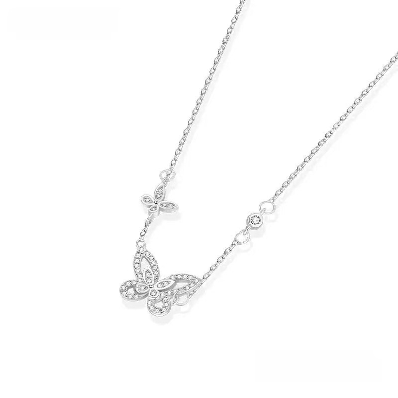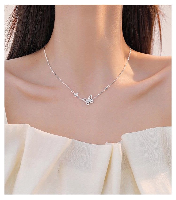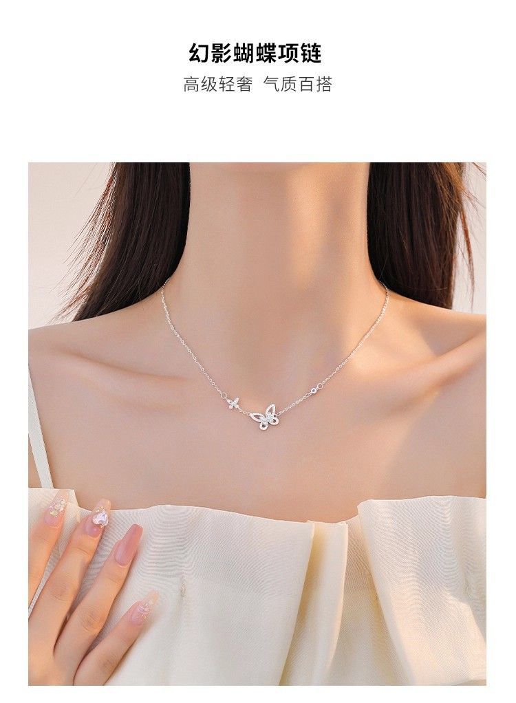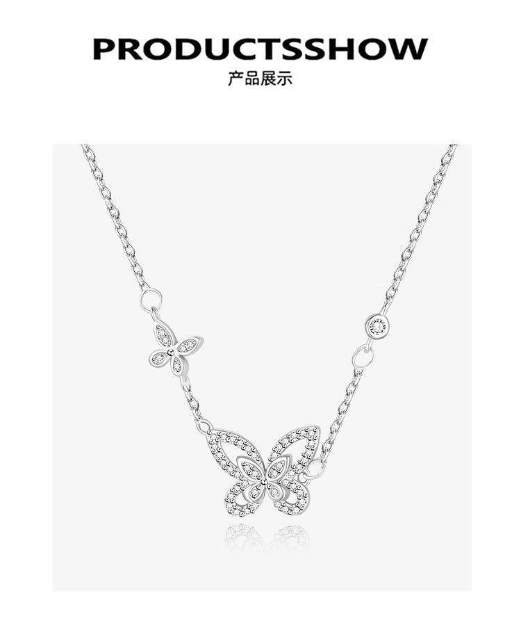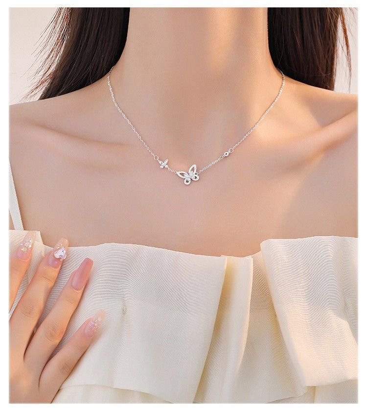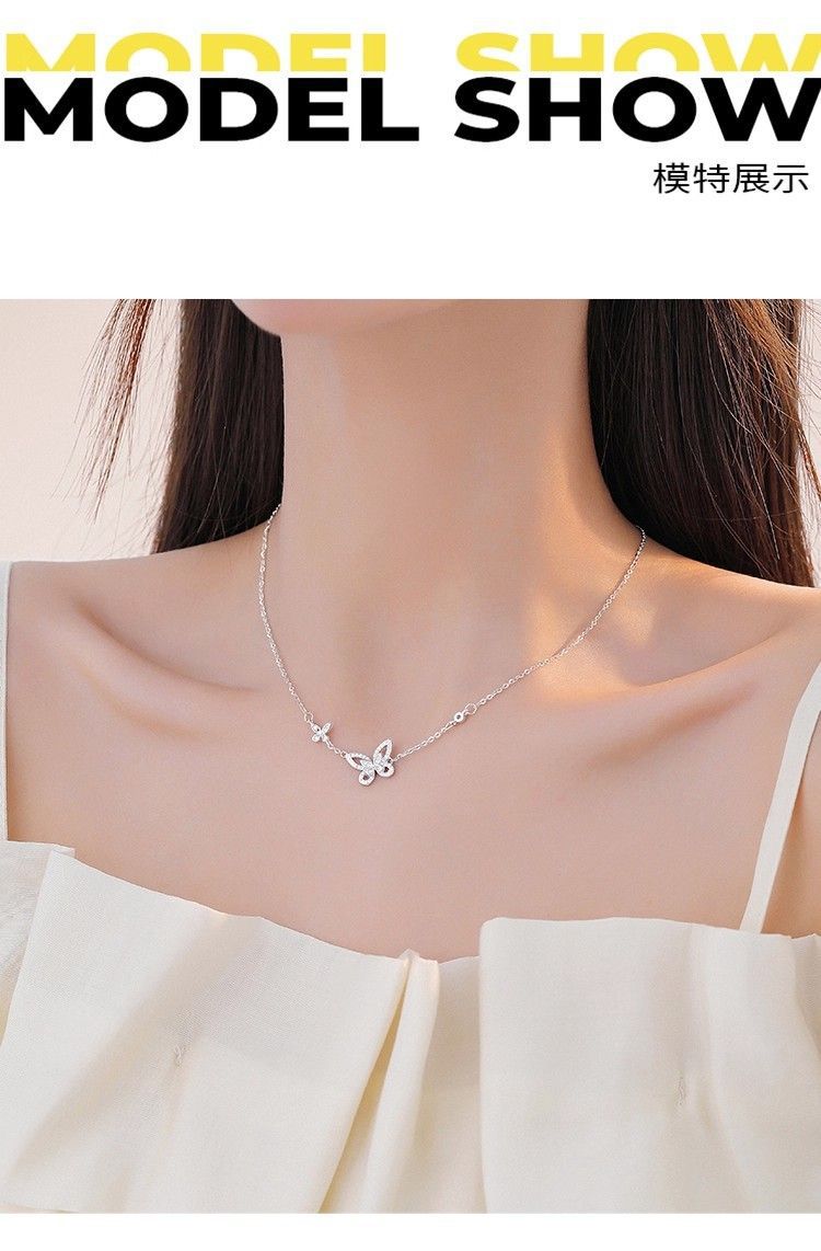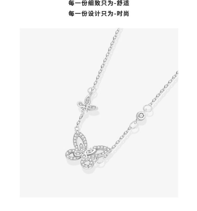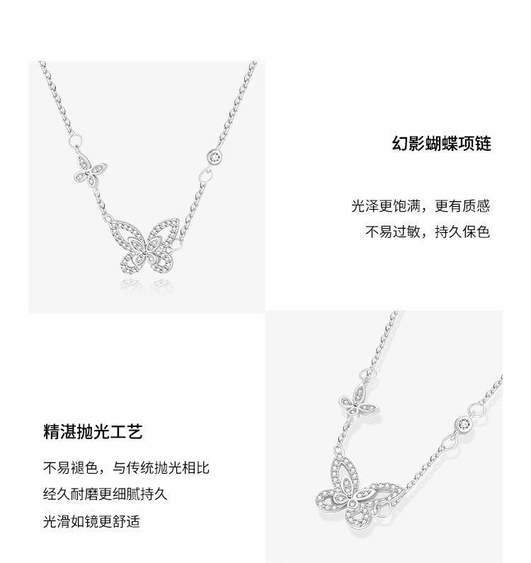 S925纯银幻影蝴蝶项链女轻奢小众高级感时尚气质闪钻百搭锁骨链
