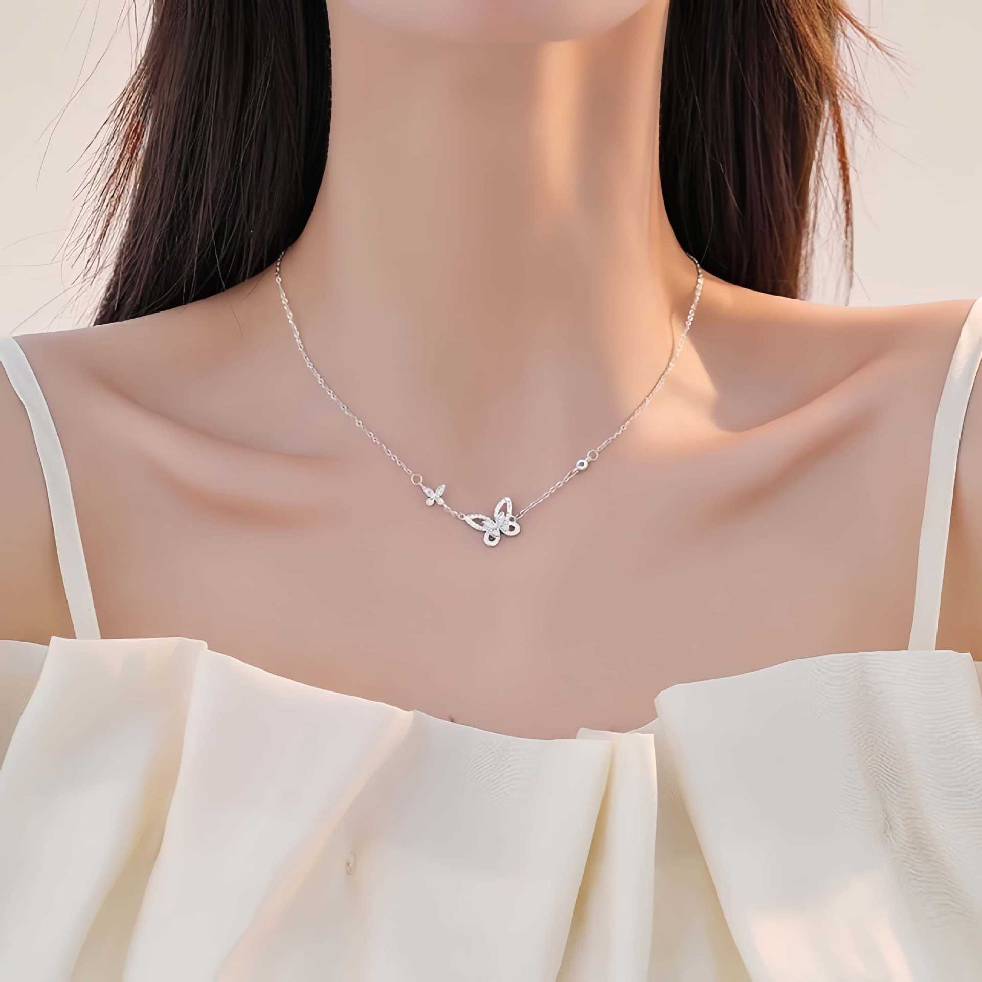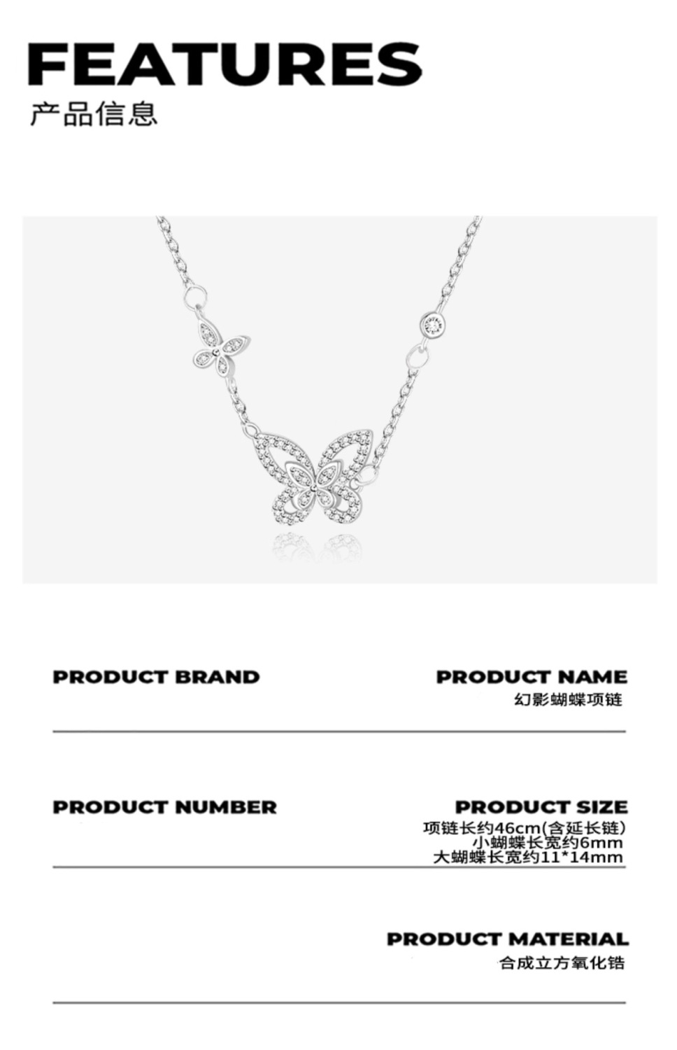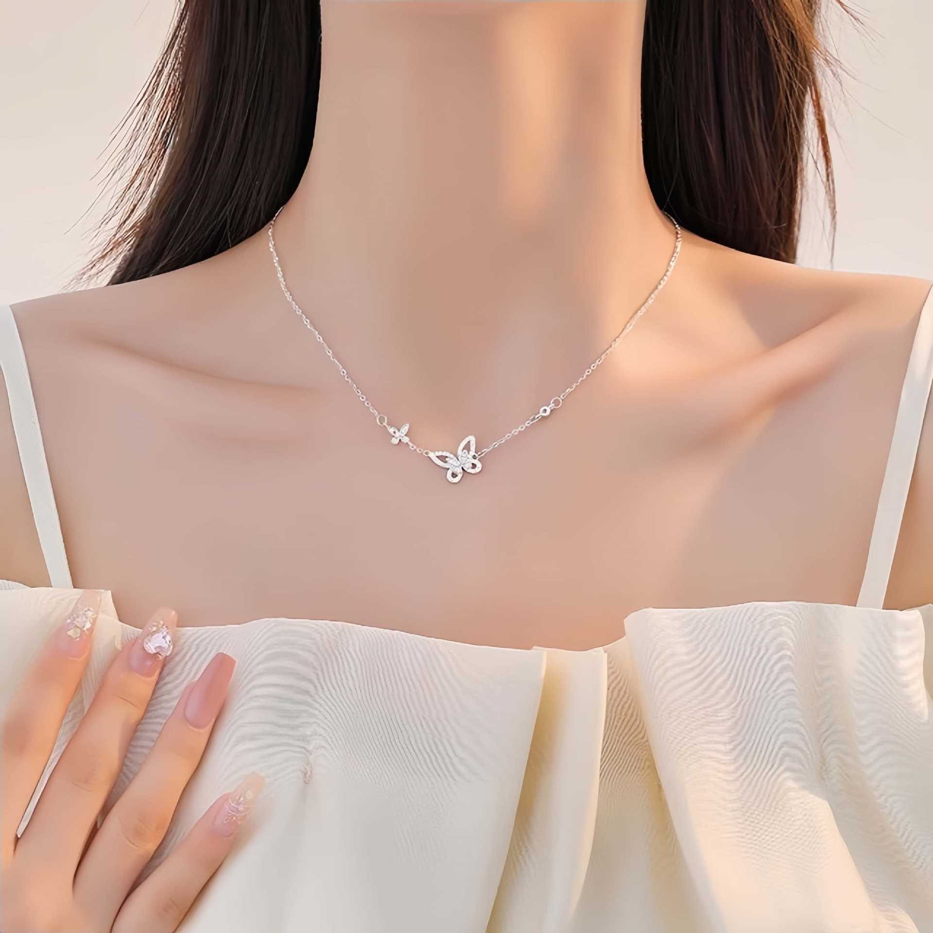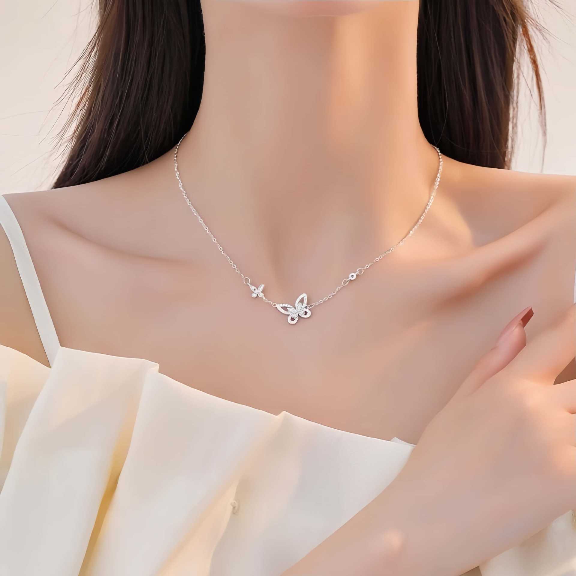 S925纯银幻影蝴蝶项链女轻奢小众高级感时尚气质闪钻百搭锁骨链