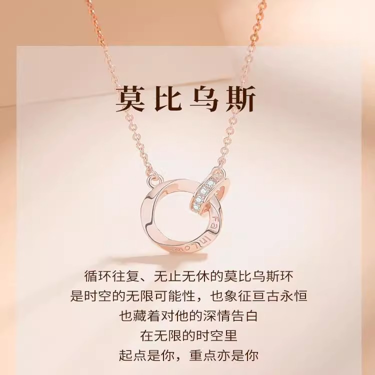 莫比乌斯环百搭项链女生轻奢小众高级感双环锁骨链2025年新款