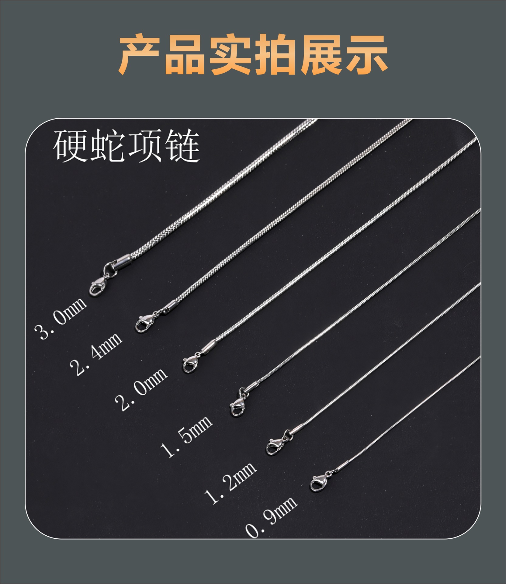 | 长度45CM长+5CM(圆蛇链) | USD $0.2 | 99990 piece available |
