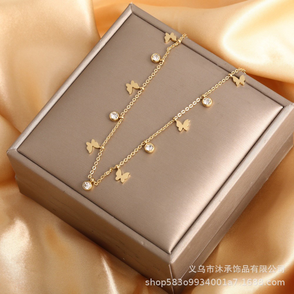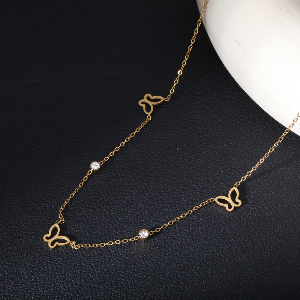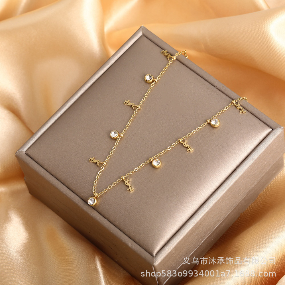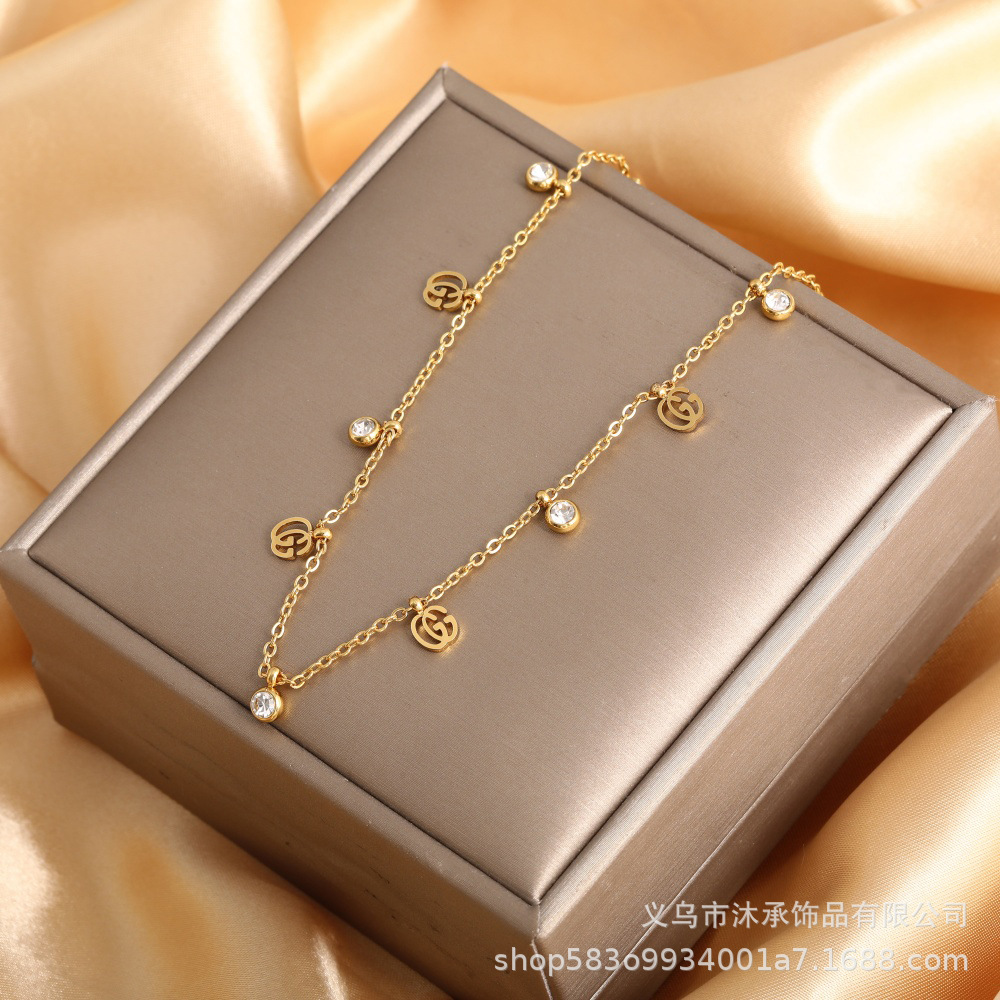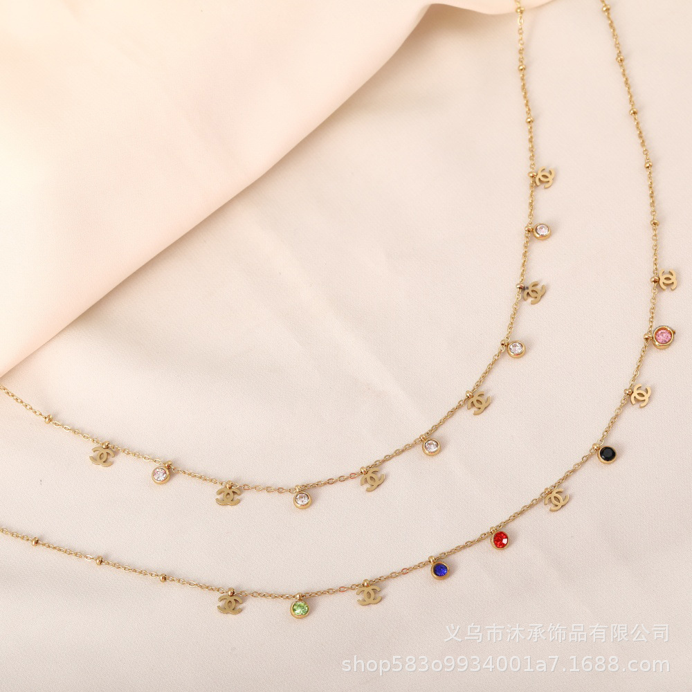欧美跨境热卖不锈钢锆石项链 小众设计感ins风时尚百搭锁骨链批发