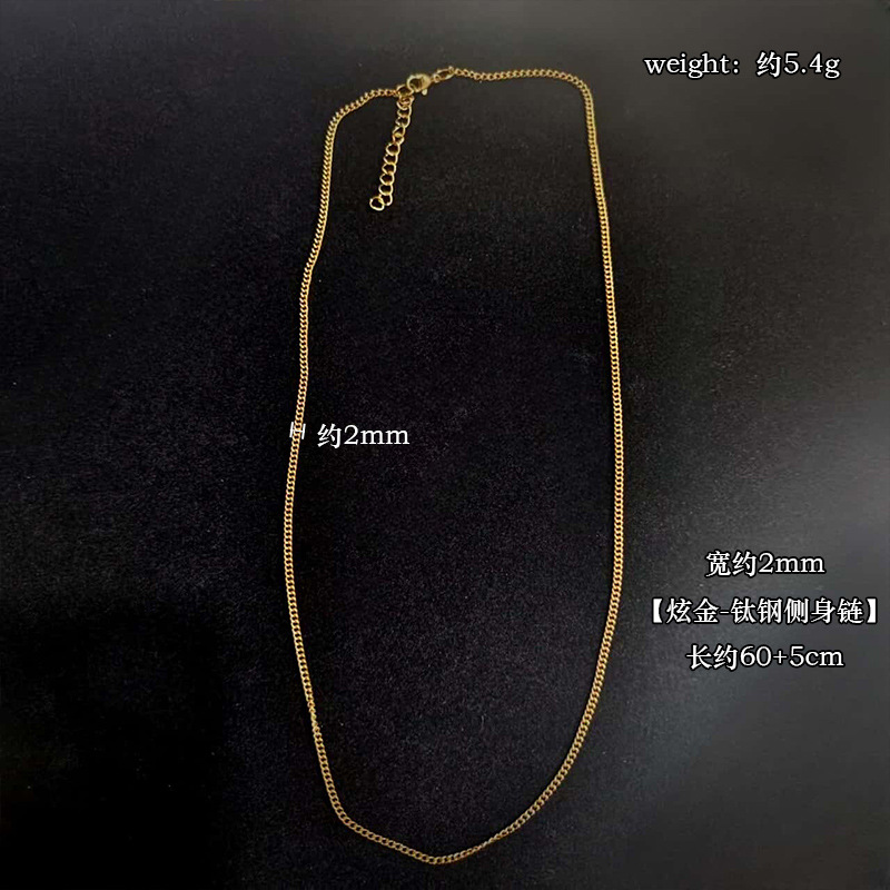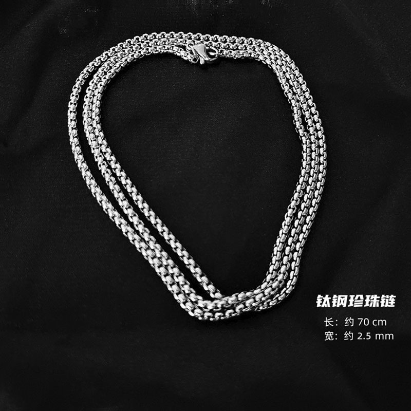 简约素链钛钢项链珍珠链十字链圆珠链百搭基础搭配链条不掉色叠戴