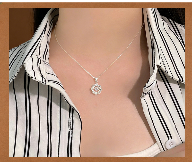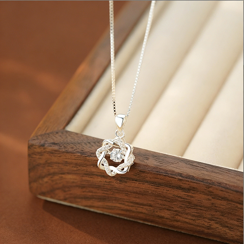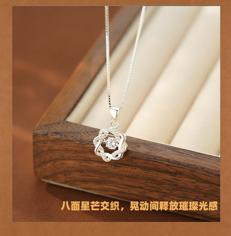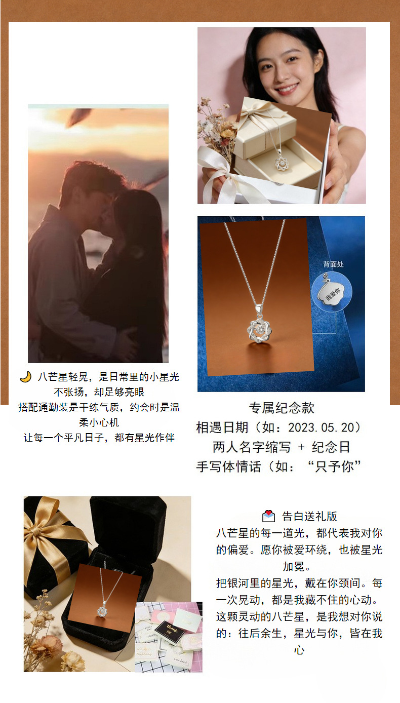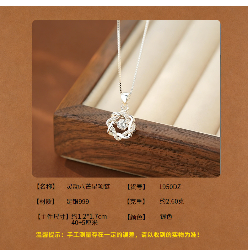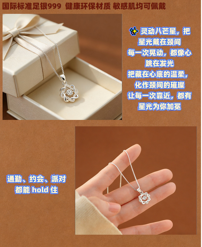 S999足银八芒星灵动锆石项链女轻奢高级感气质女生百搭锁骨链代发
