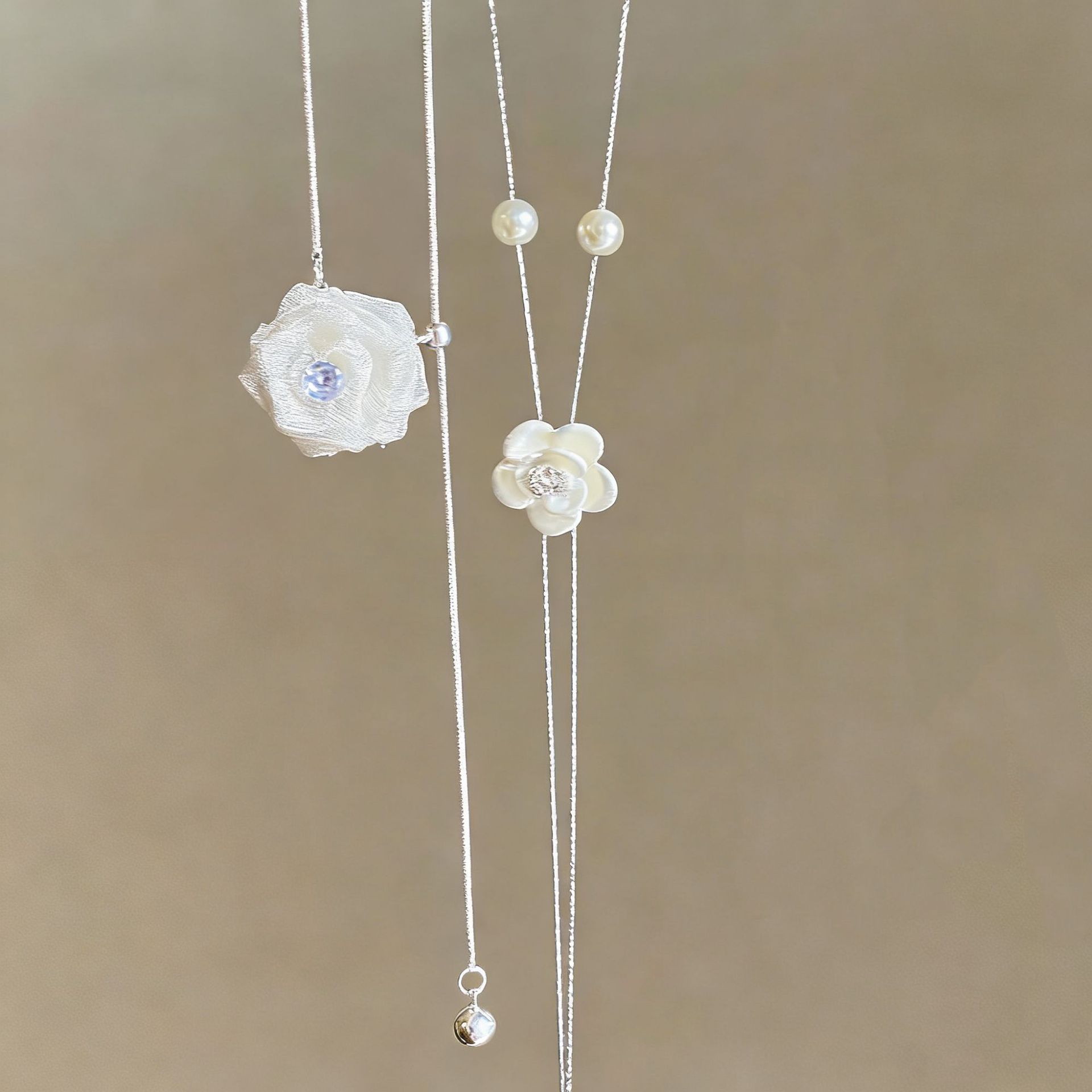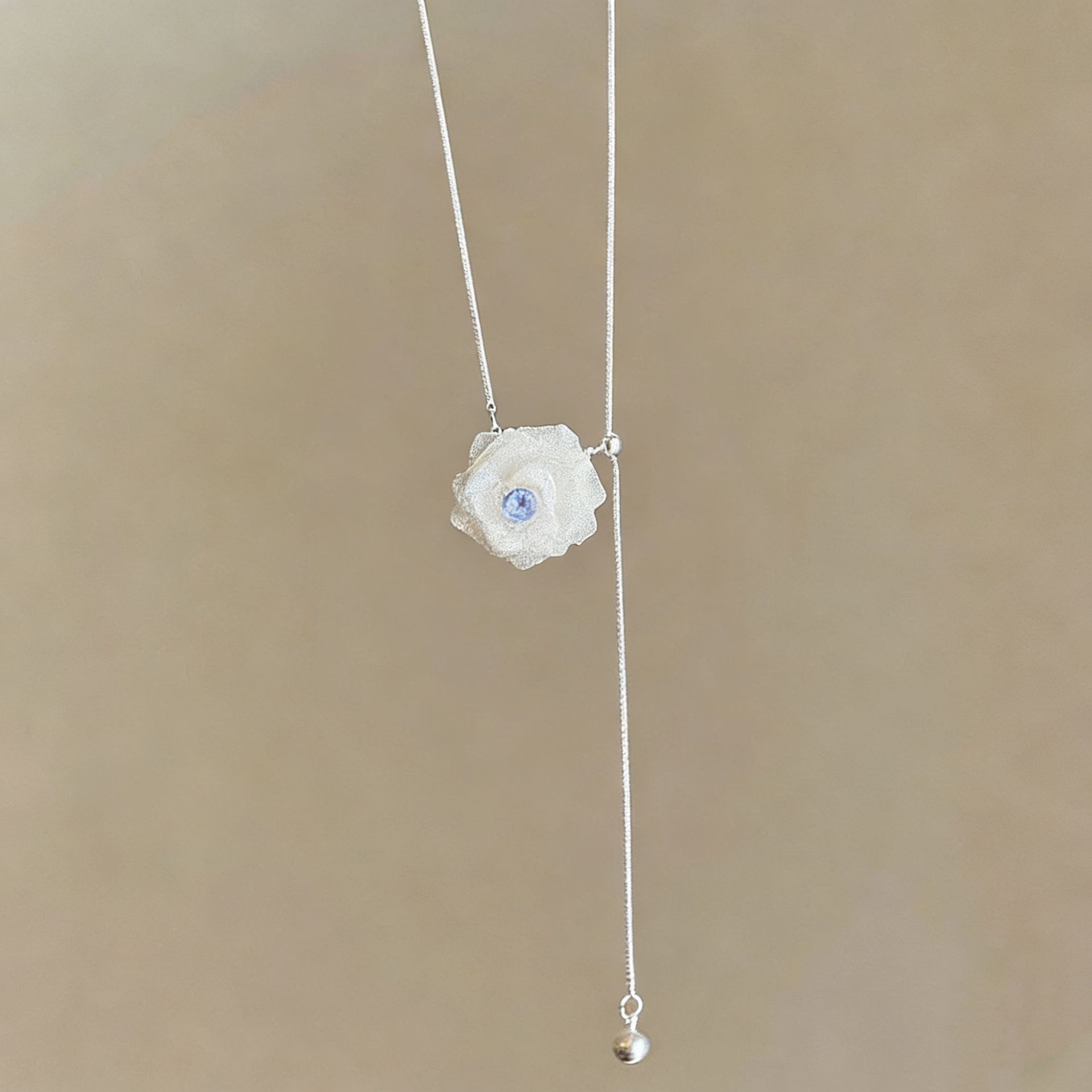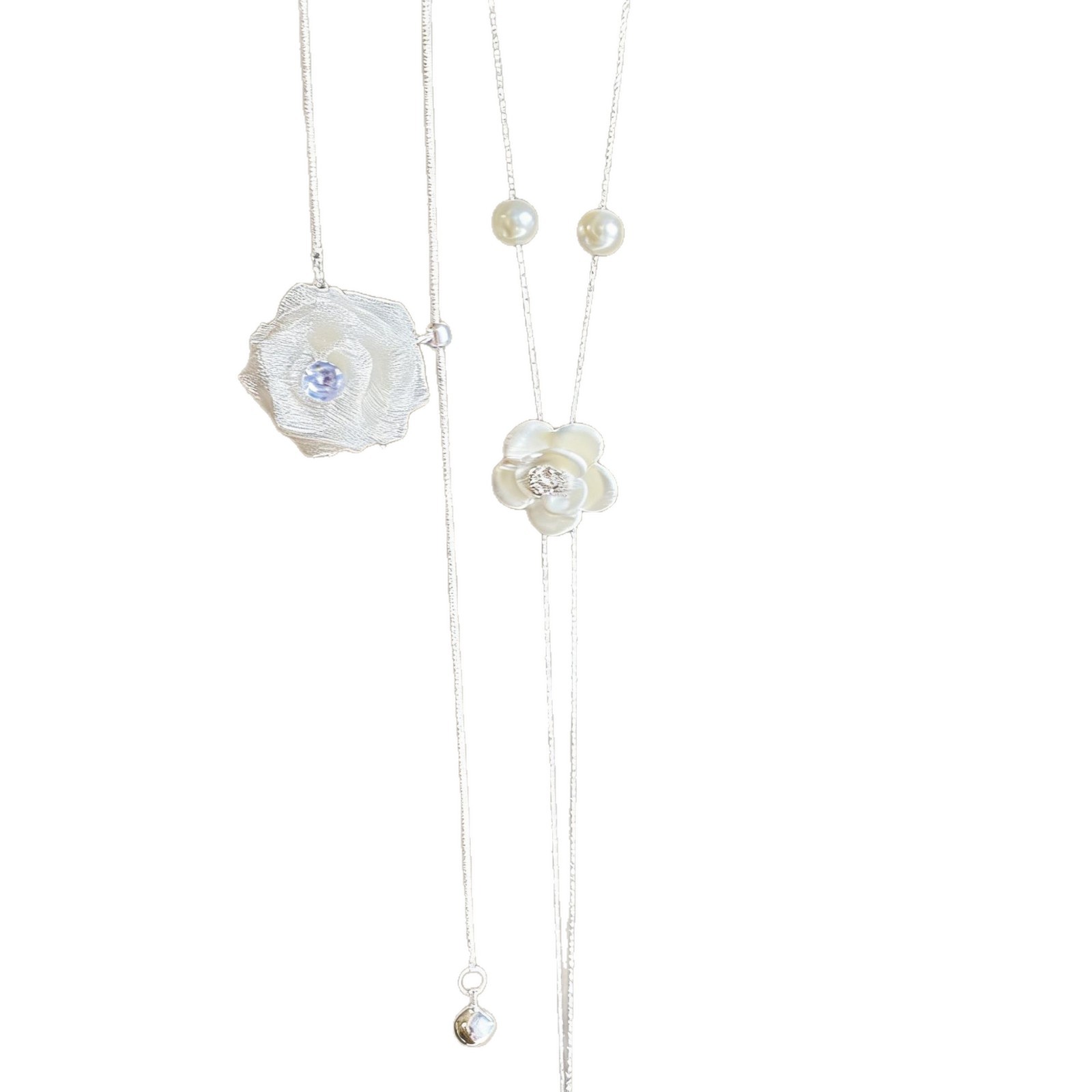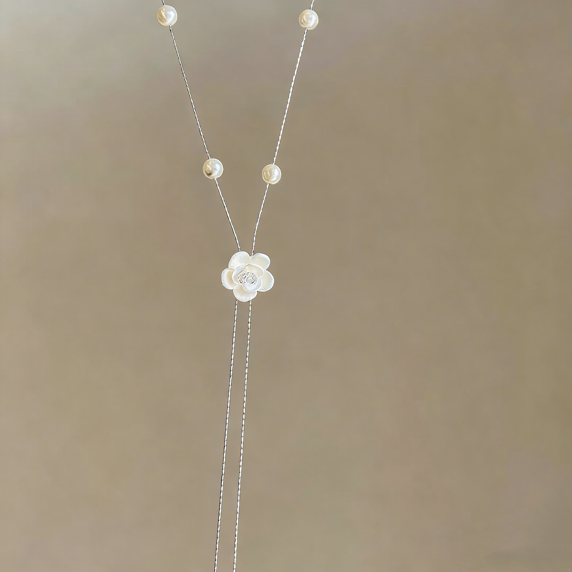 法式珍珠山茶花抽拉项链女小众轻奢高级感毛衣链秋冬长款百搭配饰