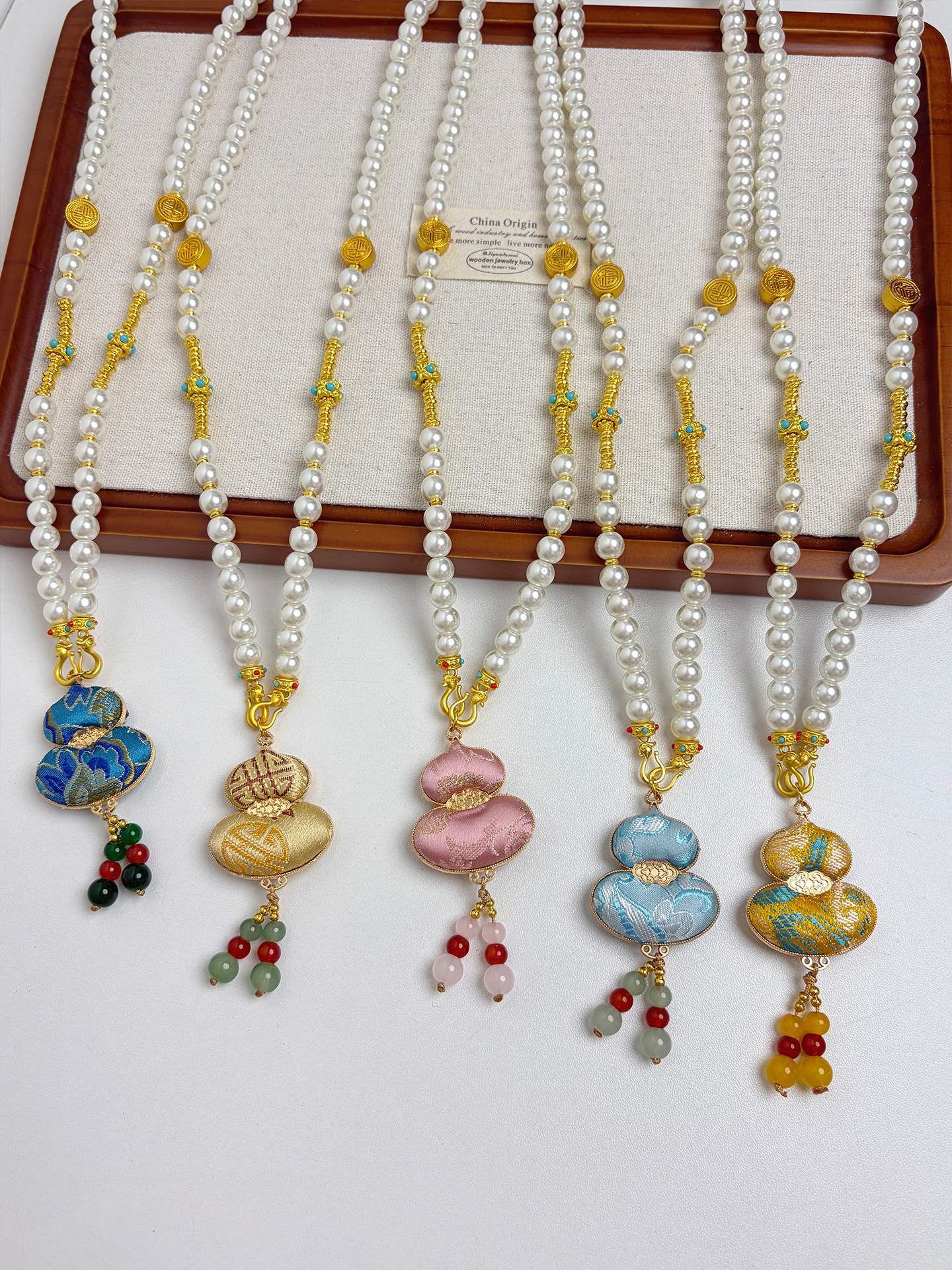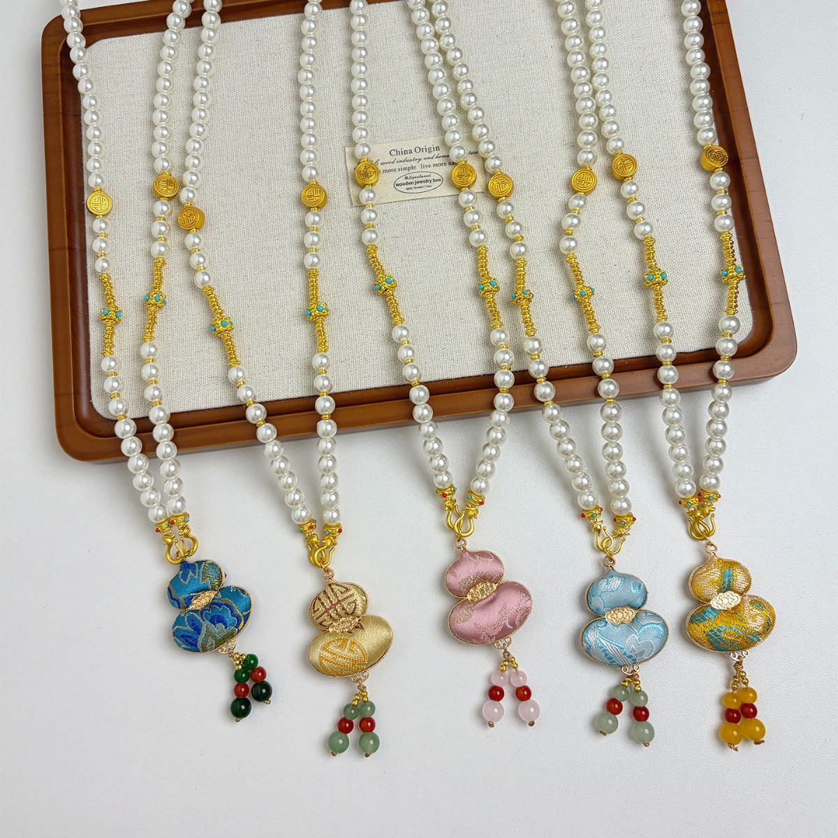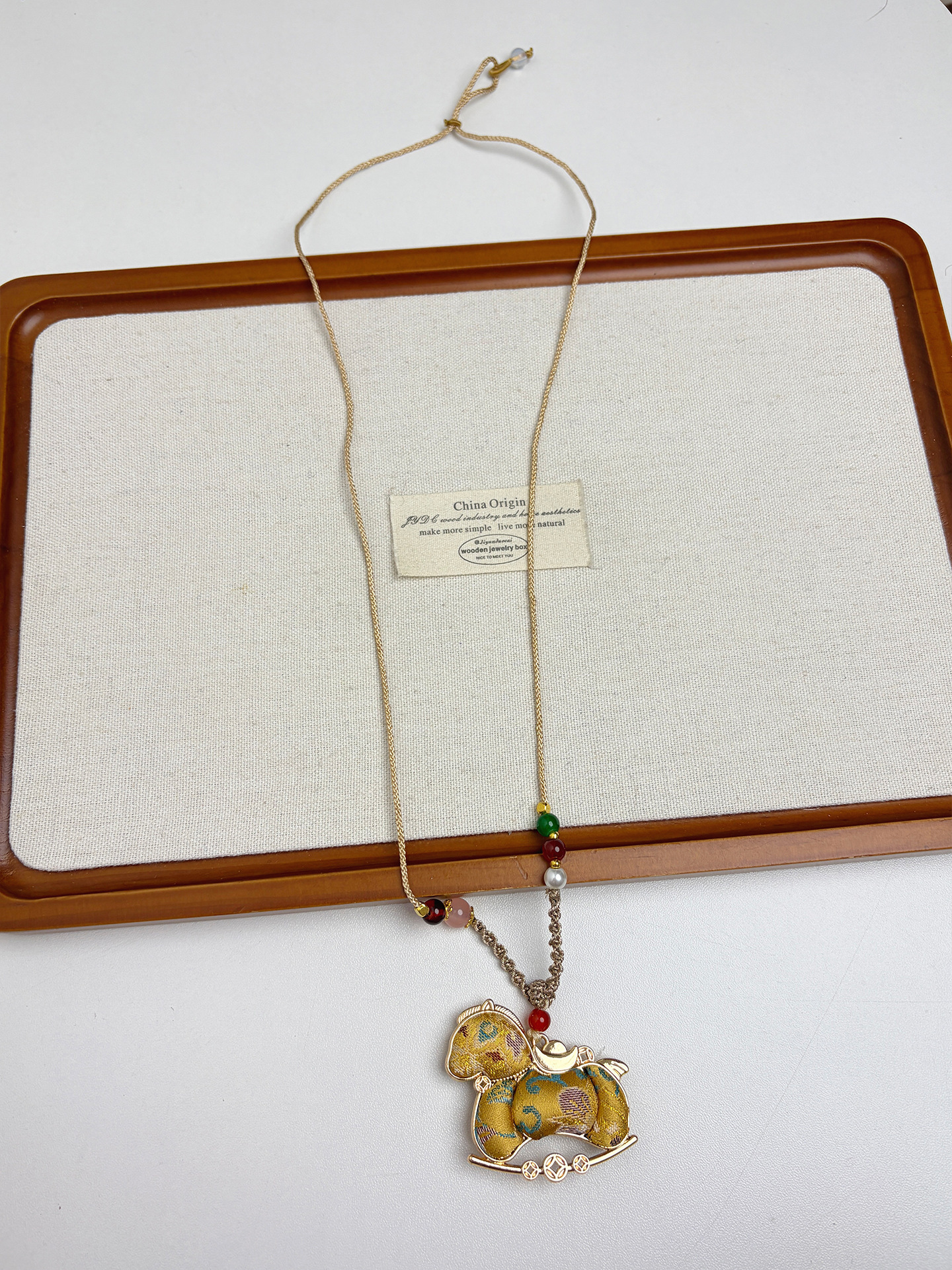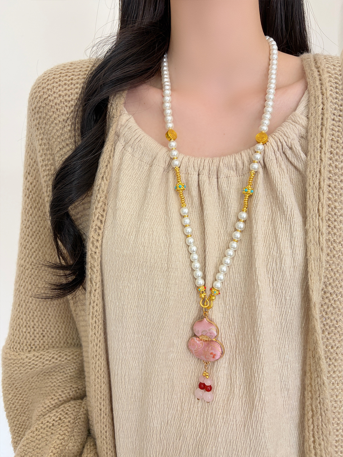 新中式民族风宋锦葫芦吊坠项链时尚串珠长毛衣链小众设计感配饰女