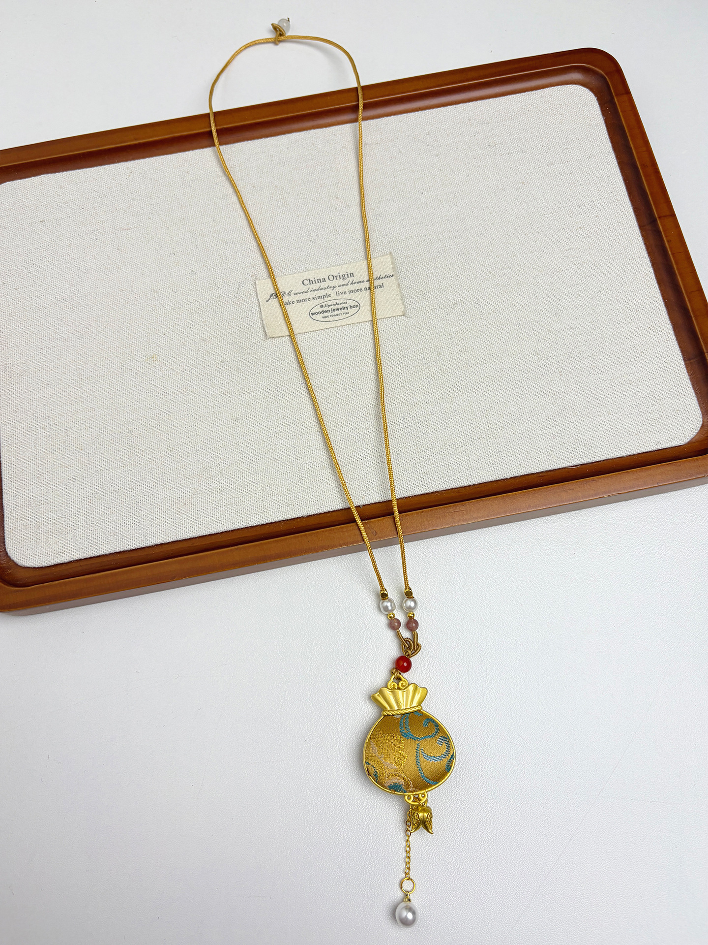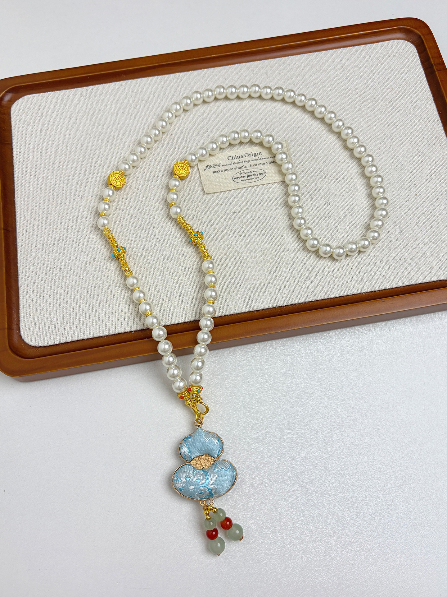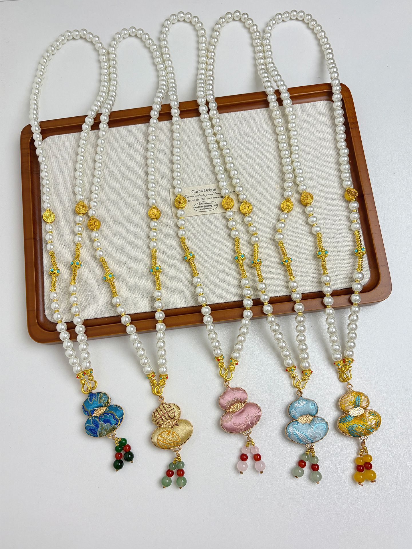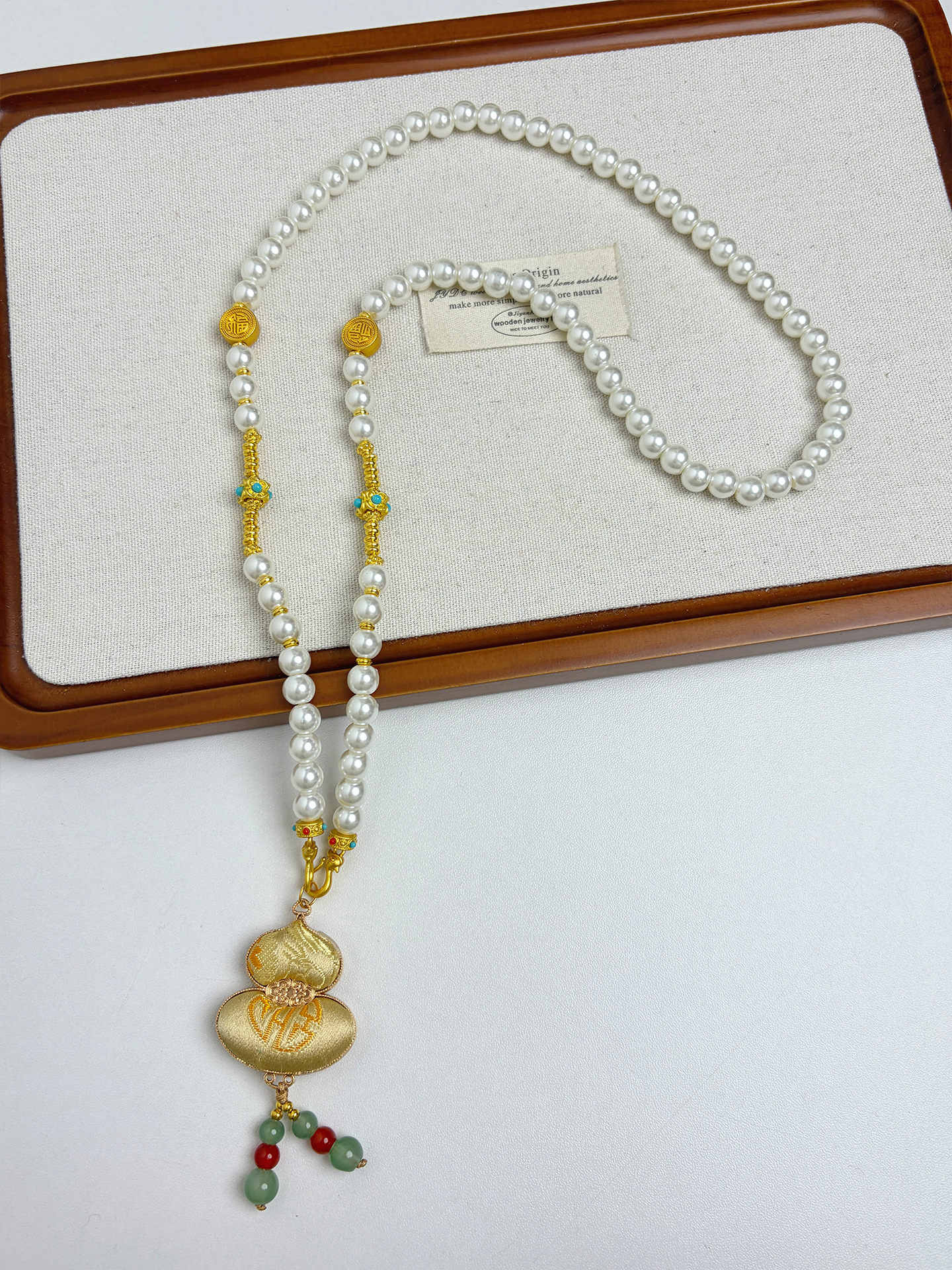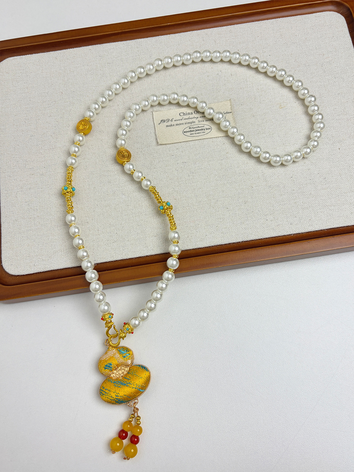 新中式民族风宋锦葫芦吊坠项链时尚串珠长毛衣链小众设计感配饰女