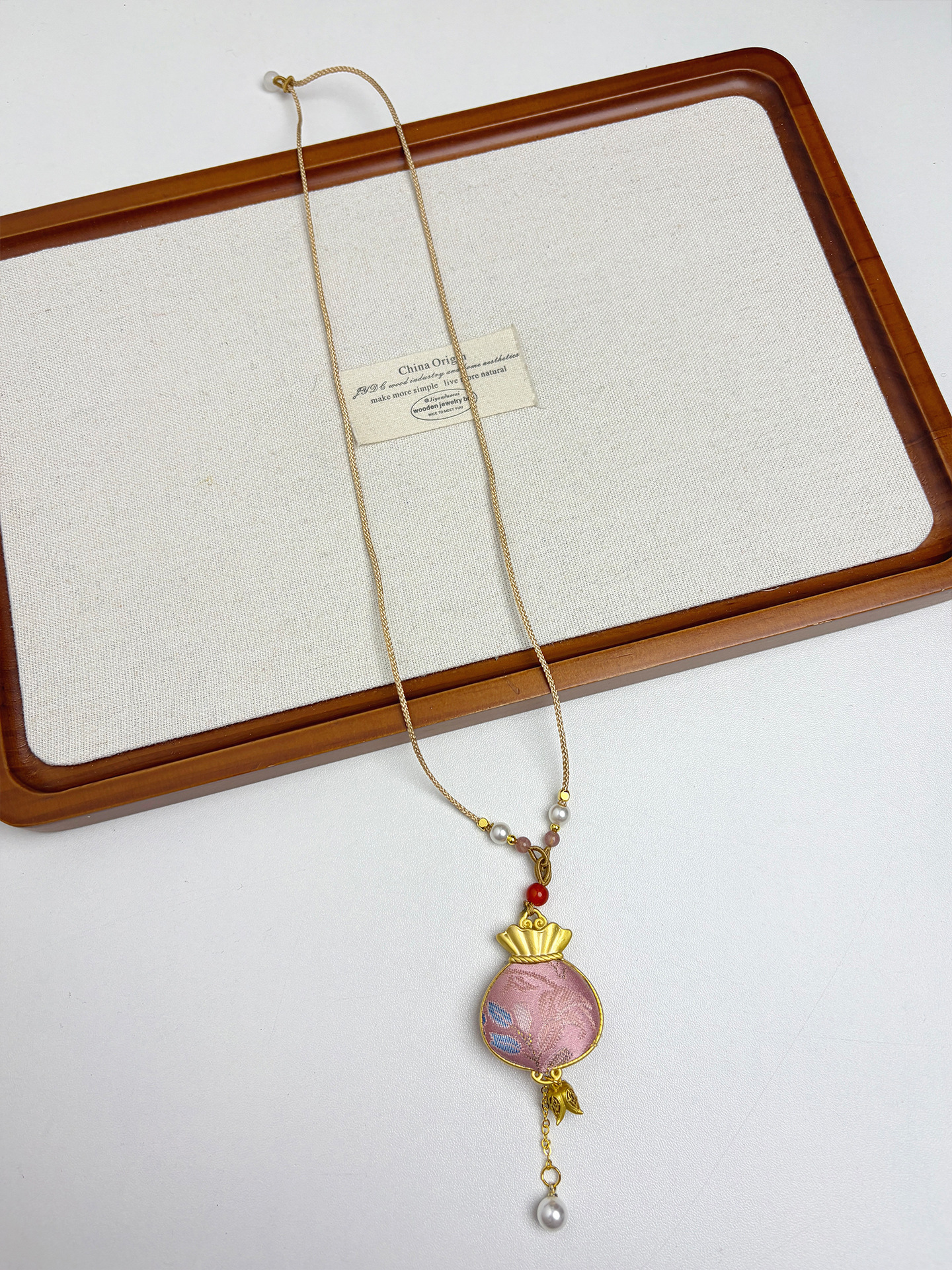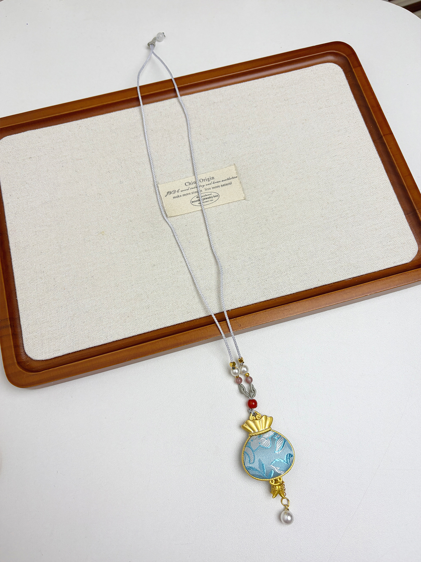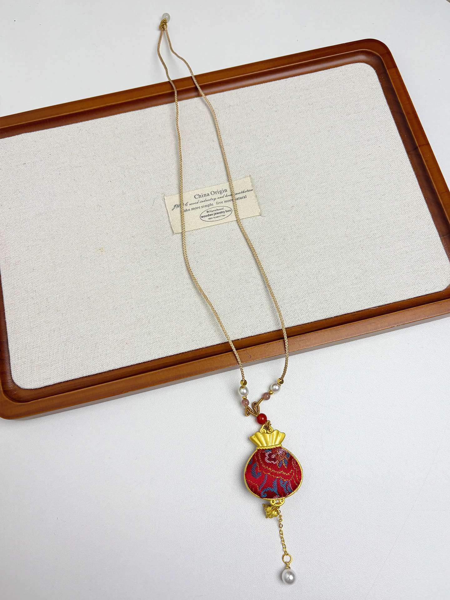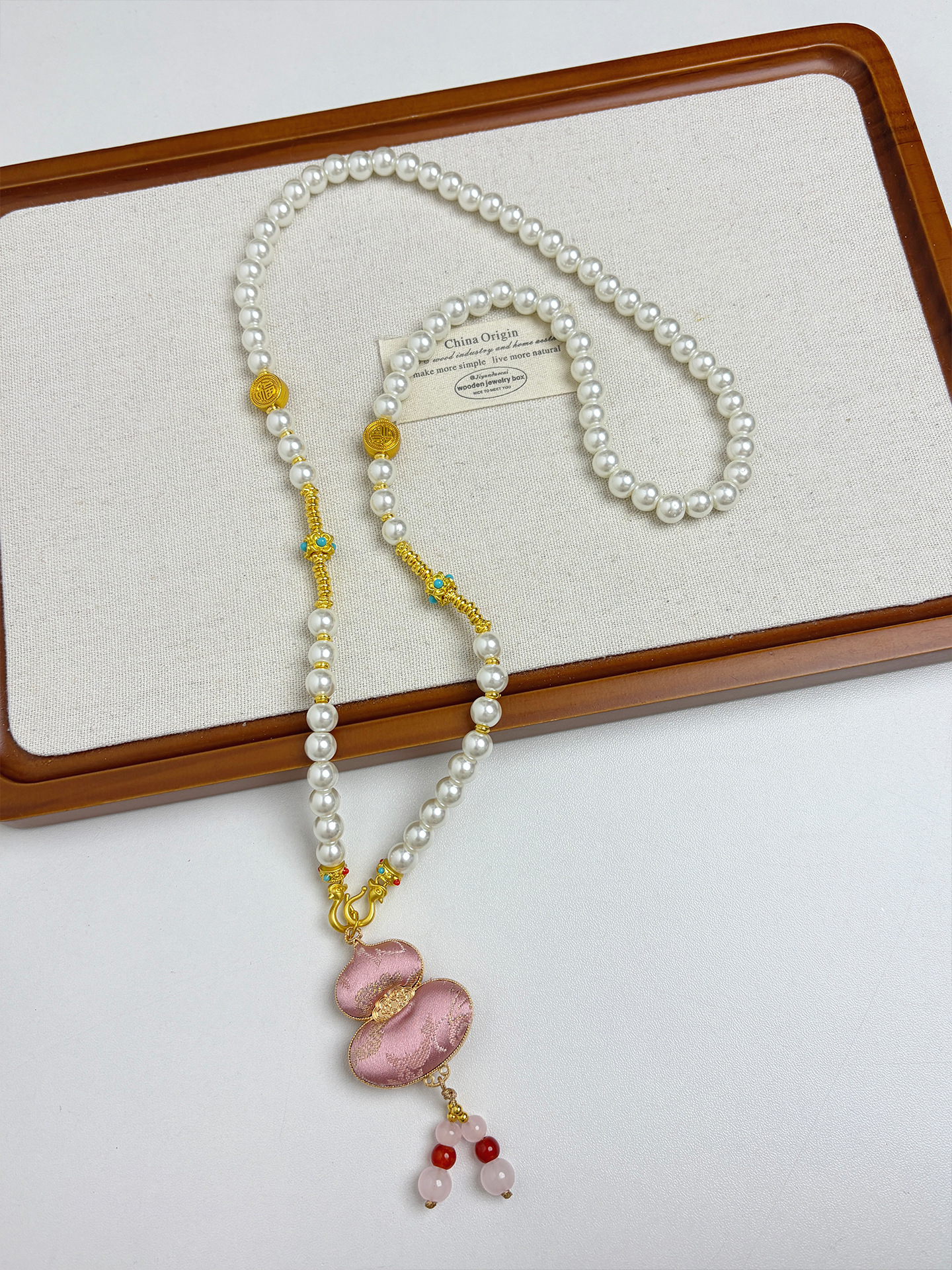 新中式民族风宋锦葫芦吊坠项链时尚串珠长毛衣链小众设计感配饰女