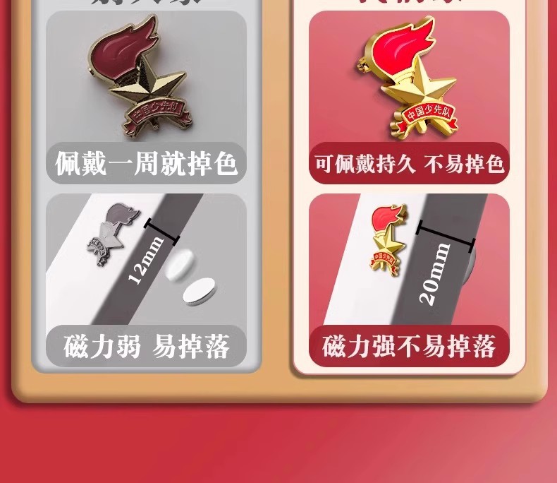 少先队员队徽别针款磁扣设计正版强力磁铁强磁磁吸中国先锋队徽章