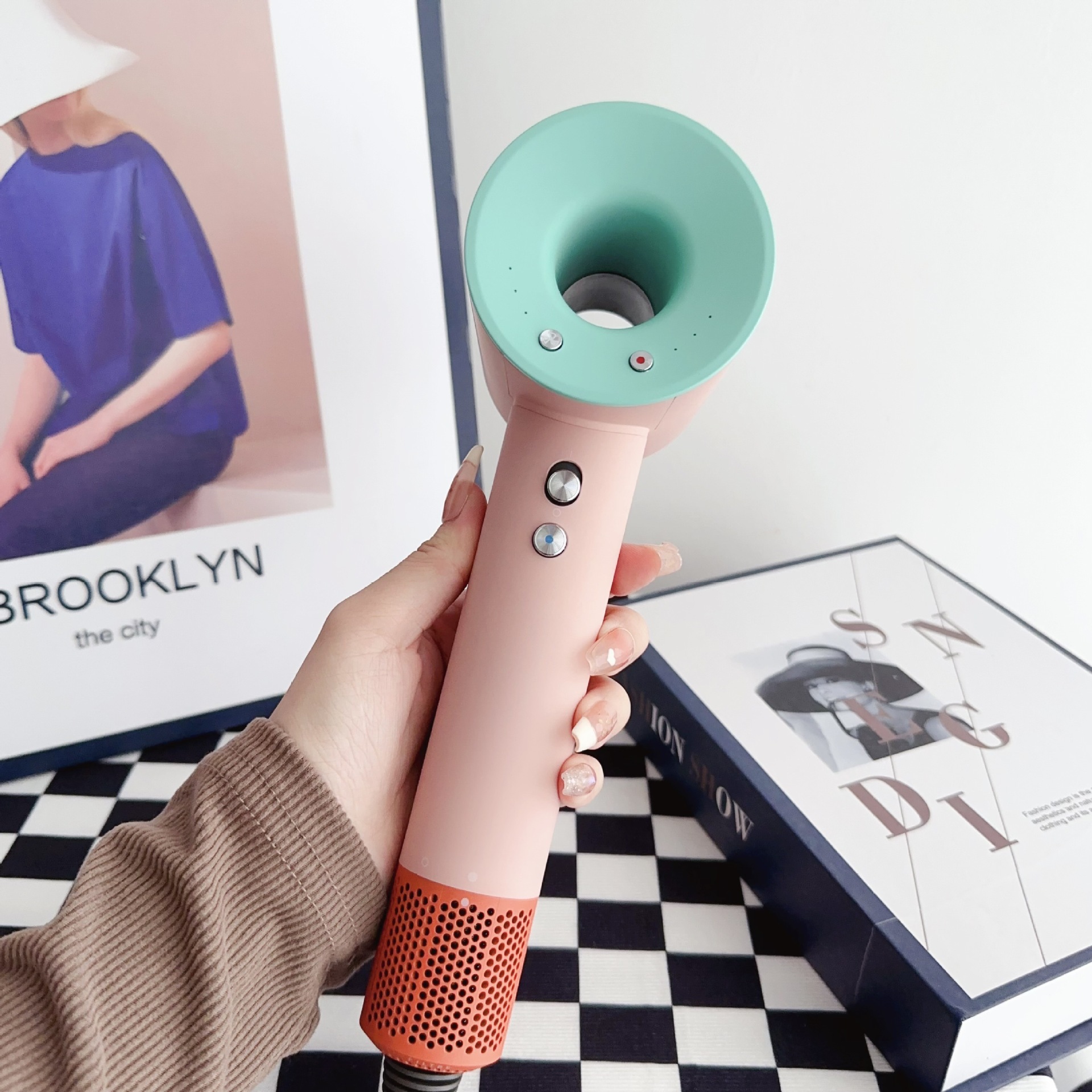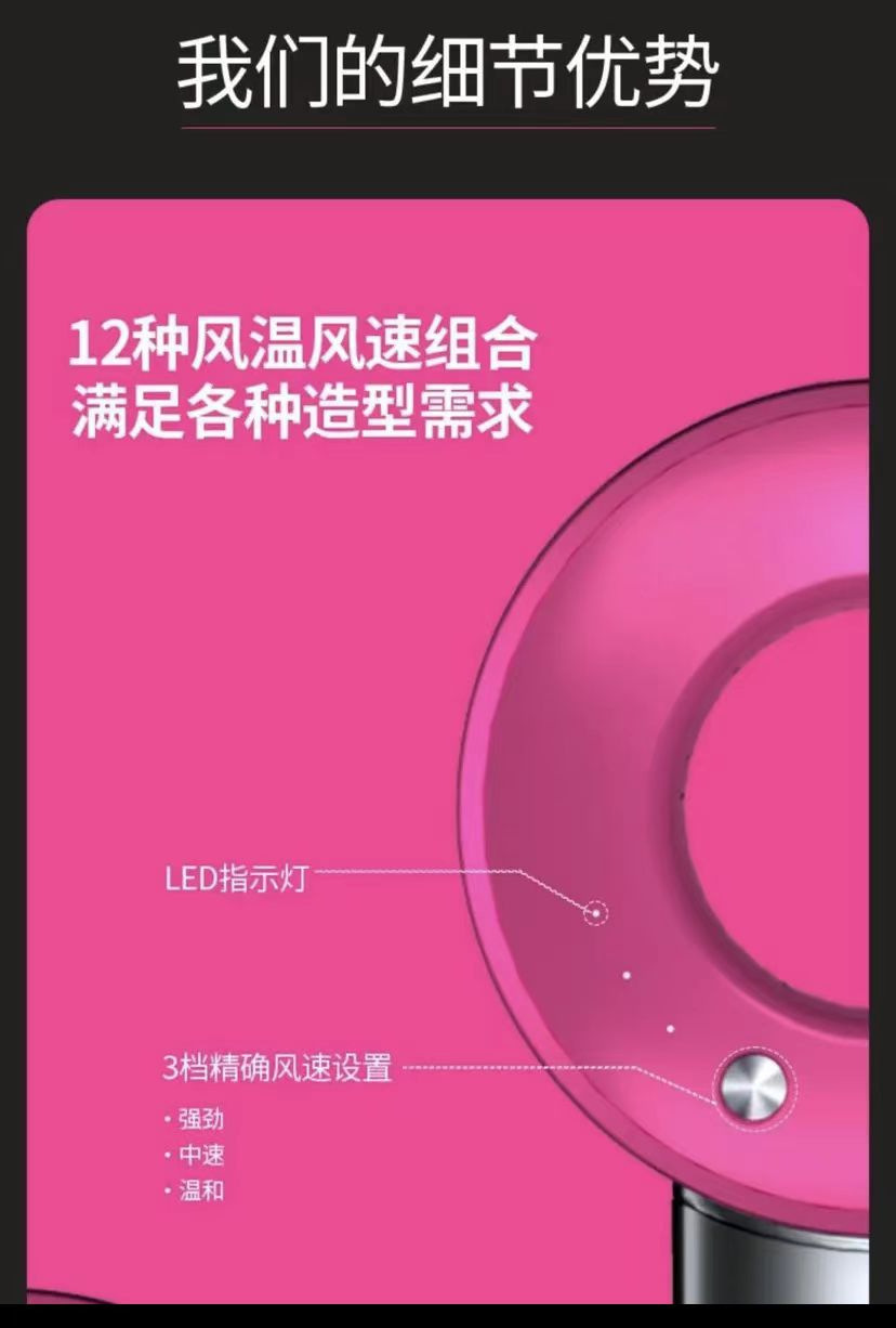 抖音爆款高速大功率无叶吹风机华强北某森负离子五风嘴套装吹风筒