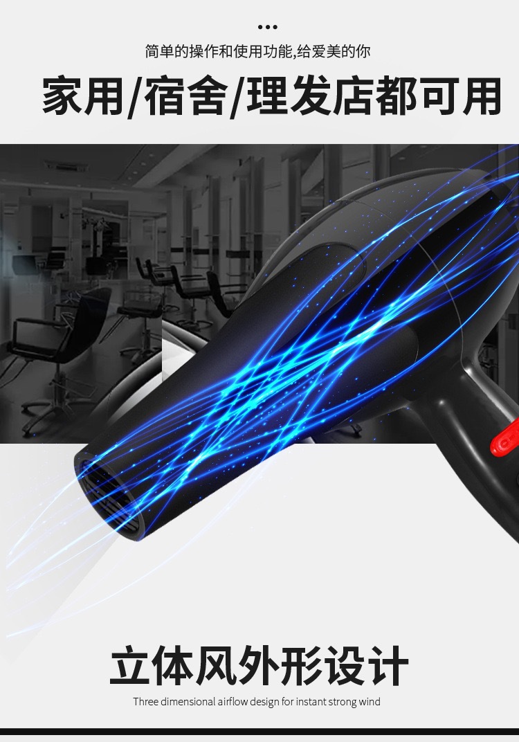 跨境家用电吹风冷热风大风力吹风机发廊酒店三档吹风筒批发