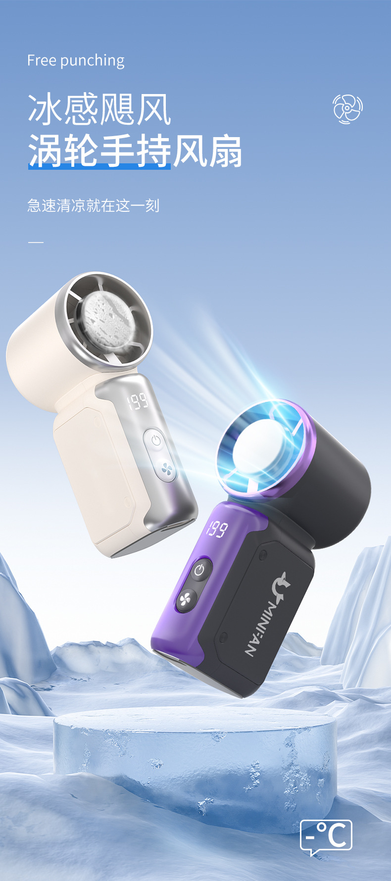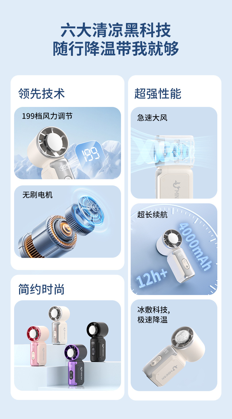 高速迷你手持风扇USB充电持久续航涡轮暴力便携式户外冰敷小风扇