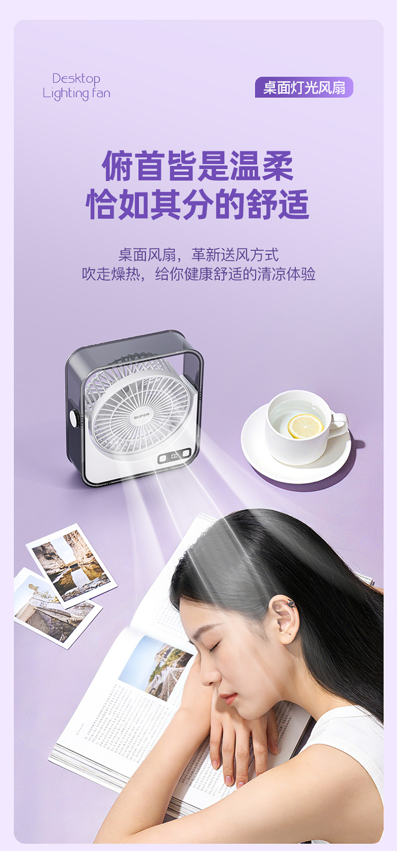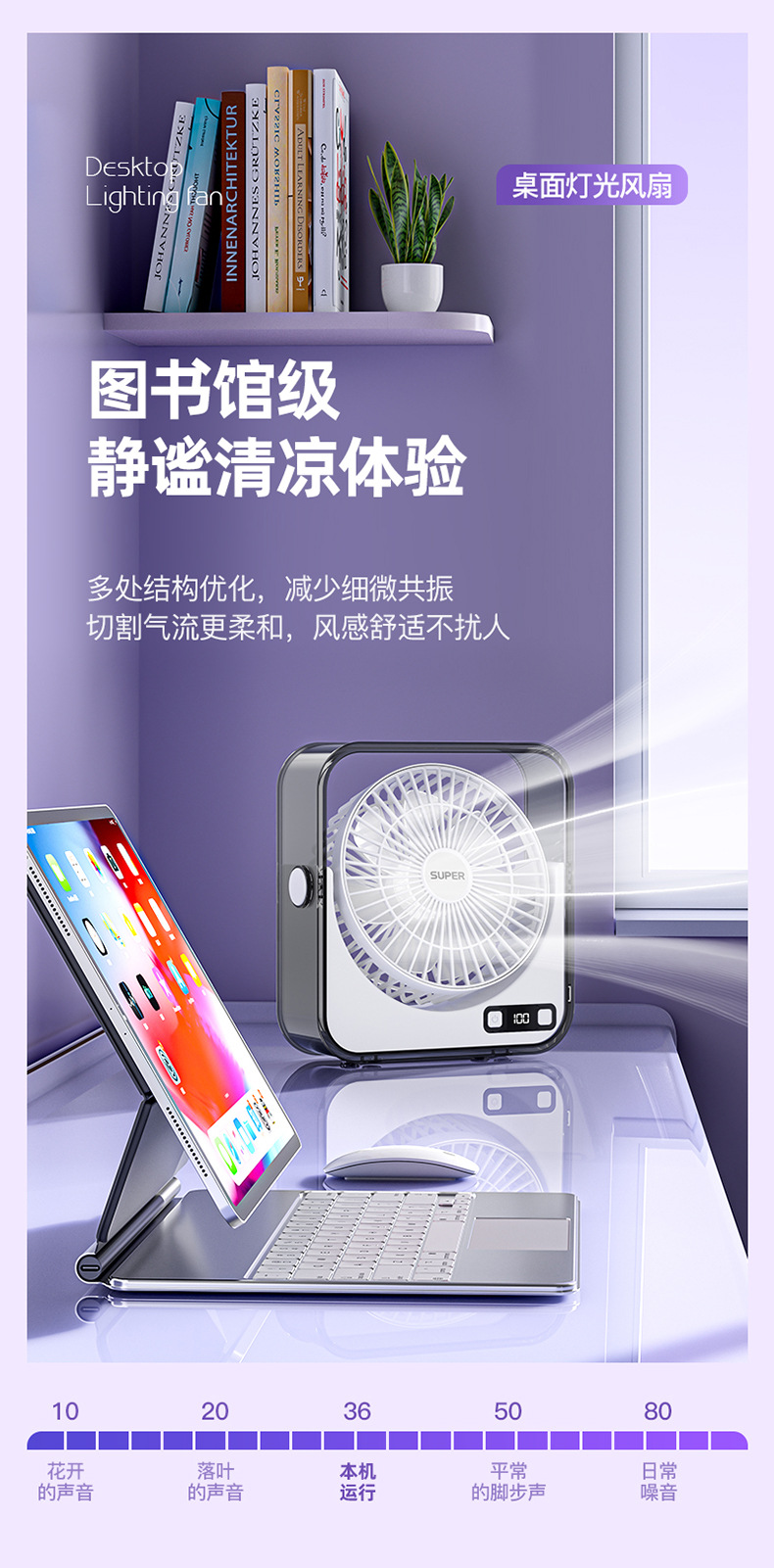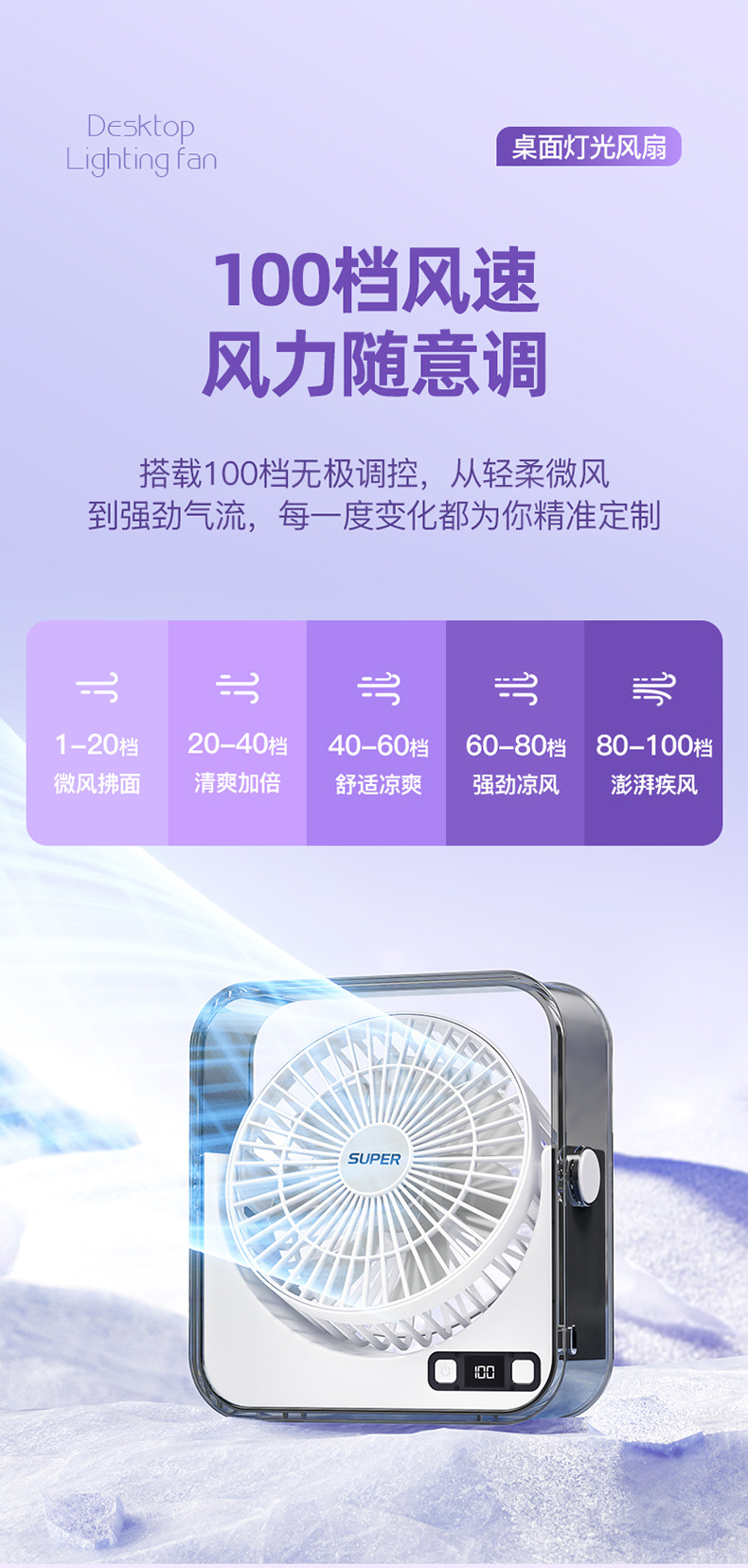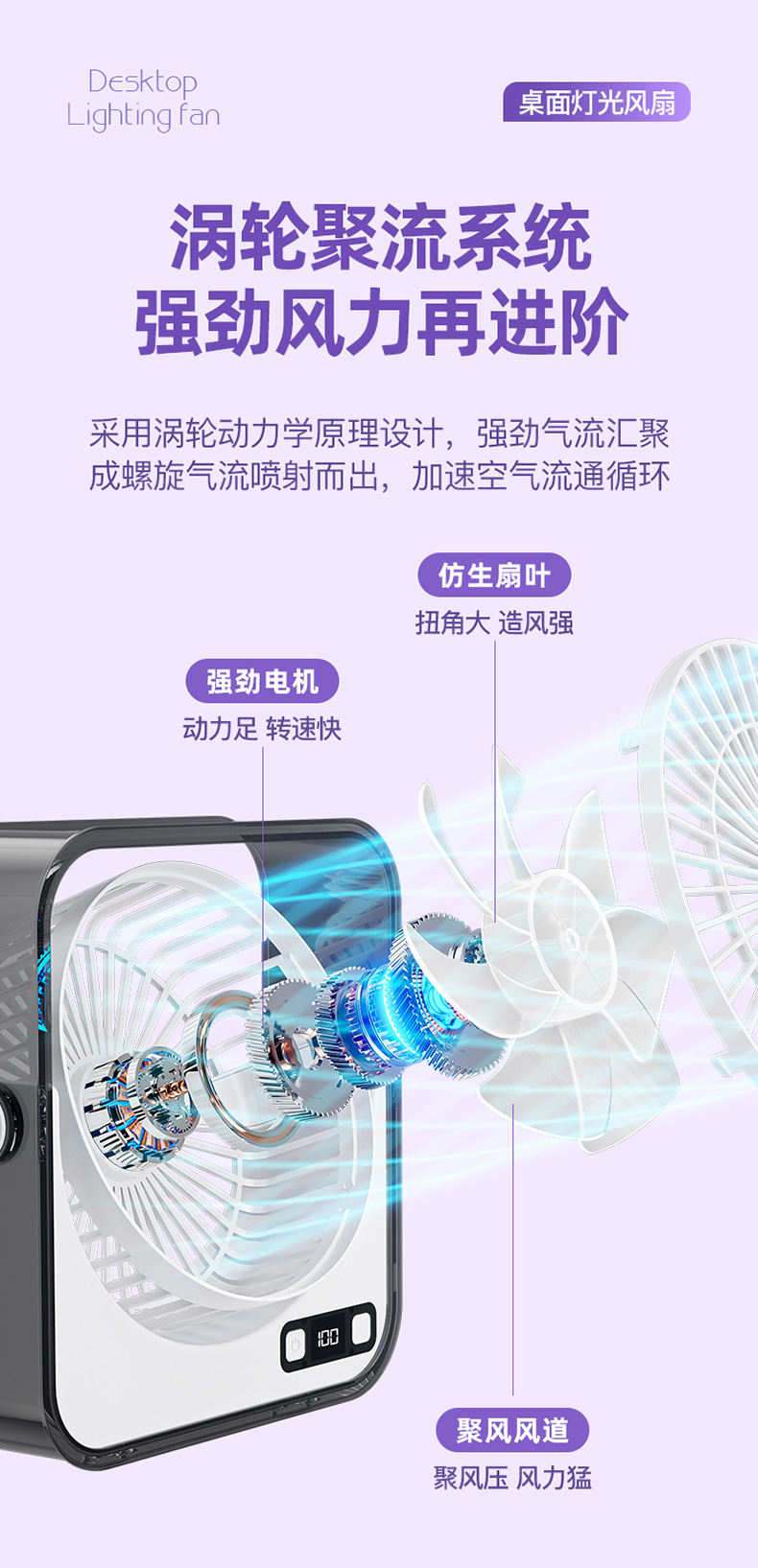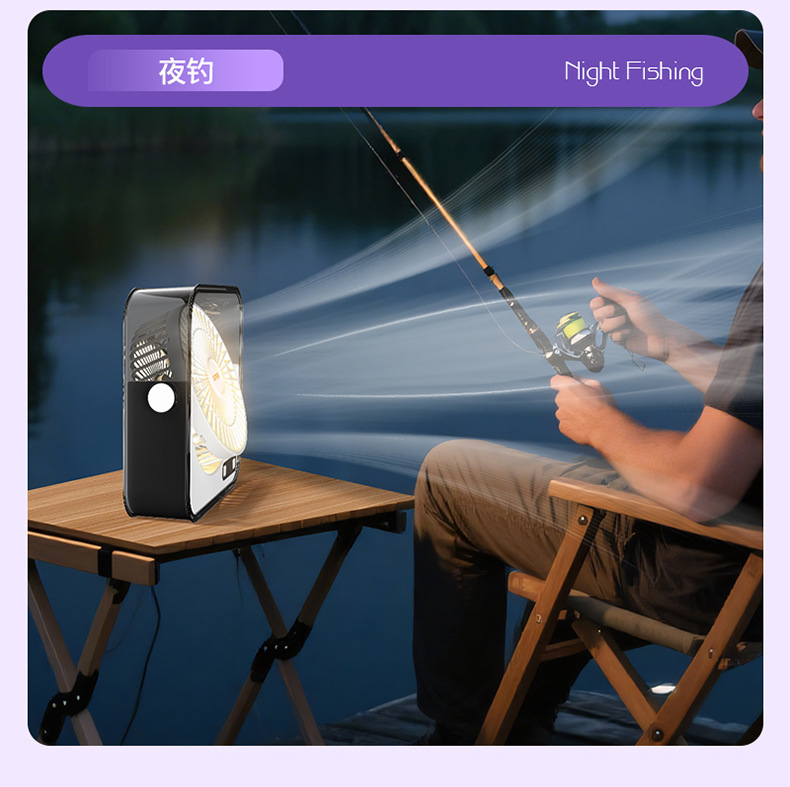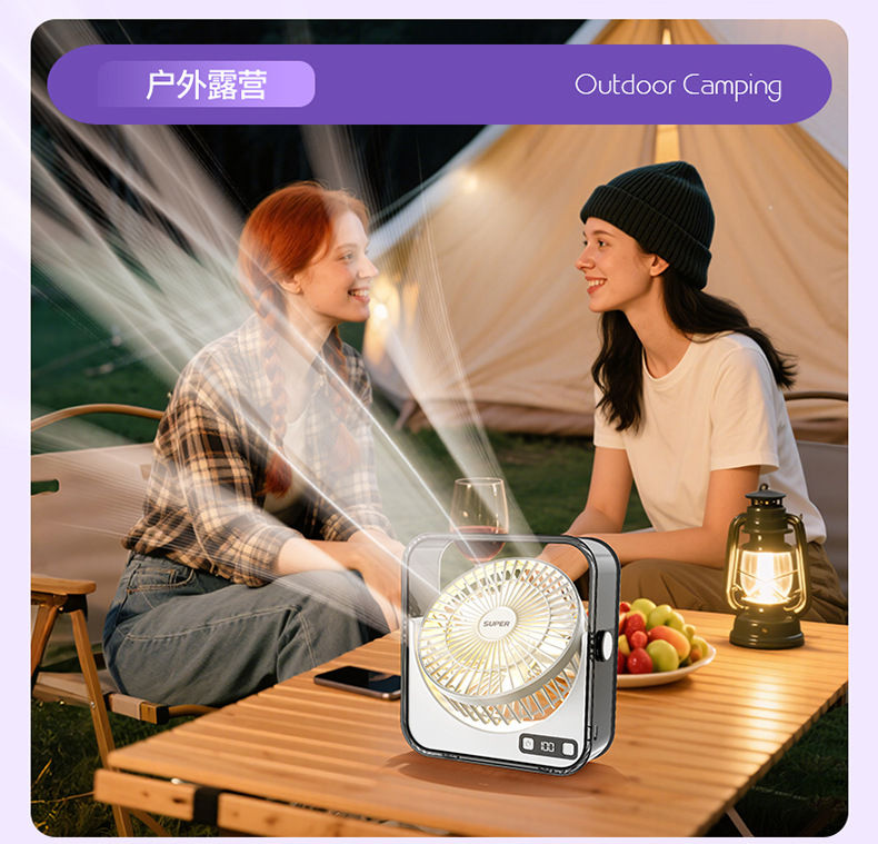 桌面小风扇USB大风力灯光智能数显风扇充电款透明宿舍学生风扇