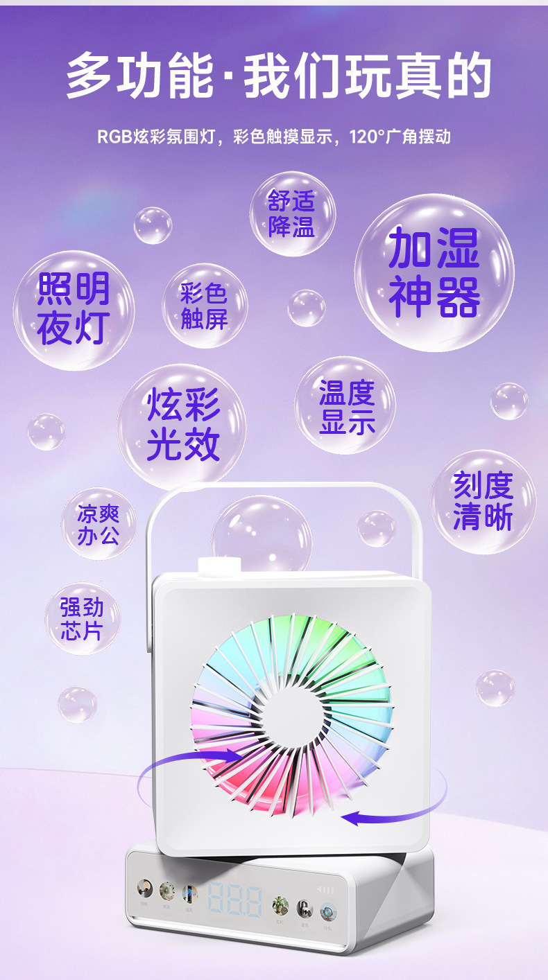 USB插电款桌面风扇加湿喷雾多功能跨境亚马逊希音TikTok台式风扇