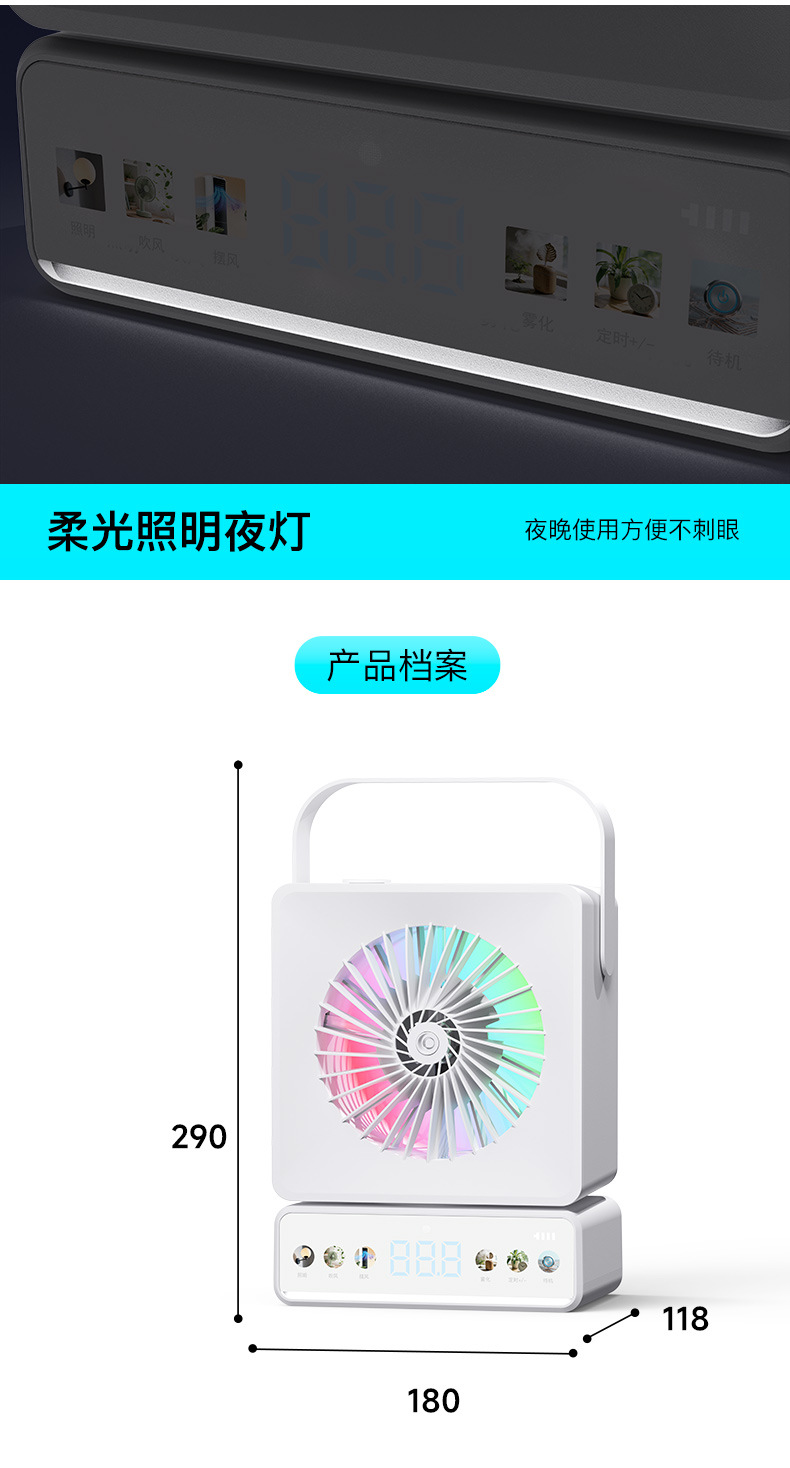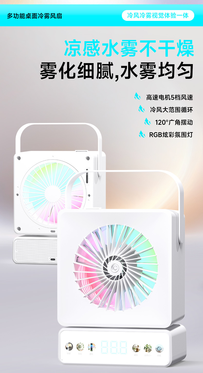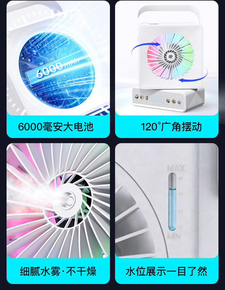 外贸爆款桌面风扇摇头家用办公充电长续航多功能喷雾小风扇