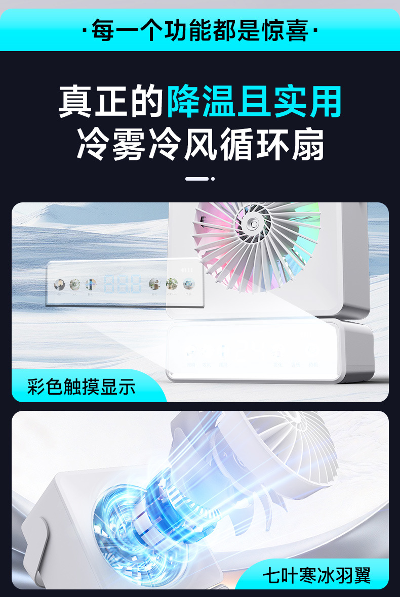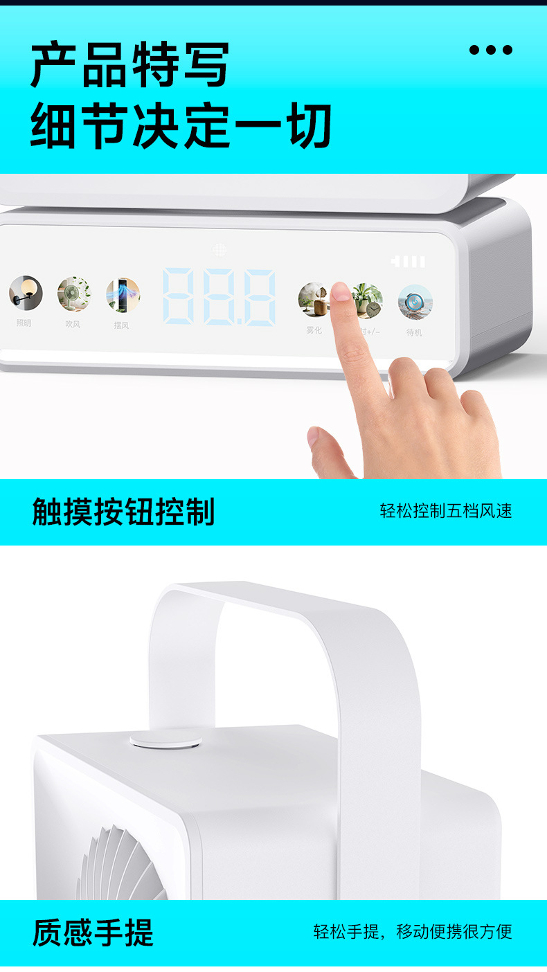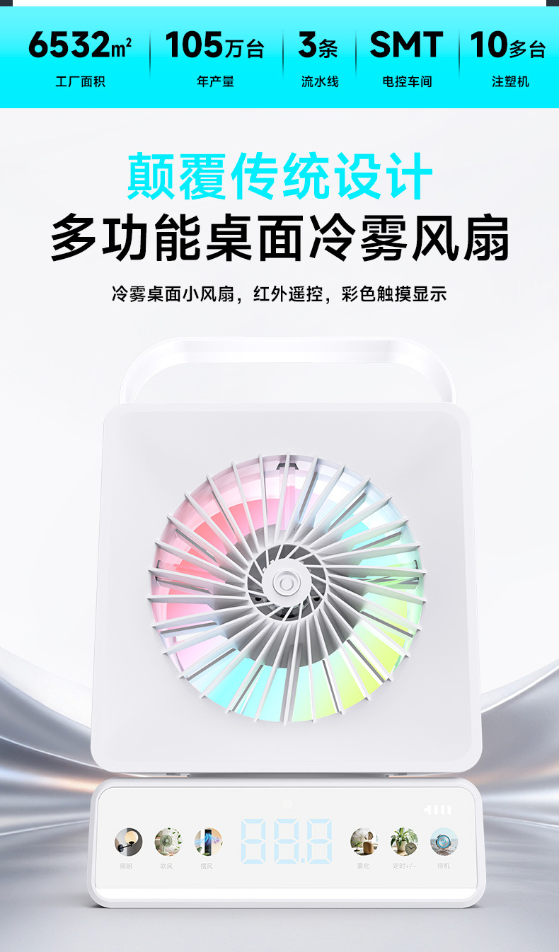 外贸爆款桌面风扇摇头家用办公充电长续航多功能喷雾小风扇