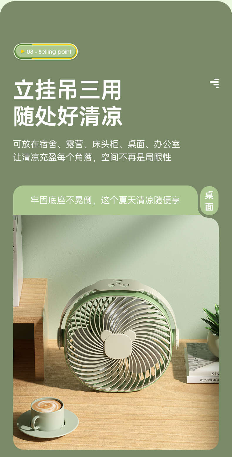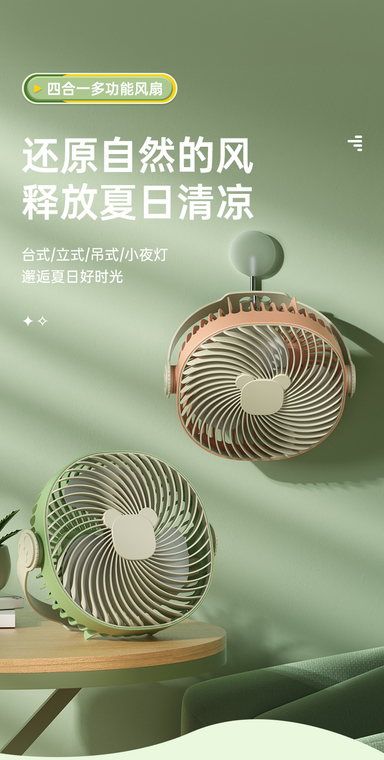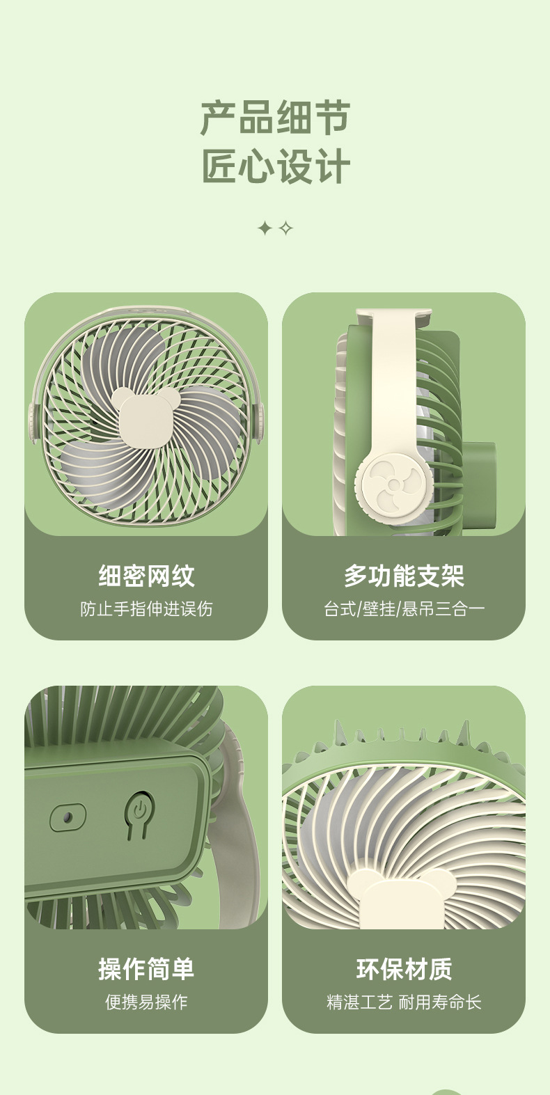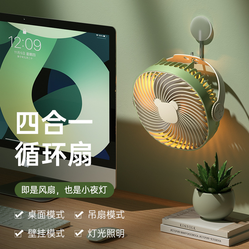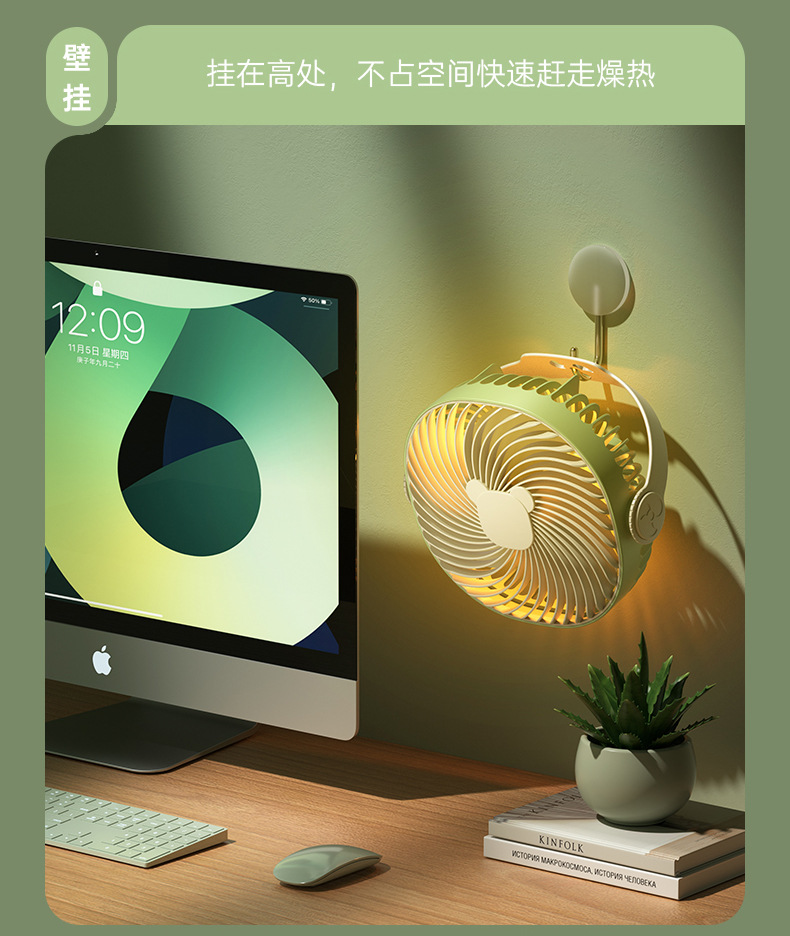 新款桌面小风扇USB多功能灯光风扇挂壁吊扇家用宿舍迷你风扇跨境