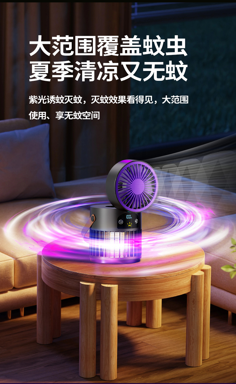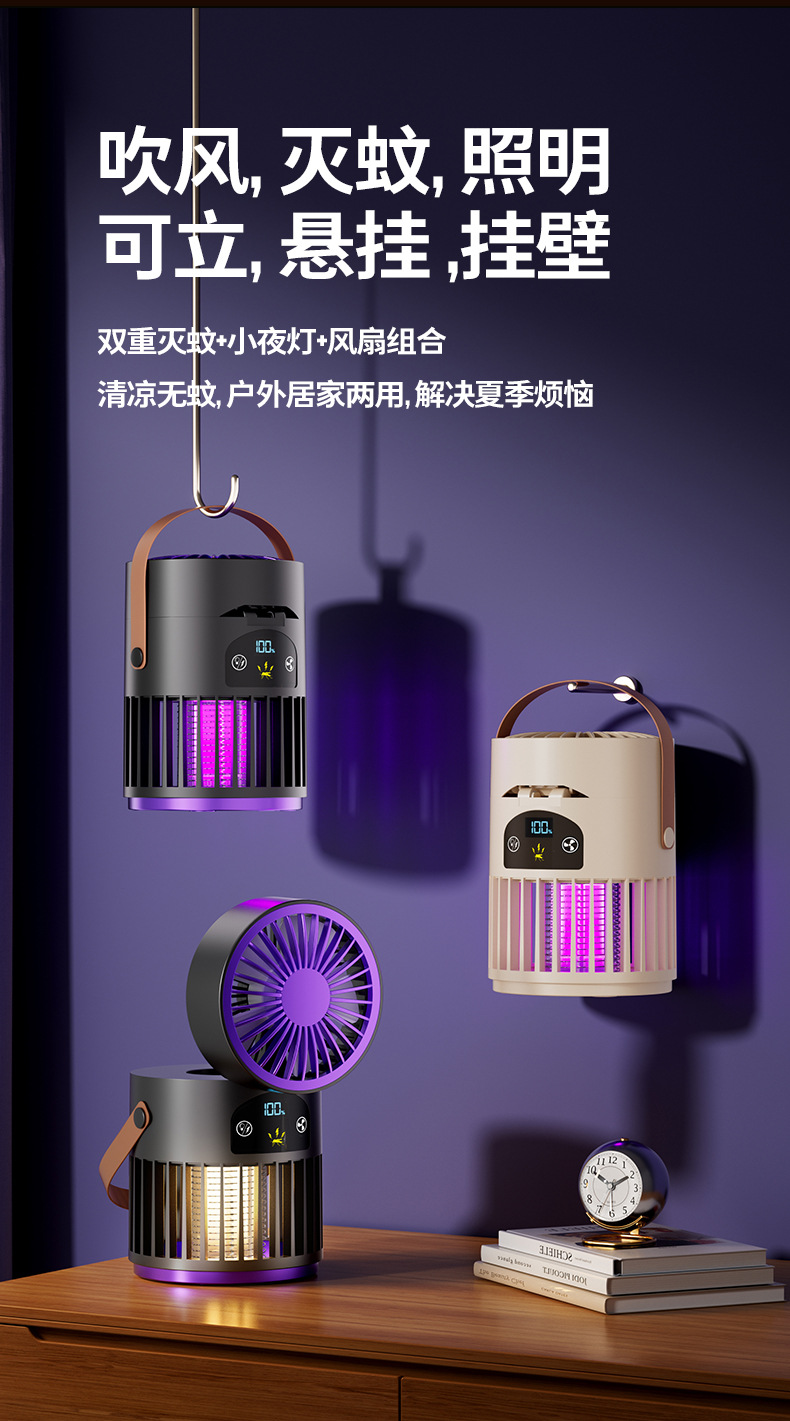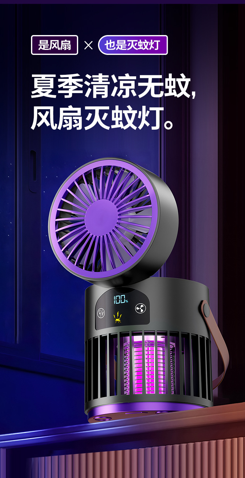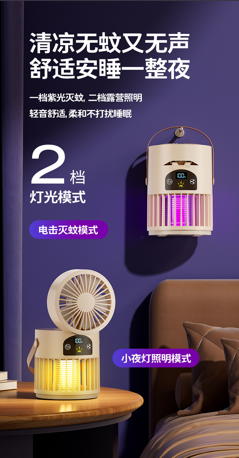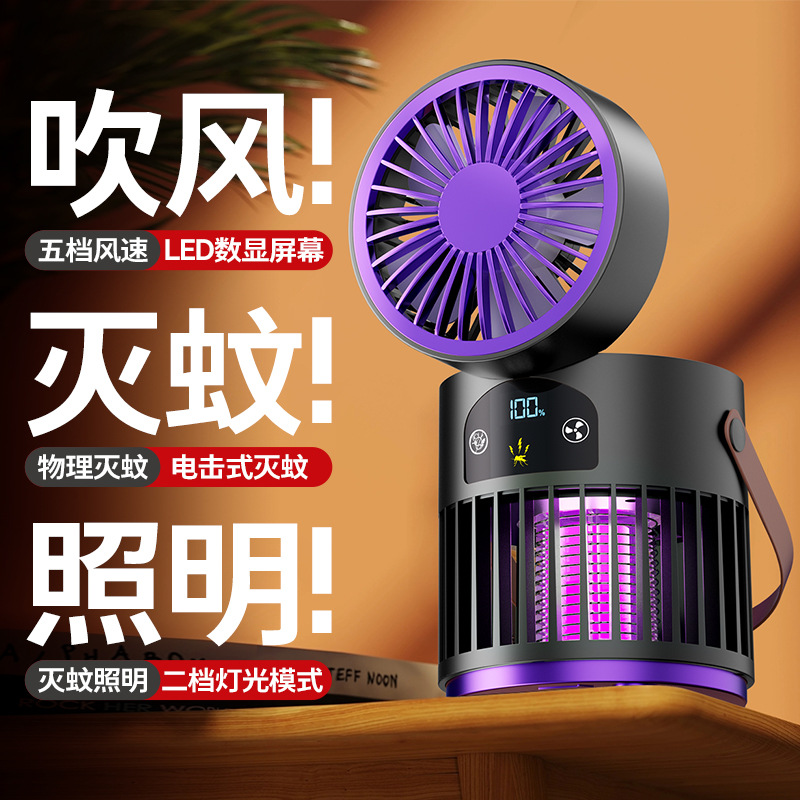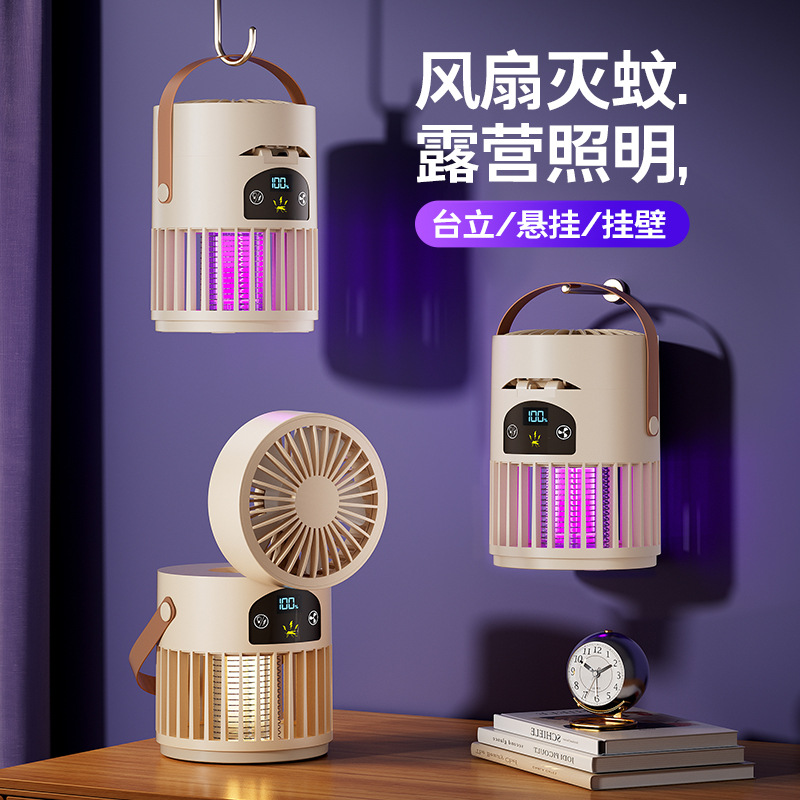 新款风扇灭蚊灯二合一多功能户外露营家用灭蚊器桌面风扇跨境批发