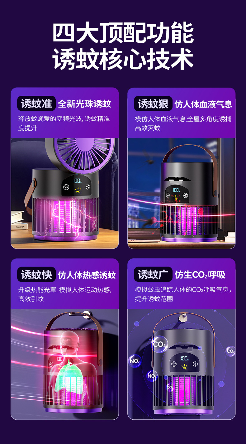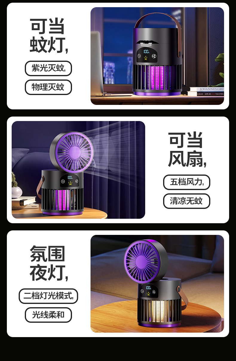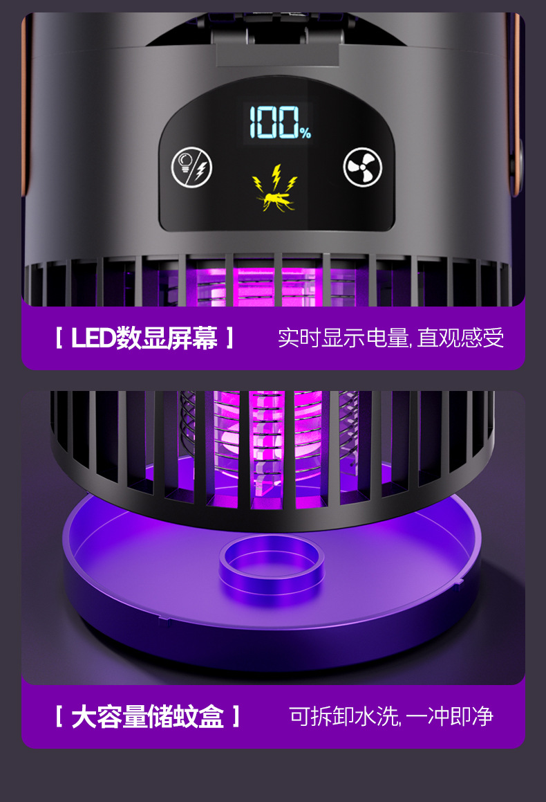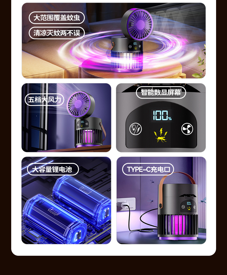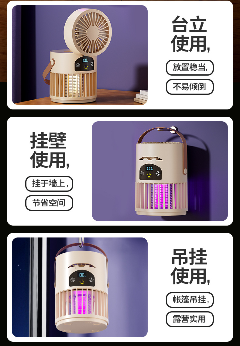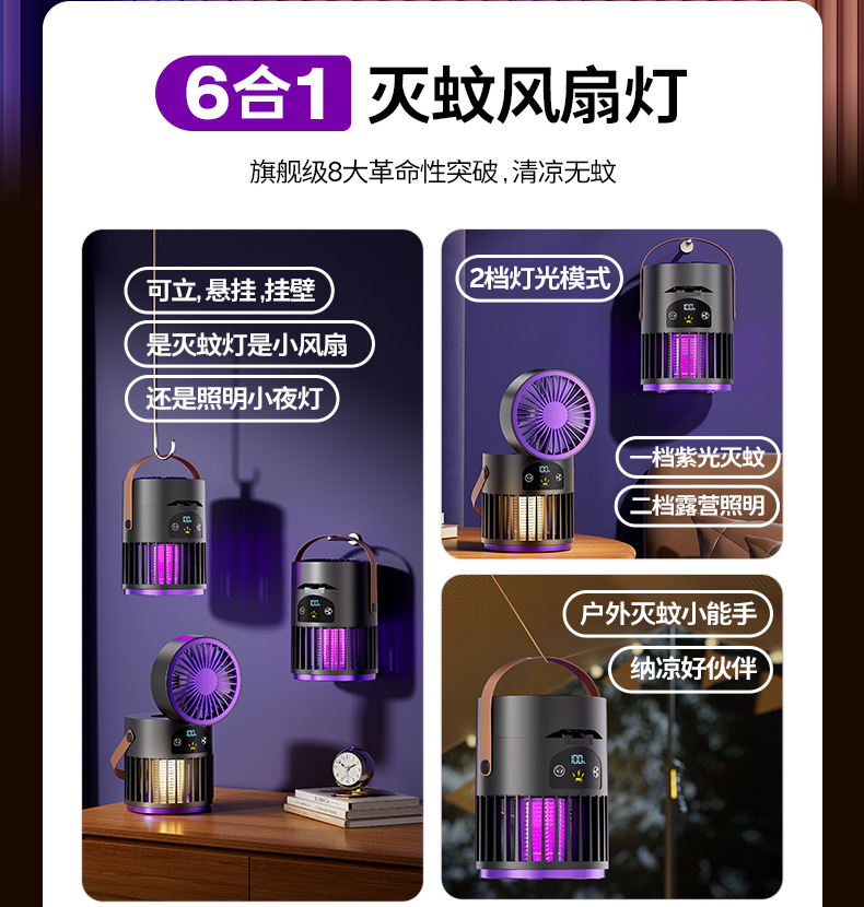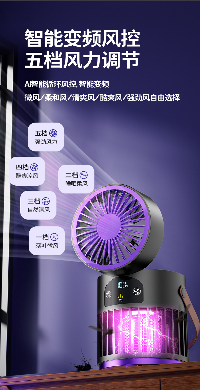 新款风扇灭蚊灯二合一多功能户外露营家用灭蚊器桌面风扇跨境批发